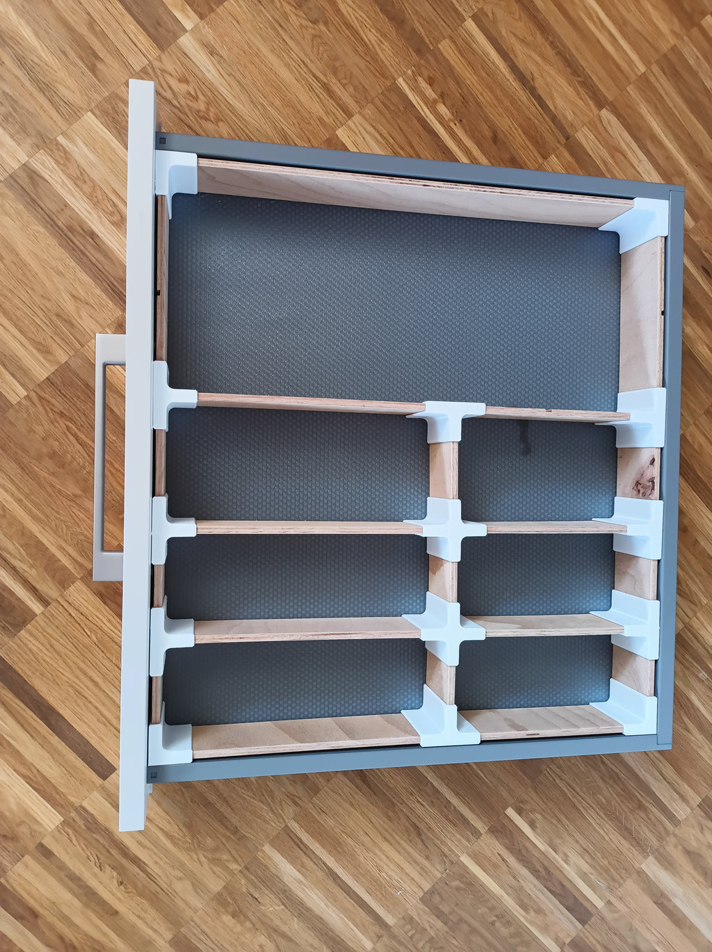 I divisori modulari per cassetti sono una soluzione pratica per organizzare i tuoi cassetti e mantenere ordine tra i tuoi utensili da cucina. Questo sistema di divisori modulari combina l'estetica della stampa 3D con la funzionalità della lavorazione del legno. Puoi facilmente personalizzare i divisori secondo le tue specifiche dimensioni, ottimizzando così lo spazio nei cassetti di qualsiasi dimensione.