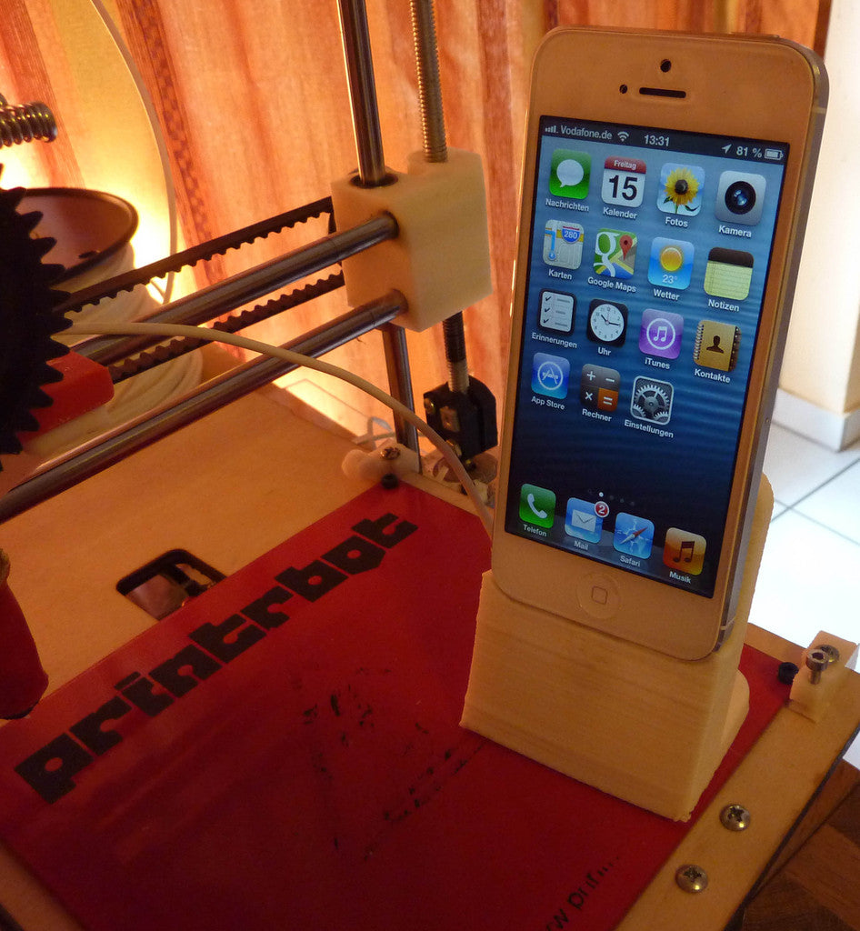 Supporto per iPhone 5 e 5S con aperture per connettore Lightning e altoparlanti. Funziona come un dock, consentendo di sincronizzare e ricaricare l'iPhone quando è montato. Realizzato in materiale robusto e durevole - perfetto per l'ufficio o il comodino.