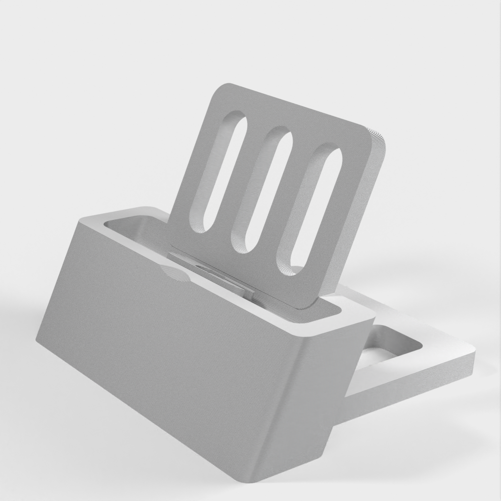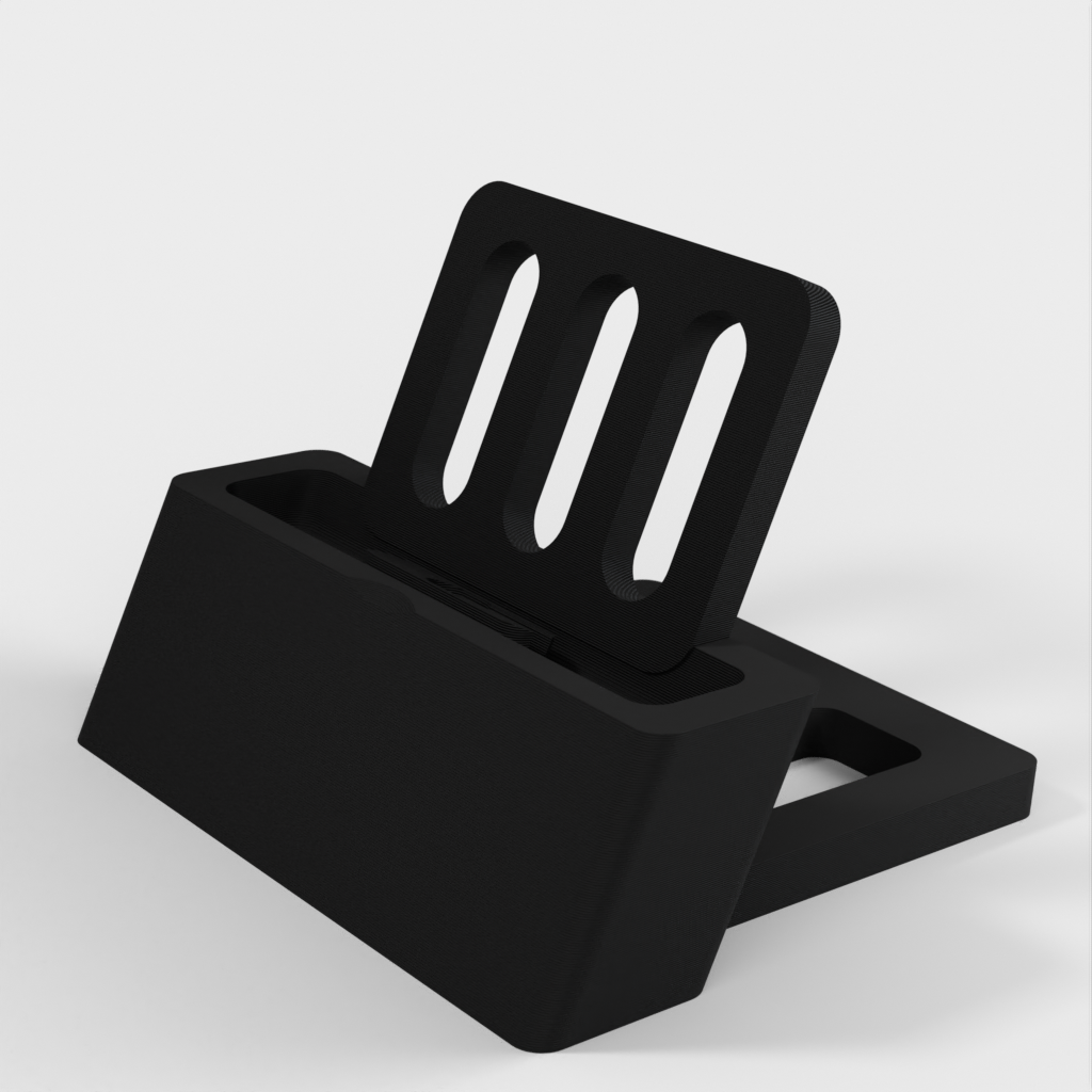 IPhone 5/6 Dock v3 è un supporto per il vostro iPhone anche quando è in una custodia. Il supporto sostiene anche il retro della custodia. Questa versione rimane compatibile con l'iPhone 5 e ora ha aggiunto il supporto per l'iPhone 6.