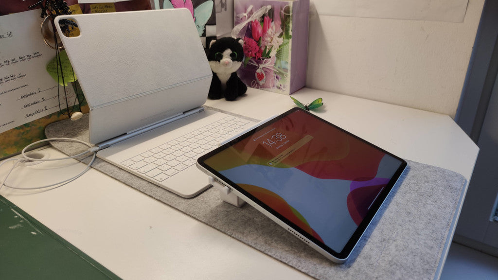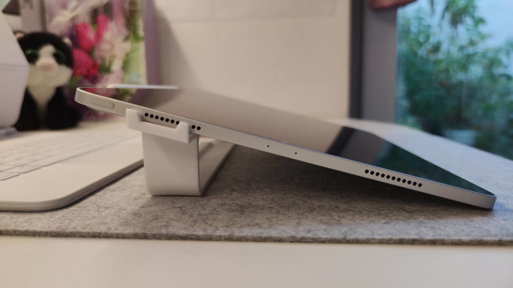 Il supporto è dotato di un ritaglio preciso per gli altoparlanti, garantendo che il suono rimanga chiaro e senza ostacoli durante l'uso. Una staffa di base più rigida e più ampia contribuisce a una maggiore stabilità, in modo che il tablet rimanga sicuro anche durante intense sessioni creative. I bordi smussati offrono un design liscio e confortevole.