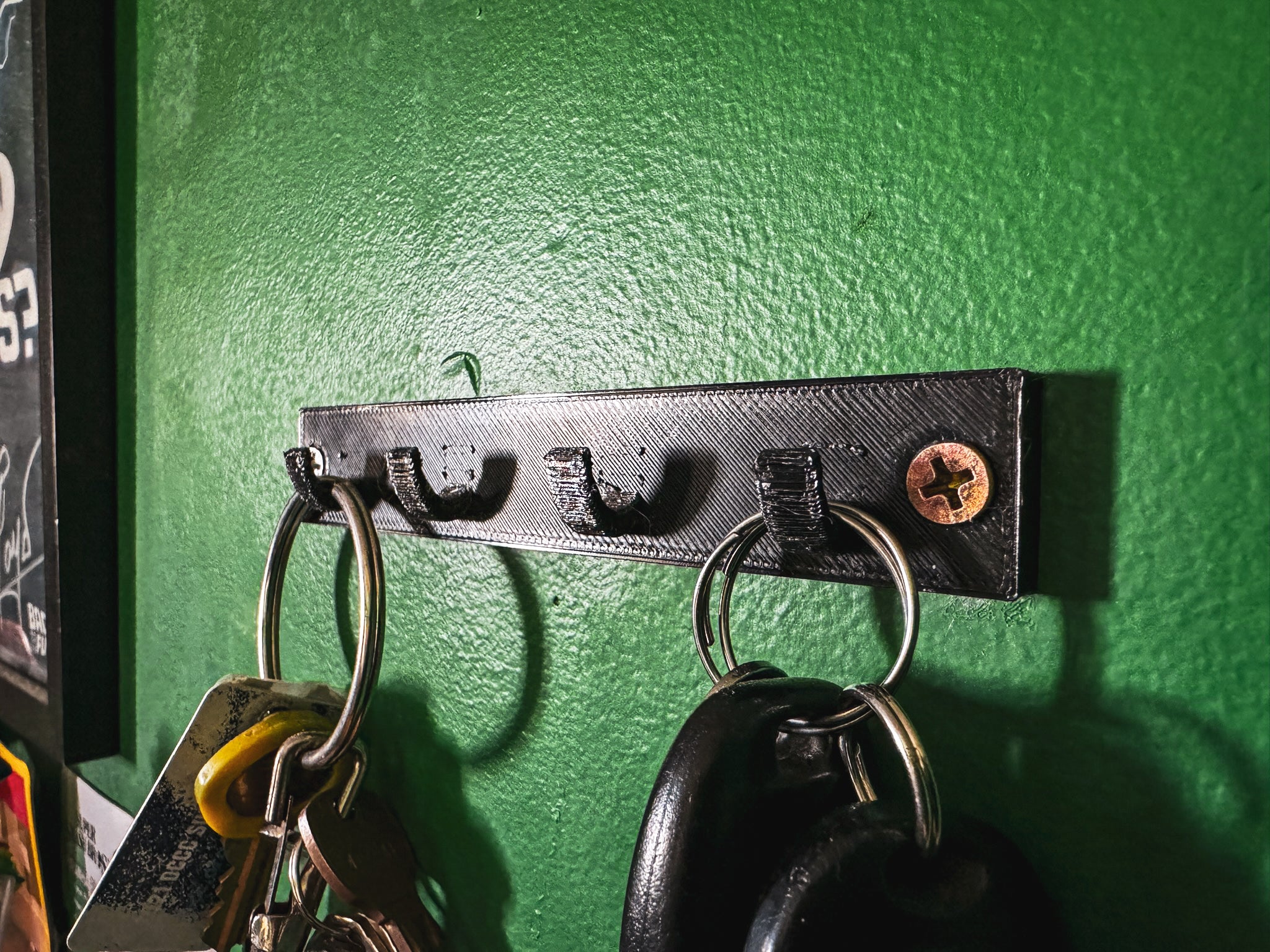 Con quattro robusti ganci, il portachiavi offre ampio spazio per i mazzi di chiavi della famiglia, le chiavi dell'auto o anche piccole borse e accessori. Il design è ottimizzato in modo che i ganci siano distanziati per accogliere diverse dimensioni di portachiavi, rendendolo un'aggiunta versatile a qualsiasi casa o ufficio.