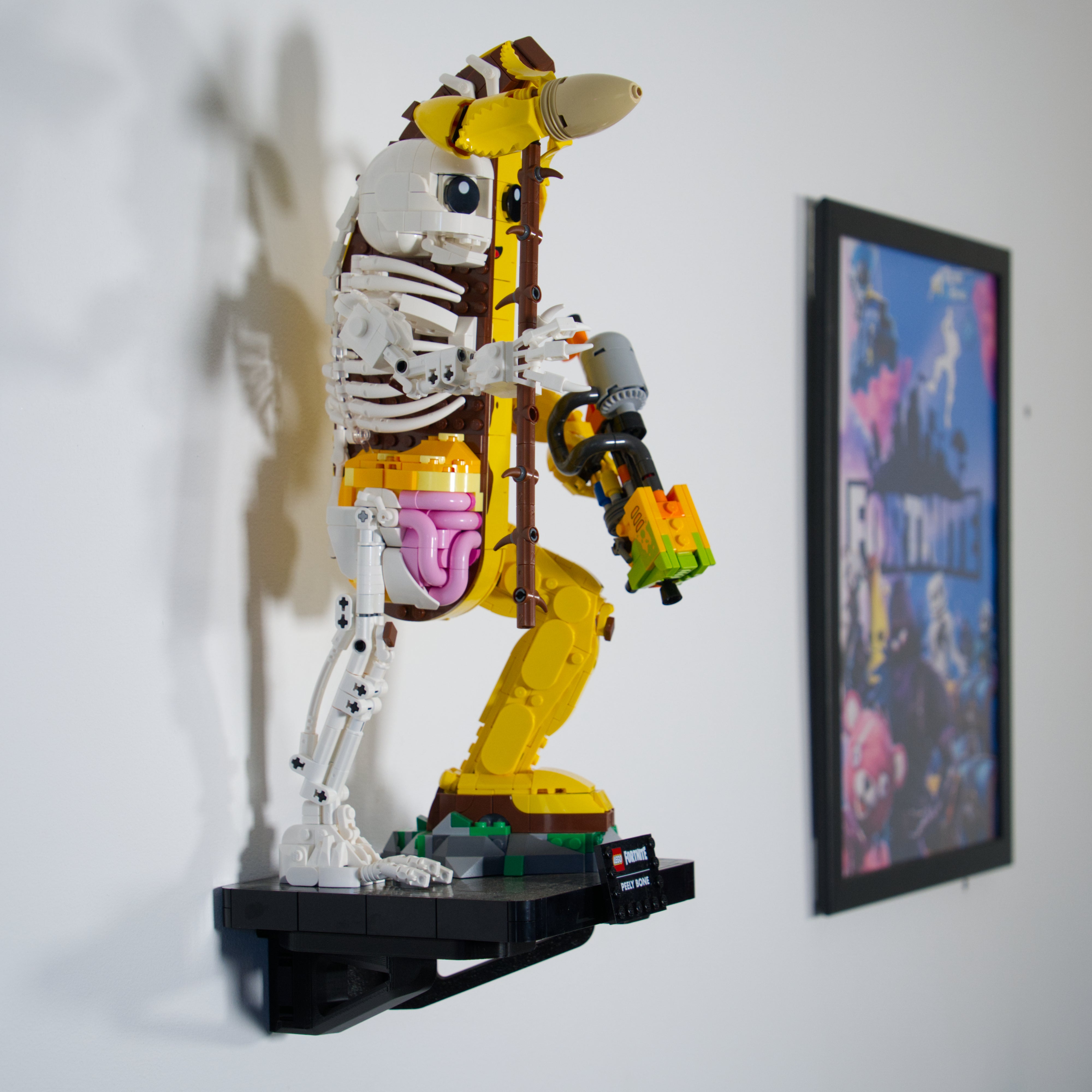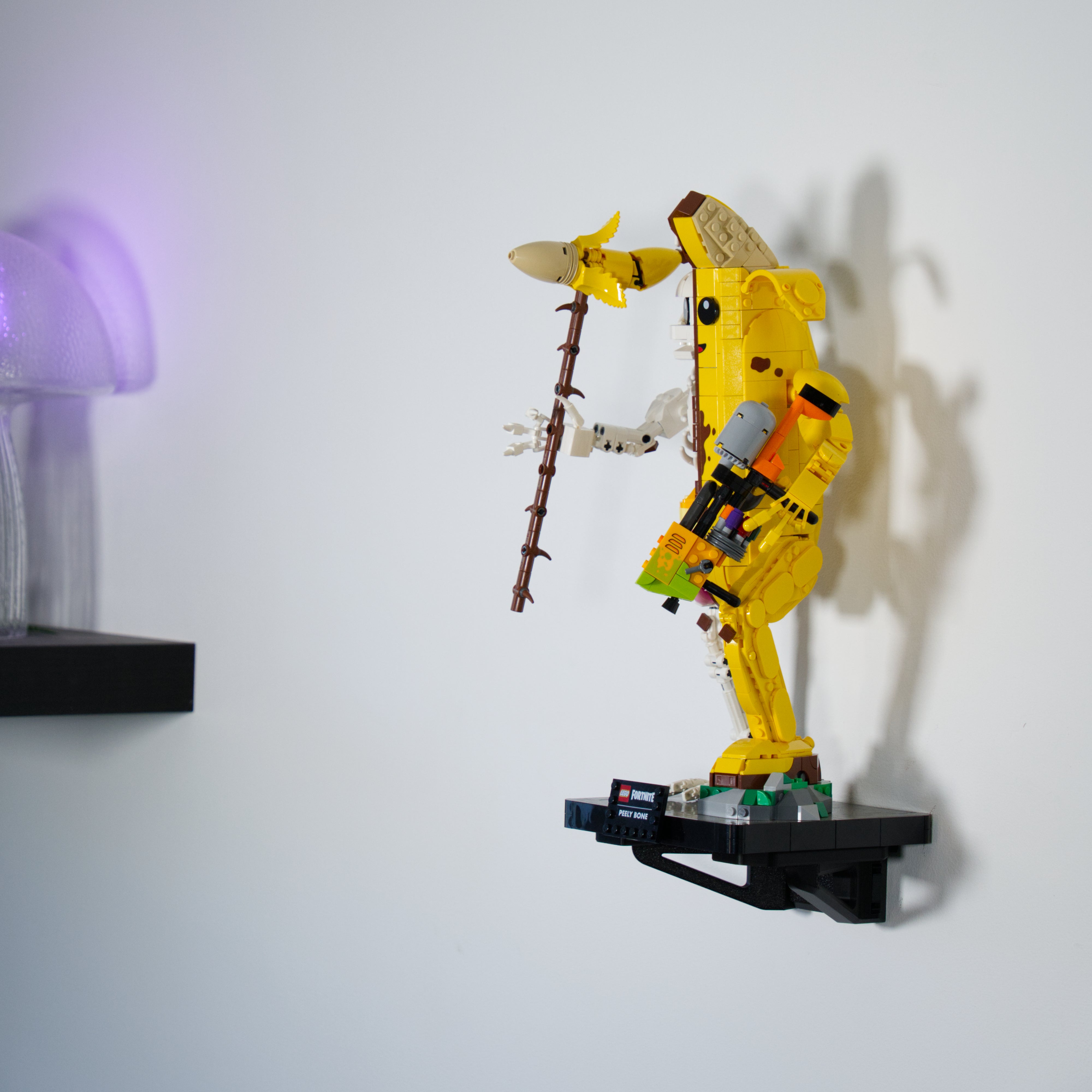 Questa staffa da parete è progettata per presentare il set Peely Bone 77072 in modo stabile ed elegante. La soluzione facilita l'esposizione del modello sulla parete, consentendo al contempo una rapida rimozione quando necessario. Il montaggio richiede solo due viti per un fissaggio sicuro.