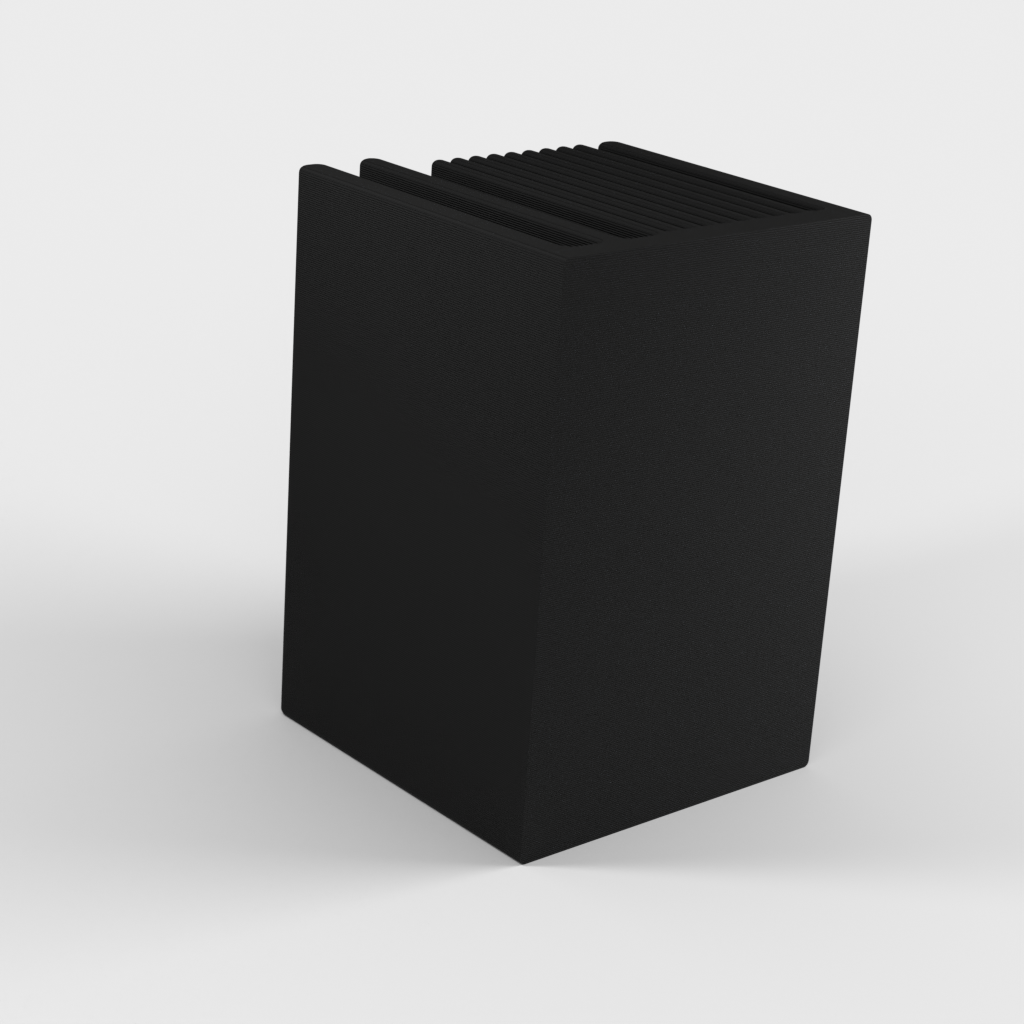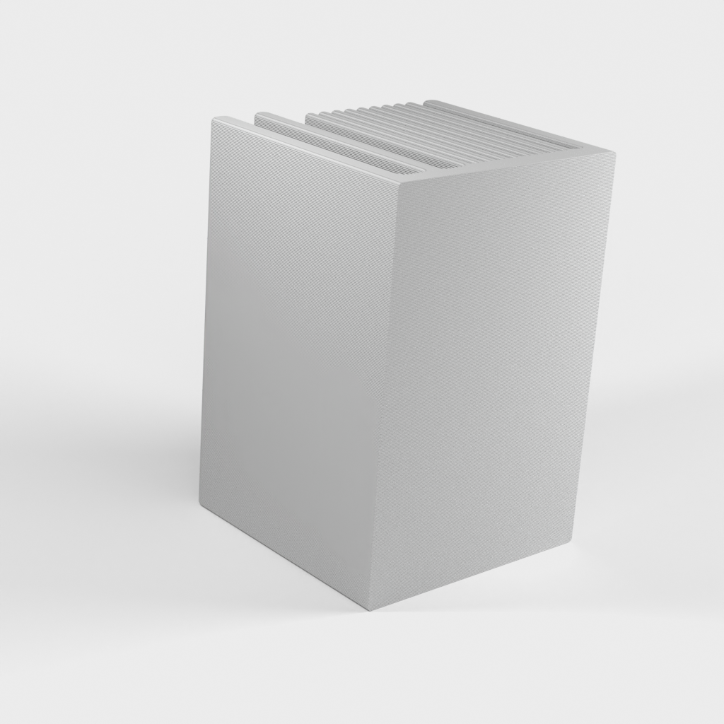 Questo organizer per taglieri offre una soluzione pratica per mantenere la tua cucina ordinata e organizzata. È progettato specificamente per i taglieri flessibili IKEA Finfordela e consente lo stoccaggio verticale, liberando efficacemente spazio sul piano di lavoro della cucina. Con scanalature progettate con precisione, c'è spazio per otto taglieri spessi 2 mm, due taglieri spessi 12 mm e un singolo tagliere spesso 5 mm. Questo design assicura che i tuoi taglieri siano facili da raggiungere quando ne hai bisogno, pur essendo riposti ordinatamente.