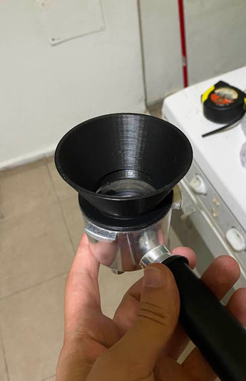 Imbuto dosatore progettato per il portafiltro DeLonghi Dedica da 51 mm. Questo imbuto aiuta a dosare il caffè nel portafiltro senza rovesciare il caffè sul bancone della cucina. L'imbuto si adatta a tutti i portafiltro da 51 mm e c'è una buona possibilità che si adatti anche a portafiltro più grandi, ma questo non è ancora stato testato.