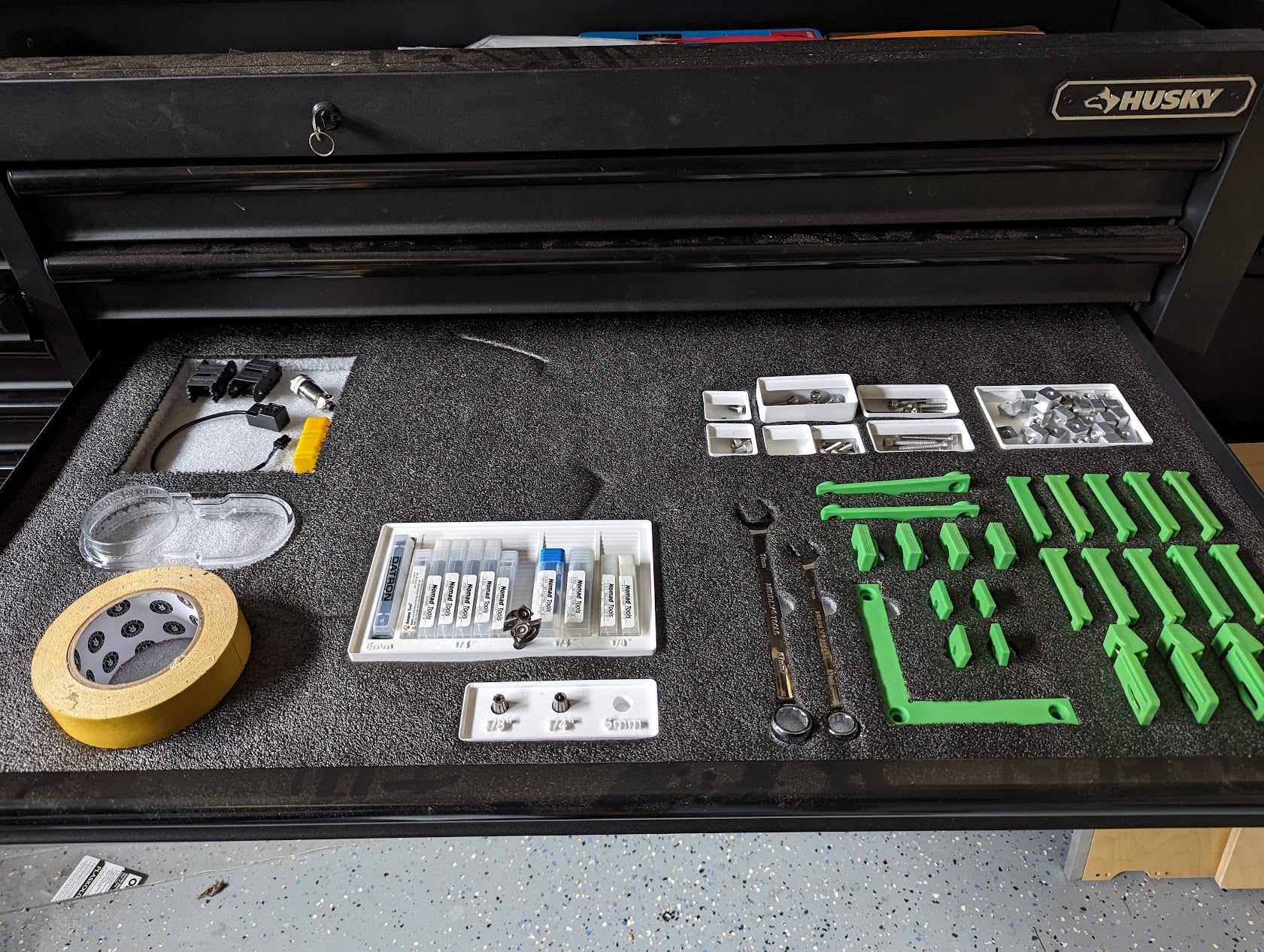Originariamente sviluppato per adattarsi a una cassetta degli attrezzi Husky da 60" e ottimizzato per l'uso con Carbide 3D Shapeoko 5 Pro, questo file offre flessibilità, consentendoti di personalizzare le dimensioni e il layout in base alle tue esigenze specifiche e alle soluzioni di archiviazione esistenti. L'inserto in schiuma finito aiuta a proteggere i tuoi utensili dai danni, riduce il disordine e rende facile e veloce trovare l'attrezzatura giusta quando lavori. Contribuisce a uno spazio di lavoro più organizzato ed efficiente.