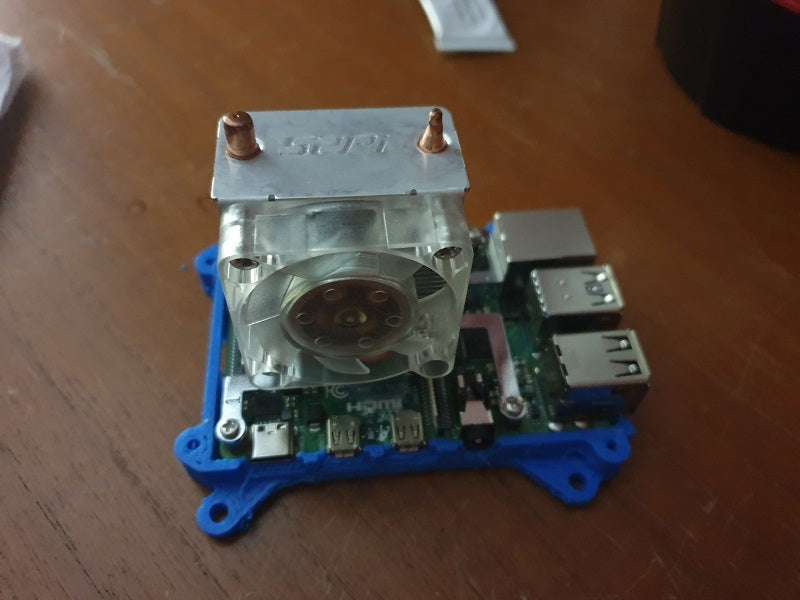 Questa è una versione modificata del case di Patrick Lammer per il Raspberry Pi 4, personalizzata per ospitare un raffreddatore Ice Tower. I distanziatori del dissipatore sono invertiti e avvitati al case, i dadi non sono più utilizzati. Creato modificando la parte superiore del case, mentre la parte inferiore è il progetto originale di Patrick.