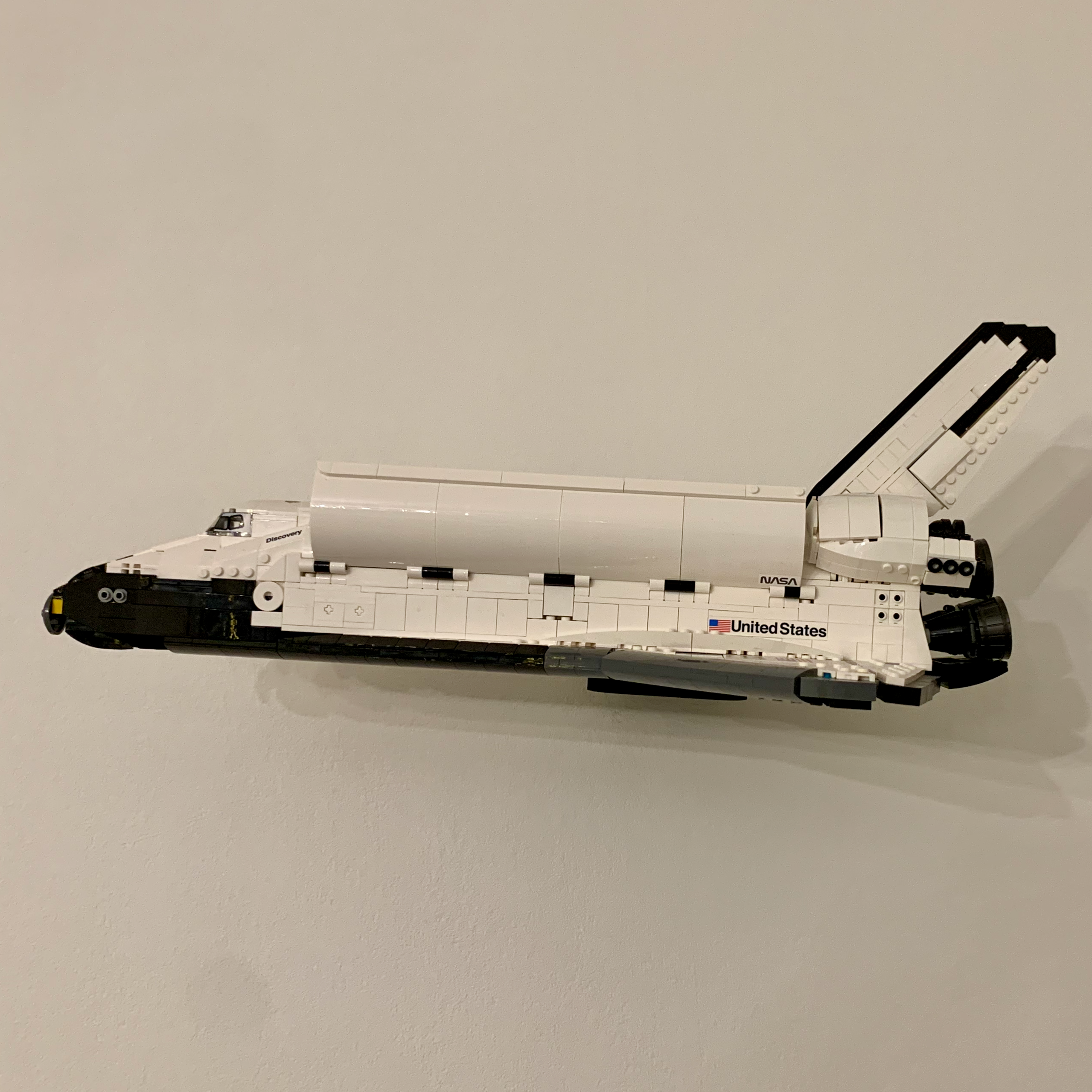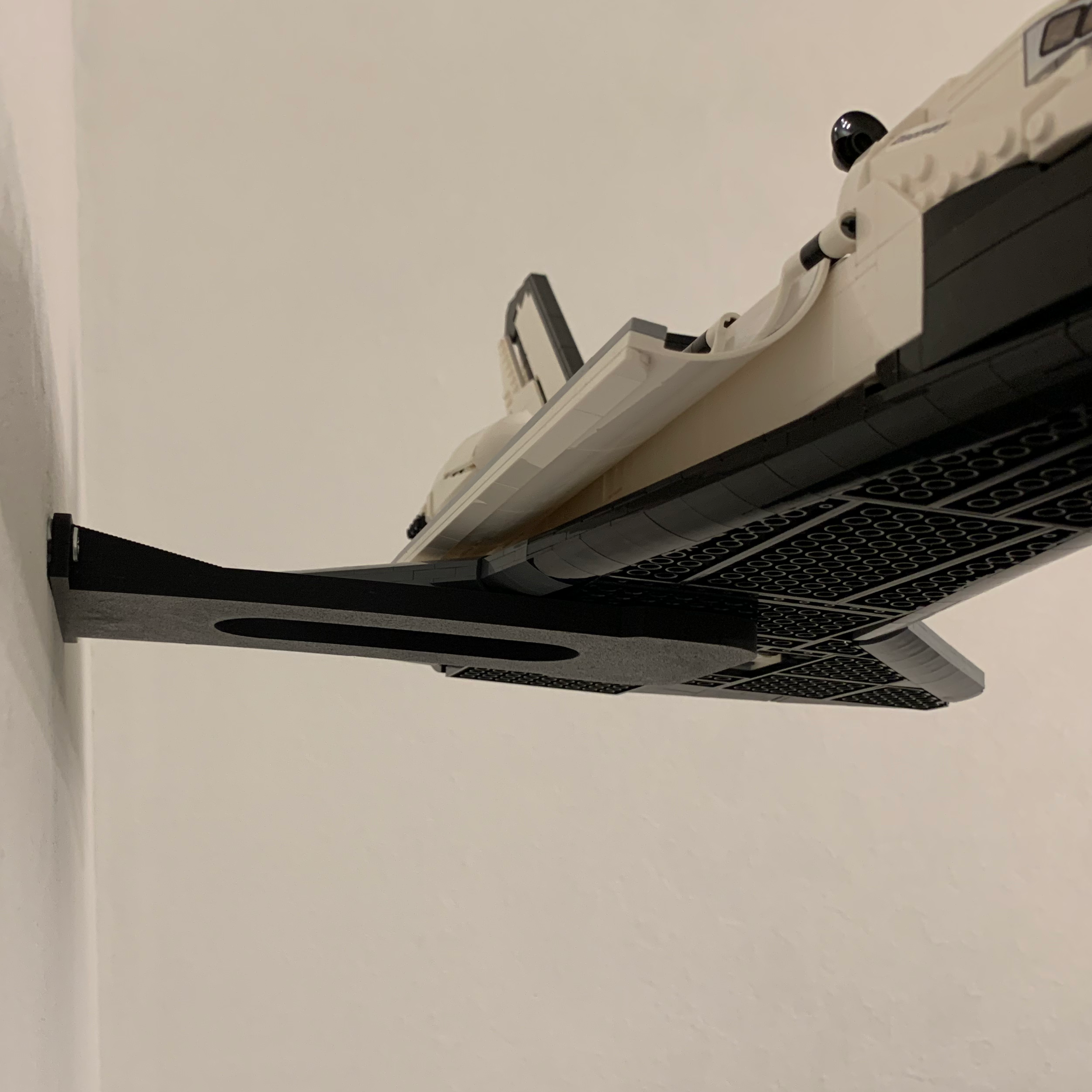 Supporto a parete per Space Shuttle Lego Discovery. Perfetto per esporre la tua navetta spaziale LEGO sul muro! Può essere fissato al muro con viti di 5 mm di diametro. L'angolazione desiderata può essere impostata secondo le preferenze.