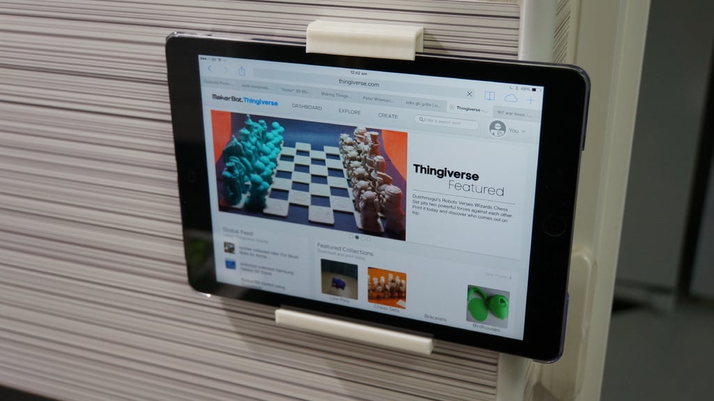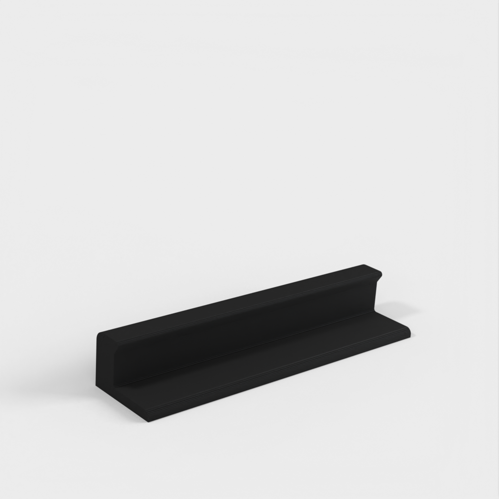 Mensola minimalista a parete e morsetto superiore per iPad/tablet. Questa mensola è compatibile con iPad 3, 4 e Air, con o senza cover posteriore. È progettata per una facile installazione a parete utilizzando il nastro di montaggio 3M. Perfetta per tenere il tuo iPad o tablet organizzato e accessibile in modo elegante.