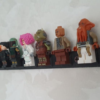 Un piccolo supporto da parete che si adatta a sei Minifigure LEGO. Ha due fori per viti da 3,5 mm. Le minifigure con mantelli, jetpack o altri accessori posteriori possono richiedere una piastra 1x2 aggiuntiva.