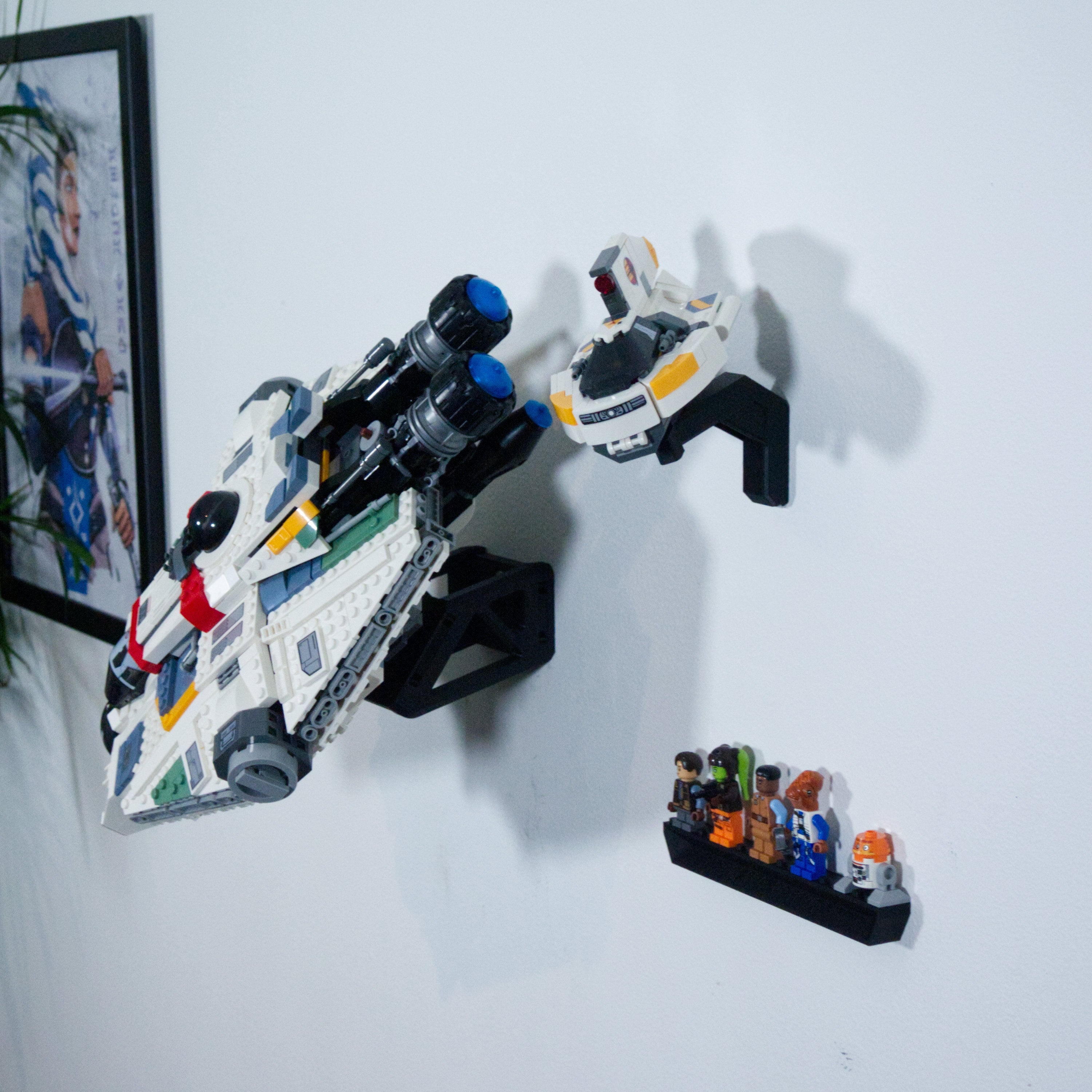 - Supporto a parete progettato specificamente per il set LEGO Star Wars Ghost & Phantom II 75357.