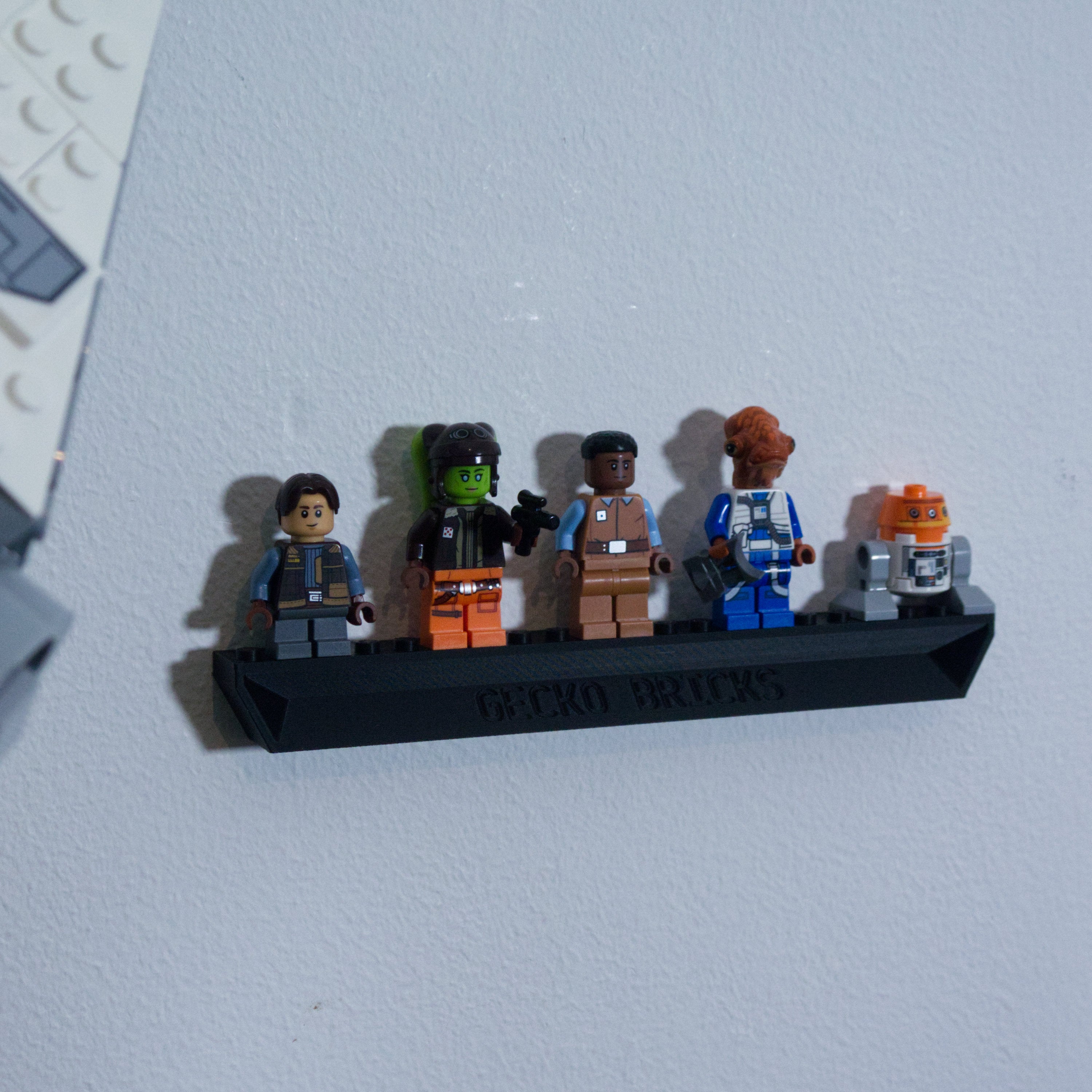 - Viene fornito con un supporto da parete dedicato per l'esposizione delle minifigure.