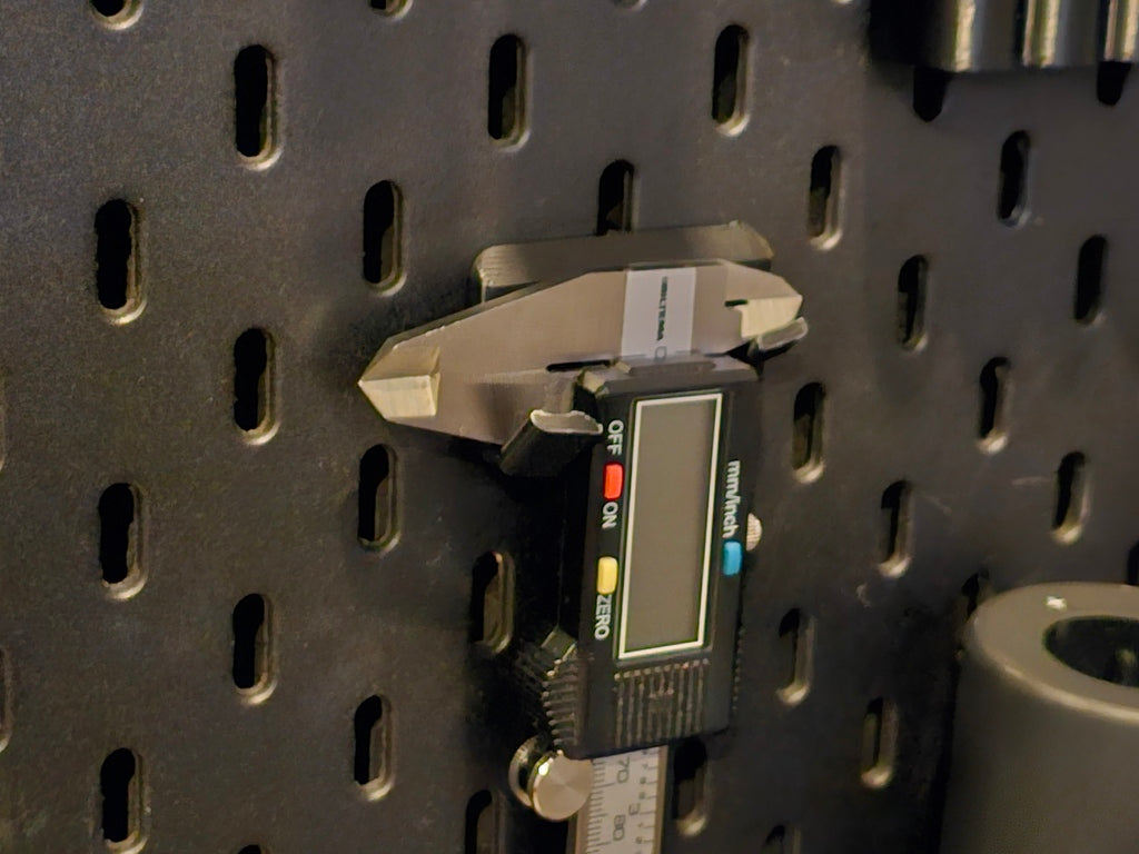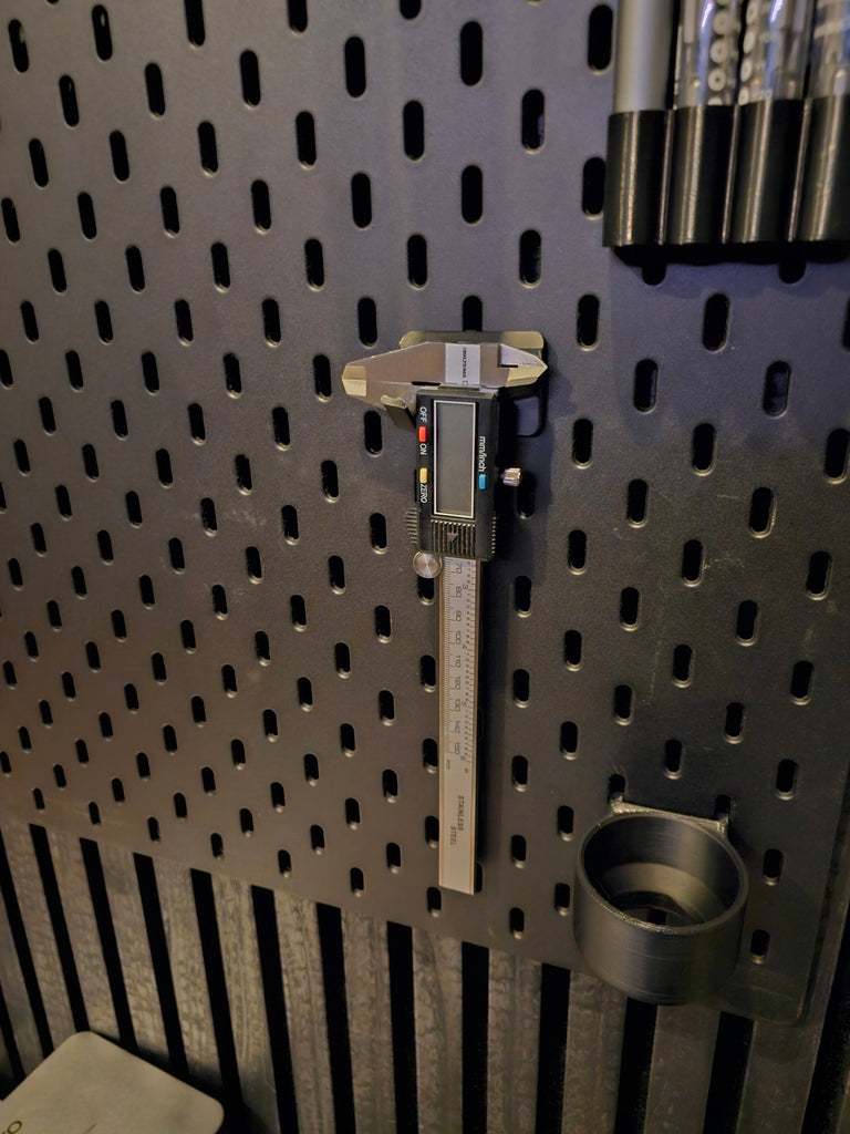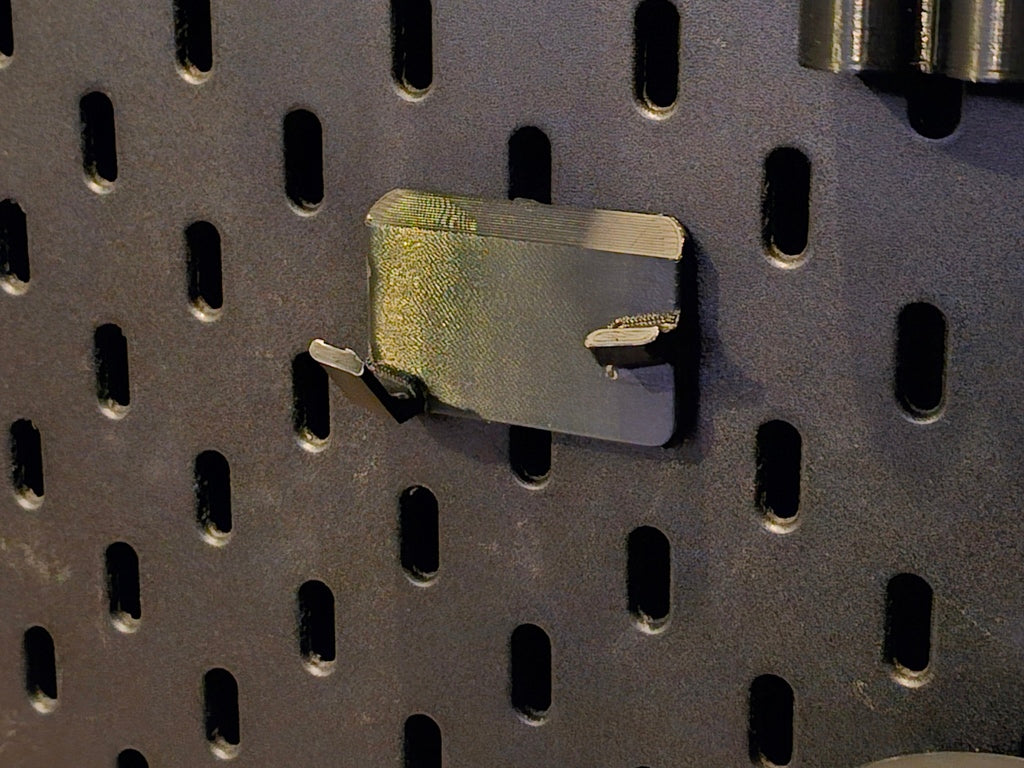 Questo è un supporto per calibro per una piastra di montaggio IKEA SKÅDIS. Il corpo superiore è leggermente più piccolo e presenta bordi più arrotondati rispetto al modello originale. Anche la struttura del gancio è stata leggermente modificata per una migliore fruibilità.