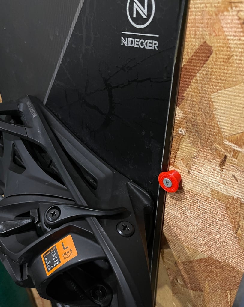 Un sistema semplice ma efficace per tenere il tuo snowboard lontano dal pavimento. Il sistema di montaggio sfrutta la forma concava dello snowboard.