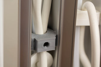 Oltre a organizzare i cavi, questo fissacavo include anche un foro e una sede per dado, che consentono di montare una piastra posteriore. Ciò consente di nascondere completamente eventuali cavi indesiderati, migliorando così la finitura estetica della configurazione dell'illuminazione.