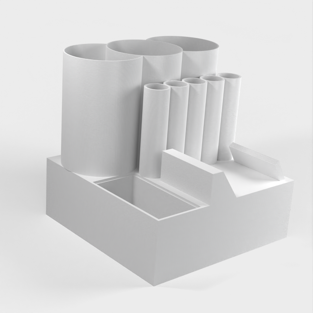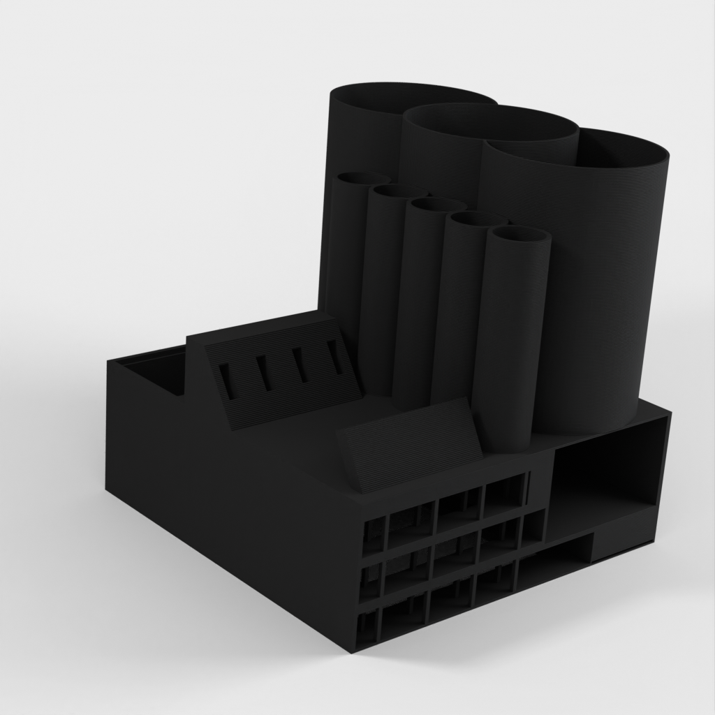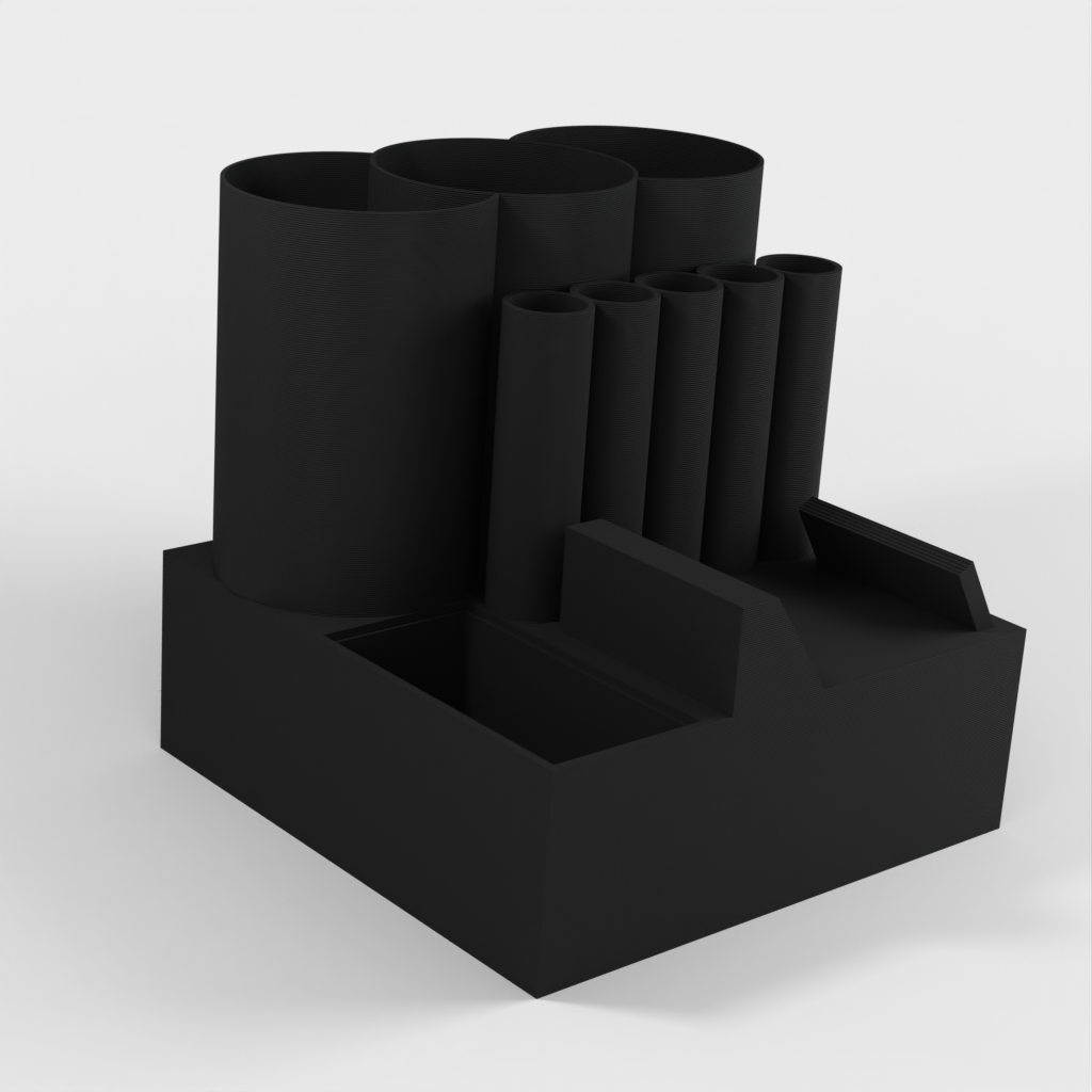 La targhetta può essere integrata e ci sono diversi vani portaoggetti, grandi e piccoli, per penne, matite, pennarelli o altri articoli da scrivania. Con il nostro organizer da scrivania, ti assicuriamo un posto di lavoro ordinato e ben organizzato.