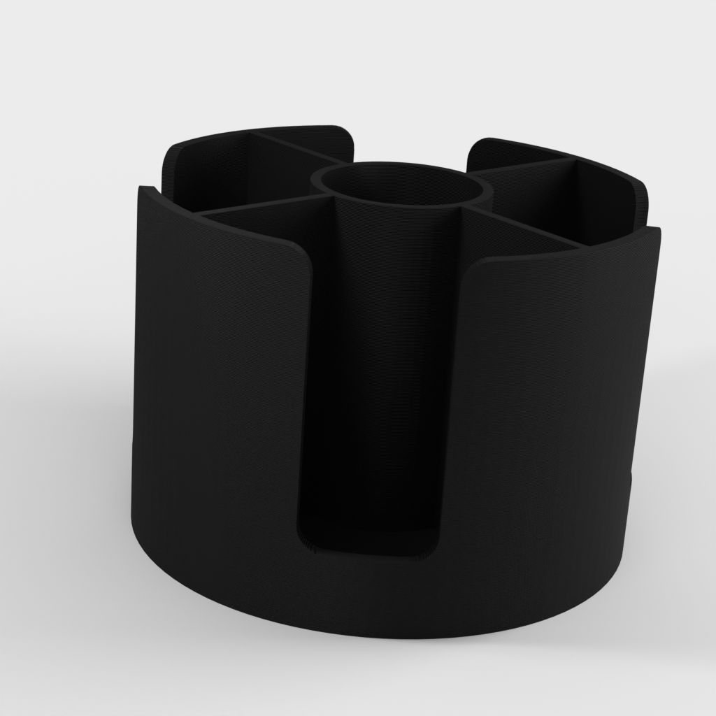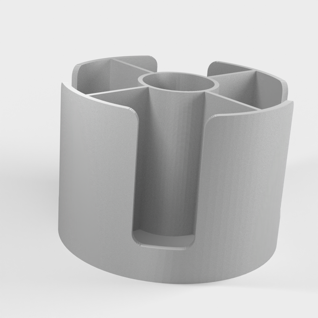 Questo pratico organizer è progettato per raccogliere i telecomandi e gli strumenti di scrittura in un unico luogo centrale. Aiuta a mantenere in ordine la scrivania o il soggiorno fornendo uno spazio dedicato a questi oggetti di uso frequente. Con il suo design semplice e funzionale, contribuisce a ridurre il disordine e facilita la ricerca di ciò che stai cercando. L'organizer è un'aggiunta funzionale all'arredamento organizzato e si integra naturalmente nella maggior parte degli spazi.