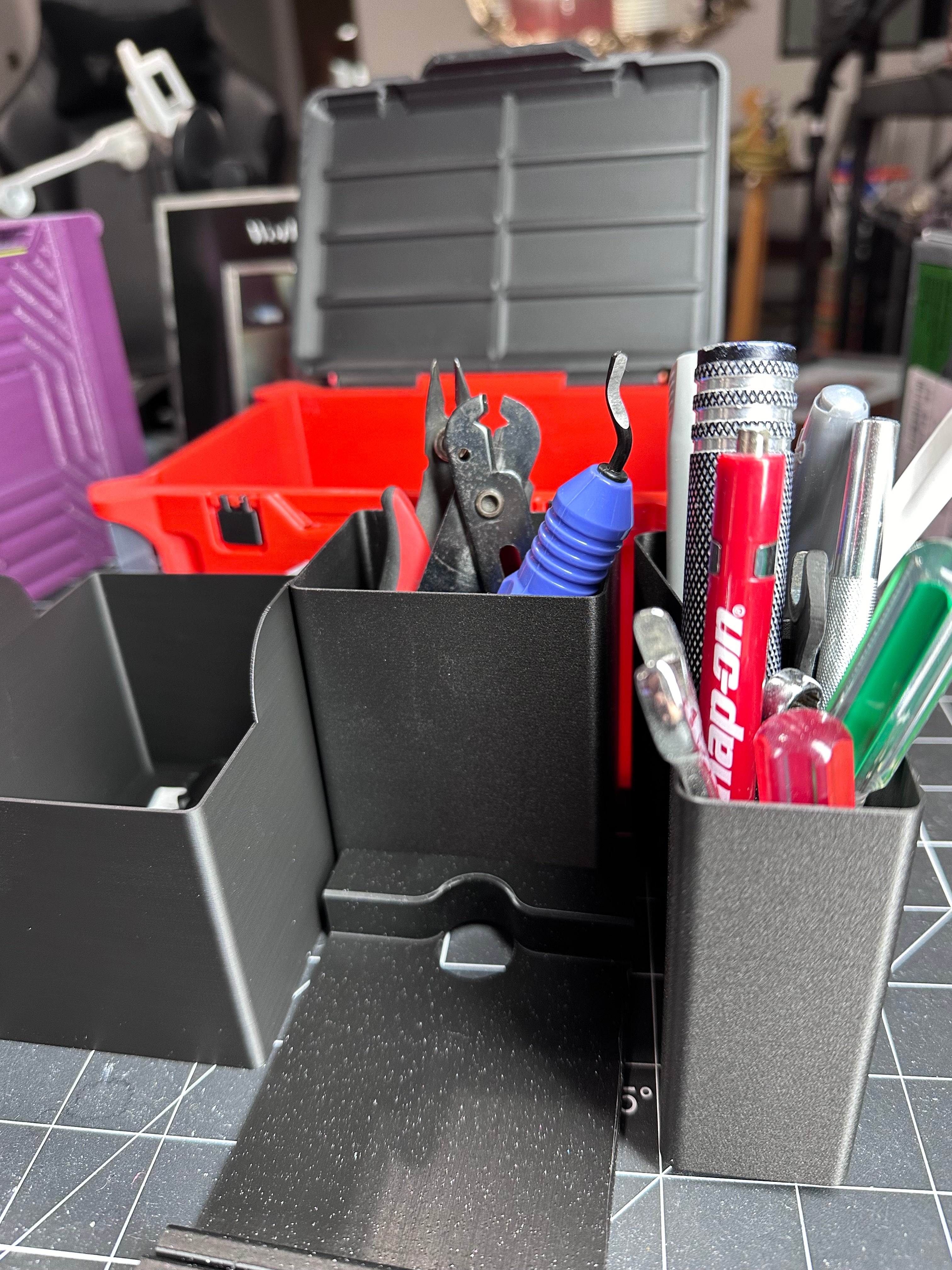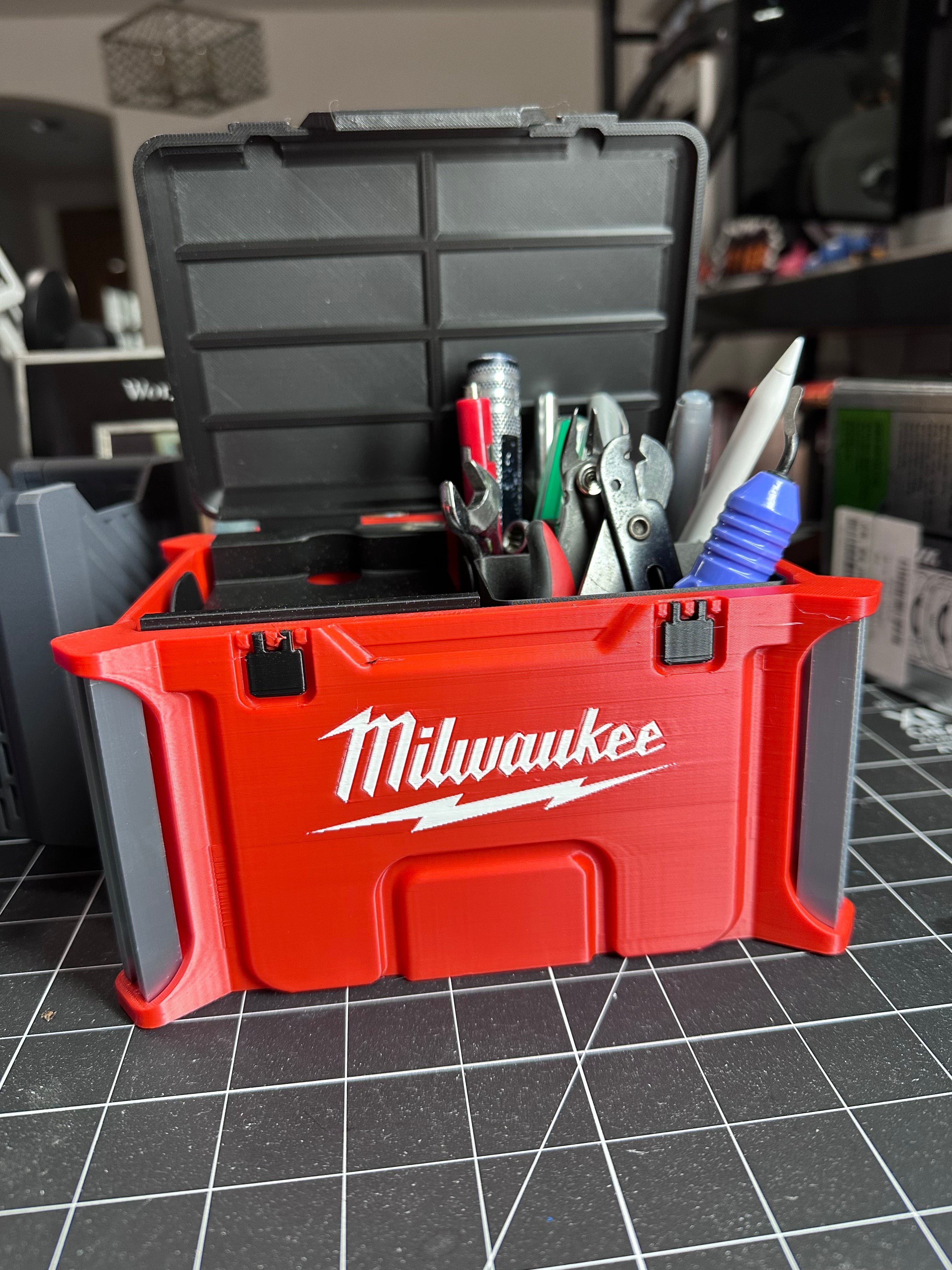 Mantieni la tua area di lavoro ordinata e organizzata con questo organizer da scrivania intelligente ispirato a Milwaukee Packout. Questo organizer funzionale è progettato per riporre in modo efficiente una varietà di articoli per ufficio e piccoli strumenti, rendendolo una scelta ideale sia per l'ufficio che per la stanza degli hobby. Con i vari inserti inclusi, puoi facilmente ordinare penne, graffette, aghi e altri piccoli oggetti. Uno speciale vassoio a molla ha le dimensioni perfette per un blocco Post-it standard e, quando sollevato, rivela un'area spaziosa sottostante per oggetti più grandi come chiavi o persino un avvitatore a batteria compatto. Questo lo rende una valida alternativa per chi cerca una soluzione di organizzazione robusta e versatile. Scegli tra un unico colore o personalizzalo con più colori per abbinarlo al tuo stile. Questo organizer da scrivania è un'aggiunta pratica che aiuta a massimizzare lo spazio e a tenere traccia dei tuoi oggetti essenziali.