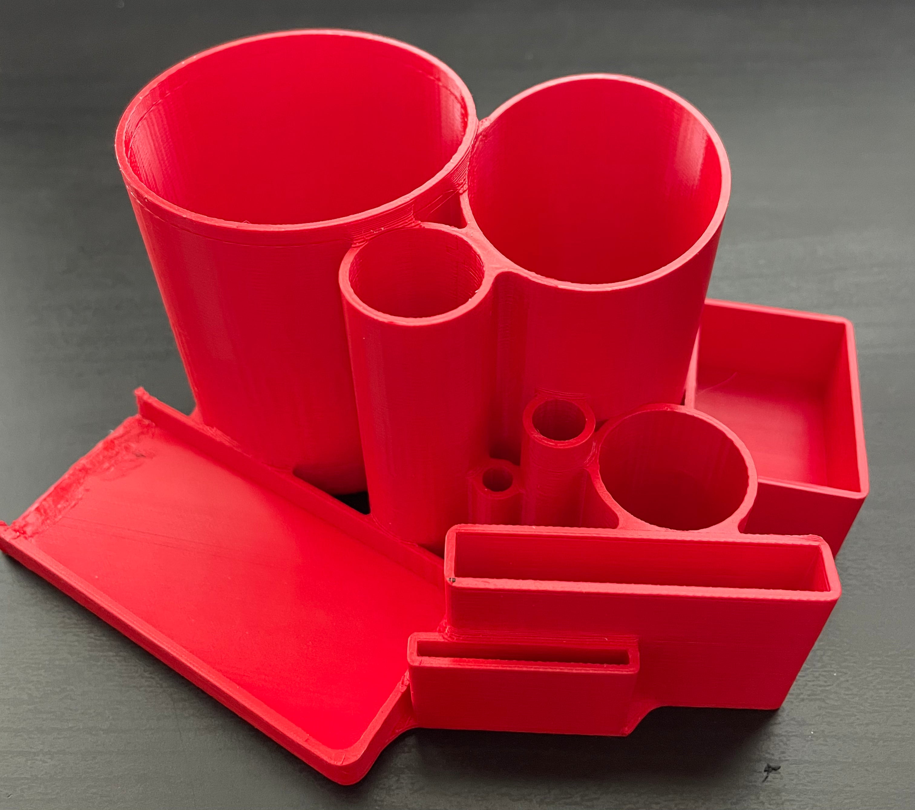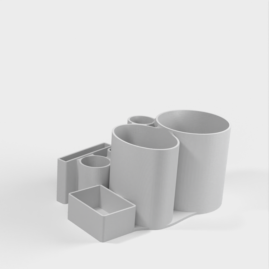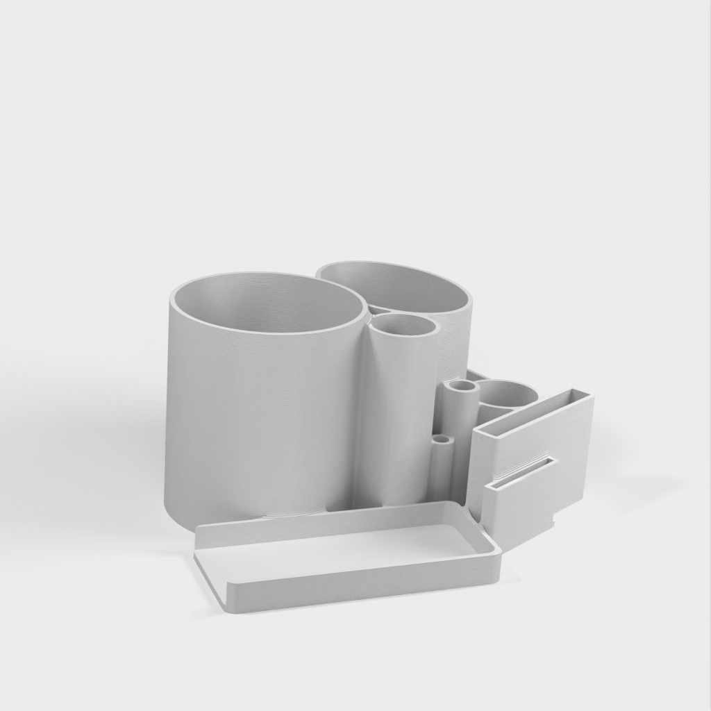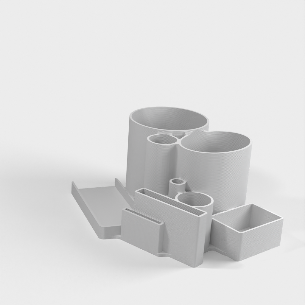 Un portautensili e un organizzatore che ho progettato per riporre tutti i miei attrezzi. Si adatta comodamente alla stampante. È compatibile con questo portaugelli: https://www.prusaprinters.org/prints/57441-nozzle-organizer. Strumenti come ugelli, pennelli, colla, pinze, cacciaviti, chiavi a brugola, schede microSD, schede SD e stracci possono essere riposti in questo supporto. Consente di riporre e accedere agli strumenti necessari in modo facile e ordinato.