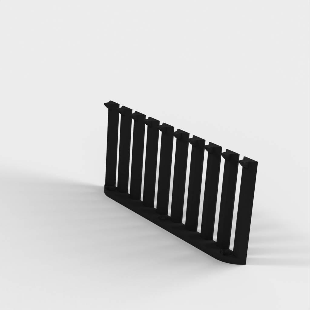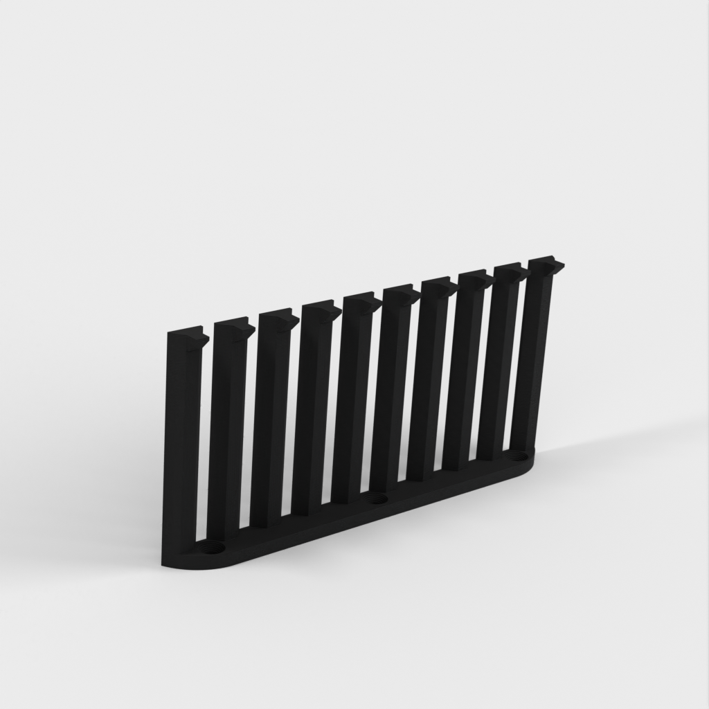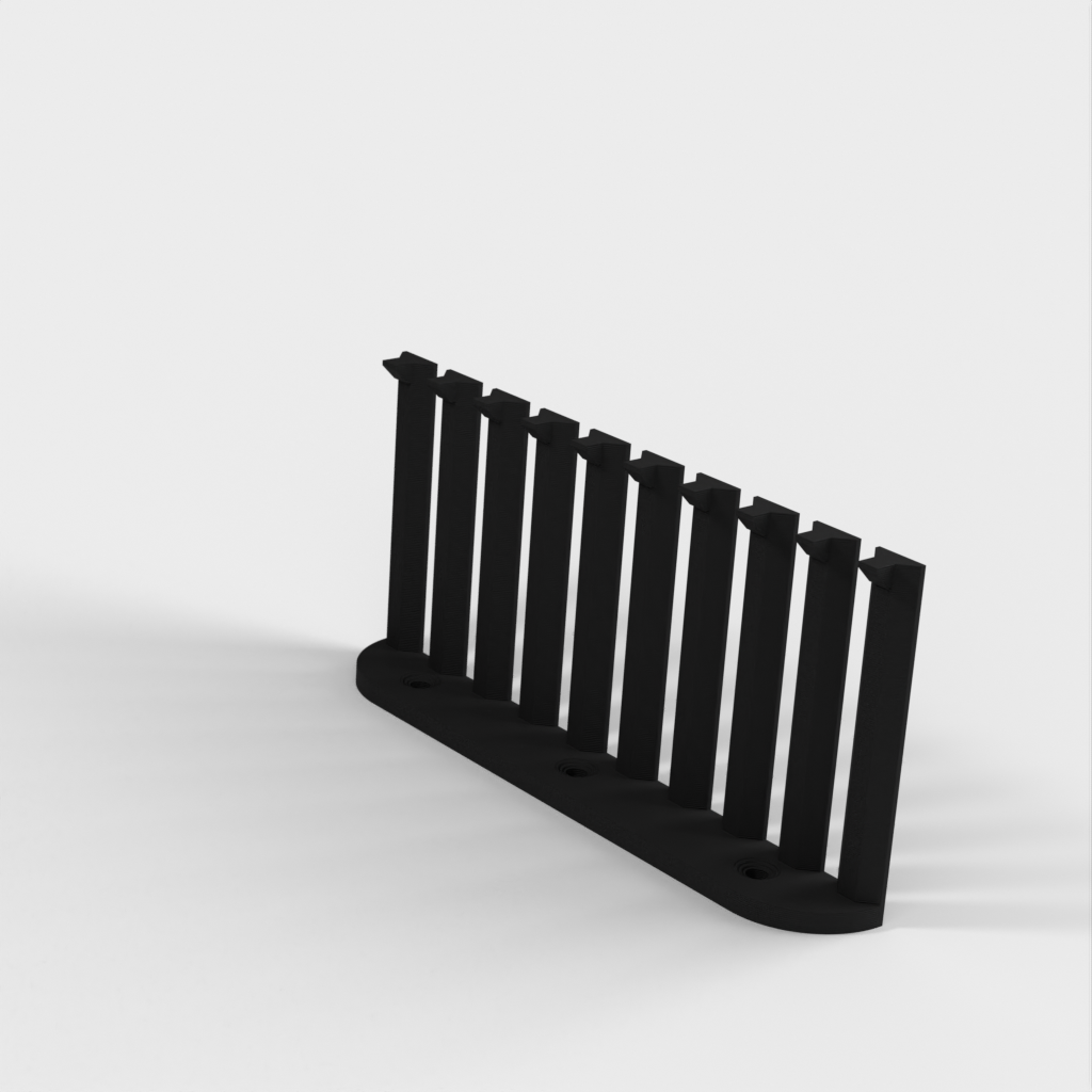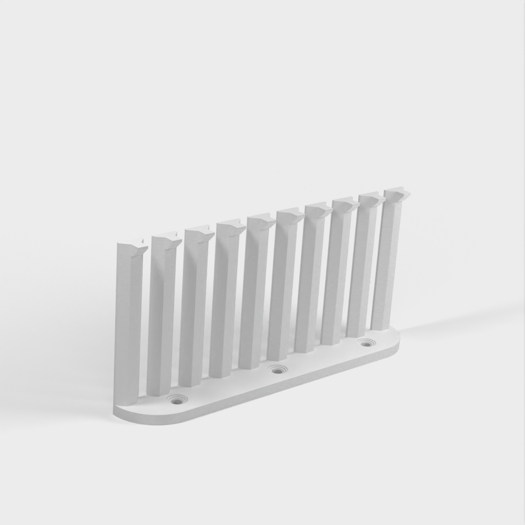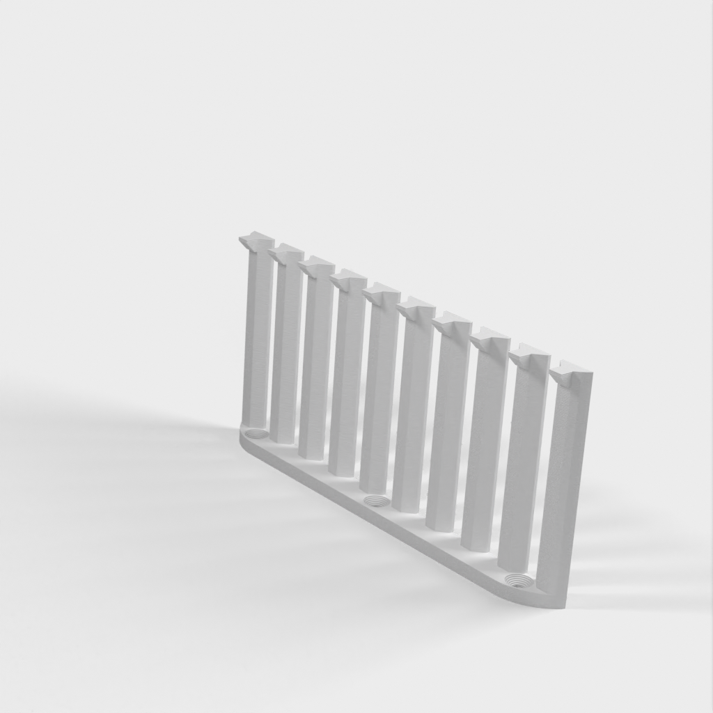 Questo organizzatore di cavi parametrico è stato progettato per organizzare i cavi in modo efficiente. Con 10 bracci, offre spazio per 9 cavi con una distanza di 4 mm tra l'uno e l'altro. Il design attuale è stato migliorato con un'altezza di montaggio posteriore più bassa rispetto alla versione 1. Le viti sono state progettate per essere facilmente installate con un sistema di fissaggio svasato. Le viti sono state progettate per essere facili da installare con viti M4 svasate. È perfetto per qualsiasi laboratorio o luogo di lavoro che richieda l'organizzazione dei cavi.