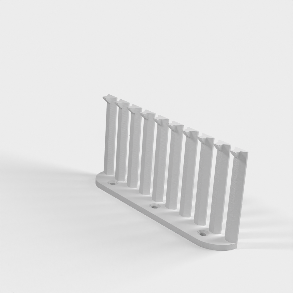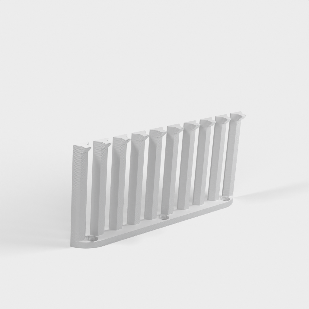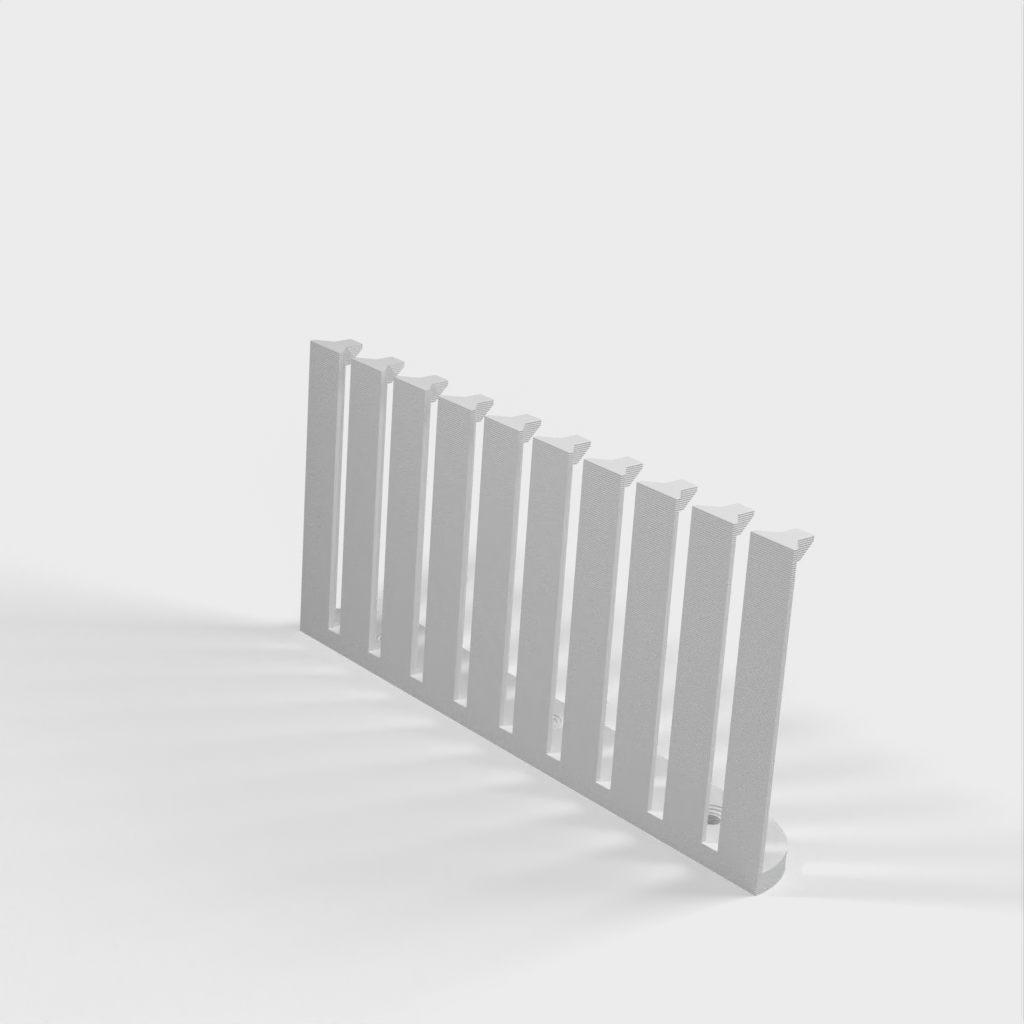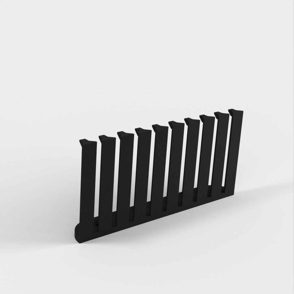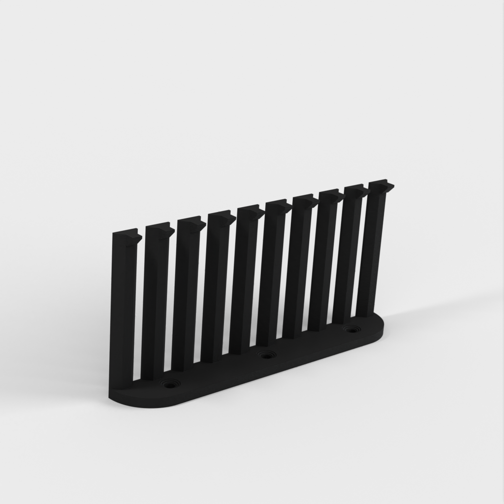 Questo organizzatore di cavi parametrico è stato progettato per organizzare i cavi in modo efficiente. Con 10 bracci, offre spazio per 9 cavi con una distanza di 4 mm tra l'uno e l'altro. Il design attuale è stato migliorato con un'altezza di montaggio posteriore più bassa rispetto alla versione 1. Le viti sono state progettate per essere facilmente installate con un sistema di fissaggio svasato. Le viti sono state progettate per essere facili da installare con viti M4 svasate. È perfetto per qualsiasi laboratorio o luogo di lavoro che richieda l'organizzazione dei cavi.