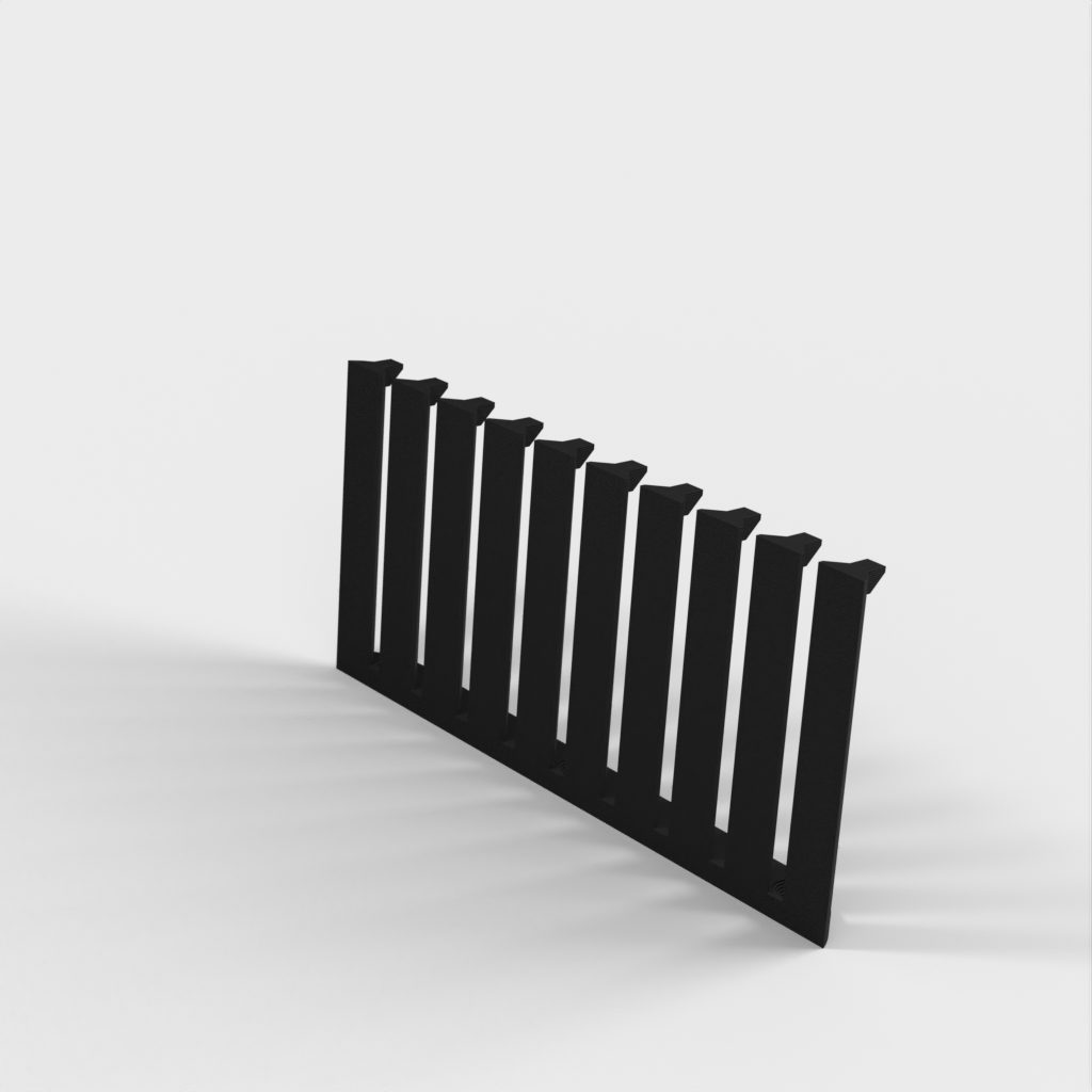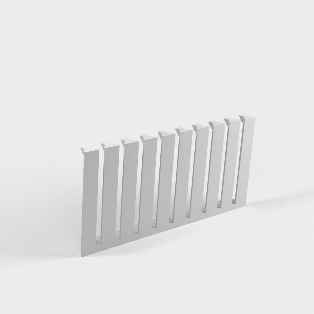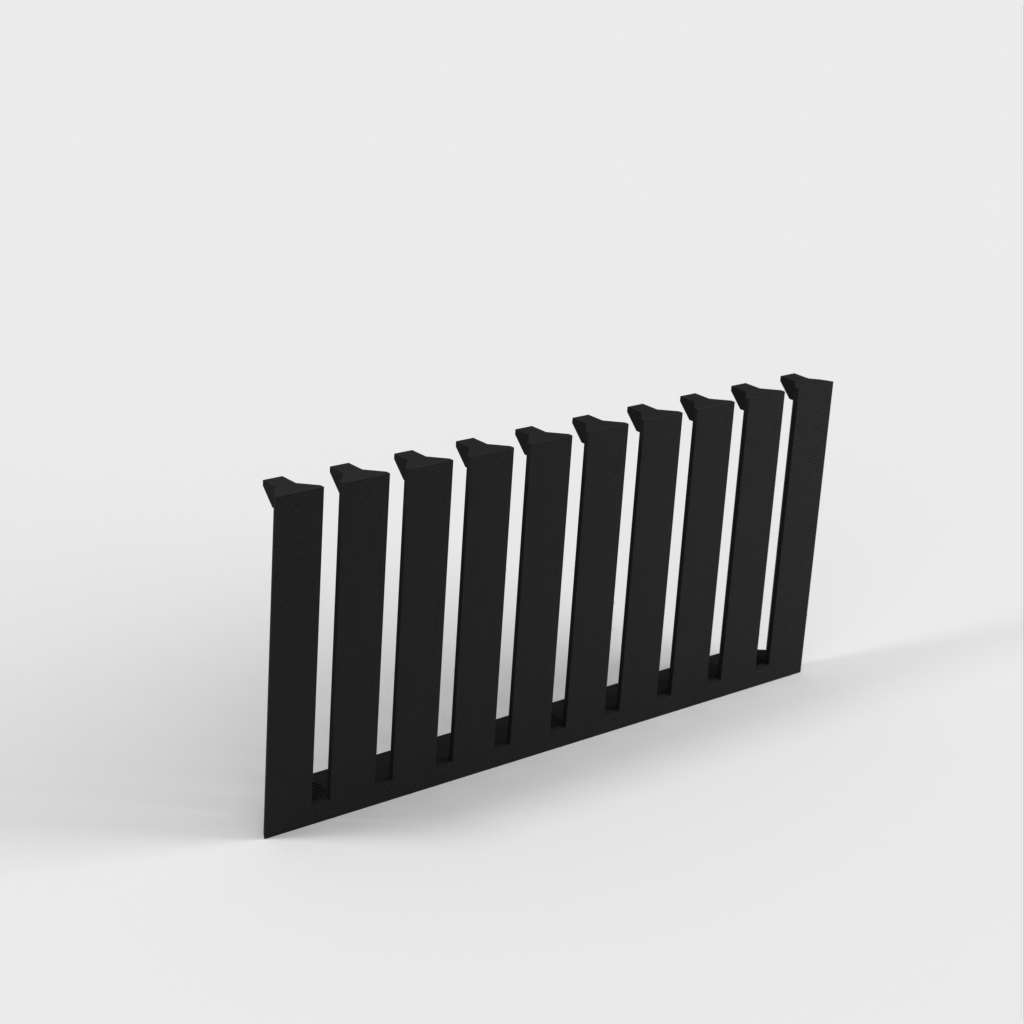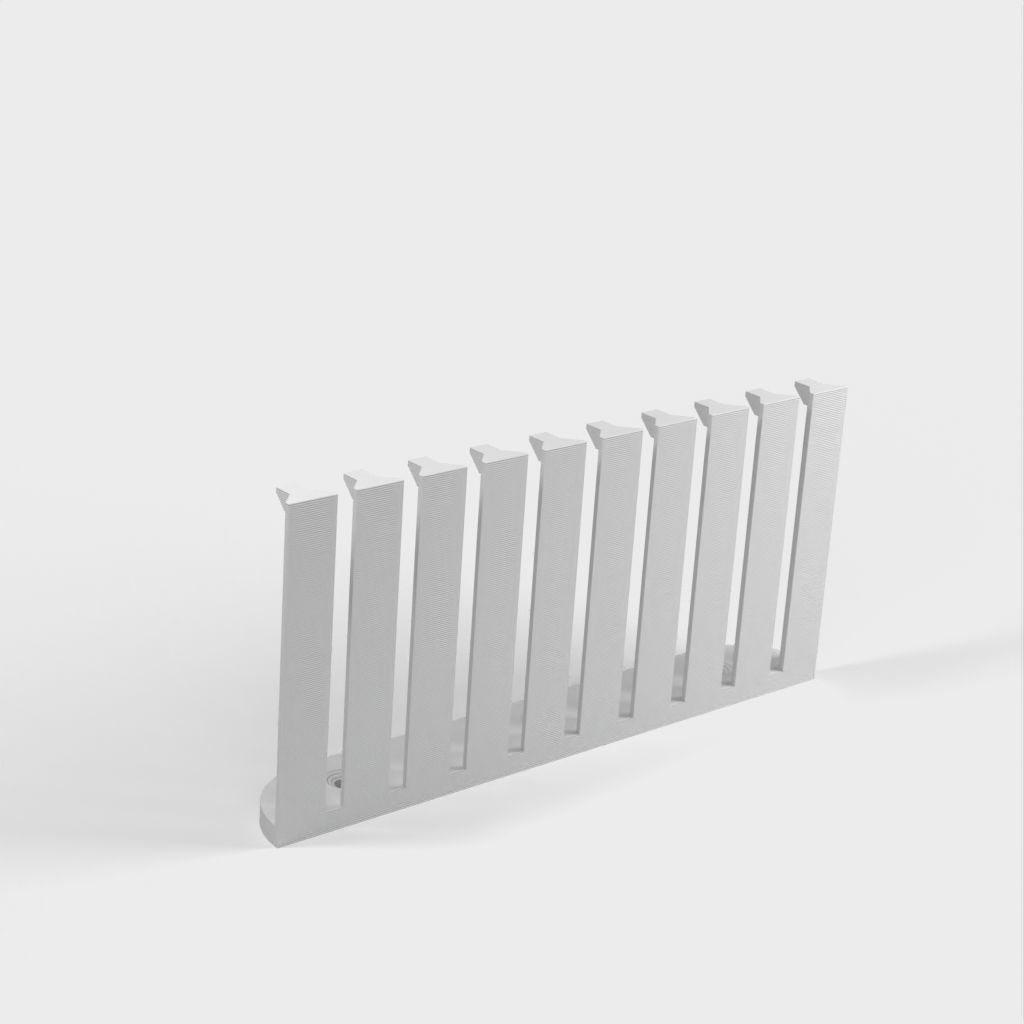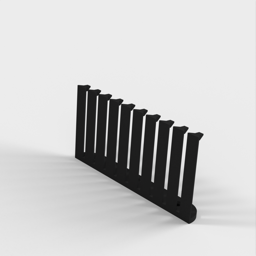 Questo organizzatore di cavi parametrico è stato progettato per organizzare i cavi in modo efficiente. Con 10 bracci, offre spazio per 9 cavi con una distanza di 4 mm tra l'uno e l'altro. Il design attuale è stato migliorato con un'altezza di montaggio posteriore più bassa rispetto alla versione 1. Le viti sono state progettate per essere facilmente installate con un sistema di fissaggio svasato. Le viti sono state progettate per essere facili da installare con viti M4 svasate. È perfetto per qualsiasi laboratorio o luogo di lavoro che richieda l'organizzazione dei cavi.