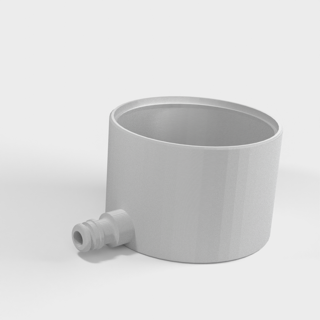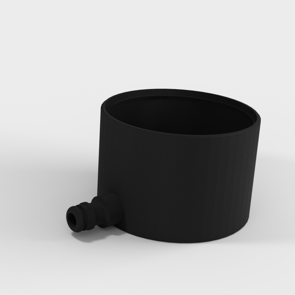 Questo set include un raccoglitore di acqua piovana e un deviatore per pluviali/pluviometri per collegare il serbatoio dell'acqua piovana a diversi tubi. Il deviatore è dotato di due adattatori che consentono di collegare tubi di diverse dimensioni. Un adattatore è progettato per i tubi da giardino standard, mentre l'altro è destinato a tubi più grandi (27,5 mm). L'adattatore per tubi più grandi richiede un taglio più grande nella parte inferiore, motivo per cui nel set è inclusa anche una nuova parte inferiore.