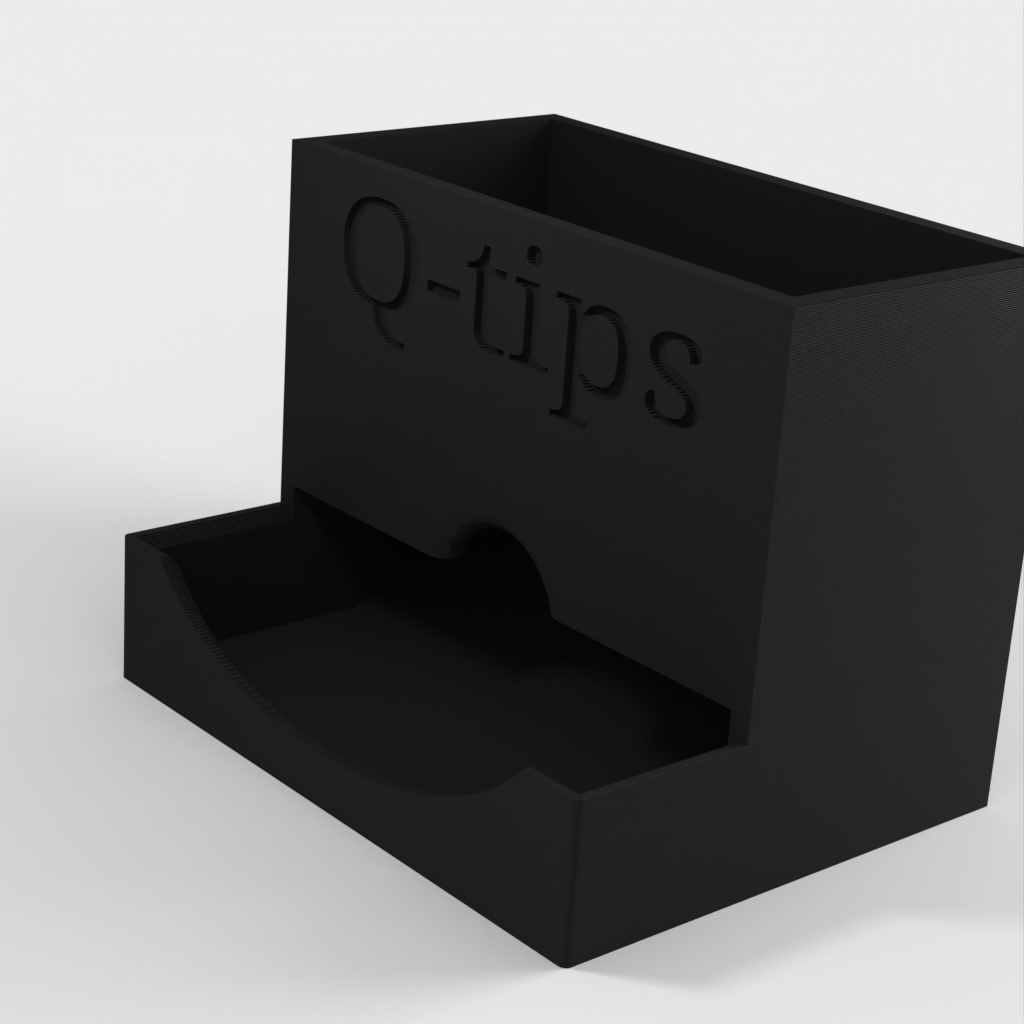 Porta cotton fioc che facilita l'estrazione del cotton fioc. Questa scatola di immagazzinaggio è progettata per essere pratica e facilmente accessibile, in modo da poter estrarre rapidamente un cotton fioc quando ne hai bisogno. Con la forma leggermente modificata e l'aggiunta di testo sulla scatola, questo porta cotton fioc funziona perfettamente in qualsiasi bagno o montato a parete accanto al tuo tavolo da trucco.