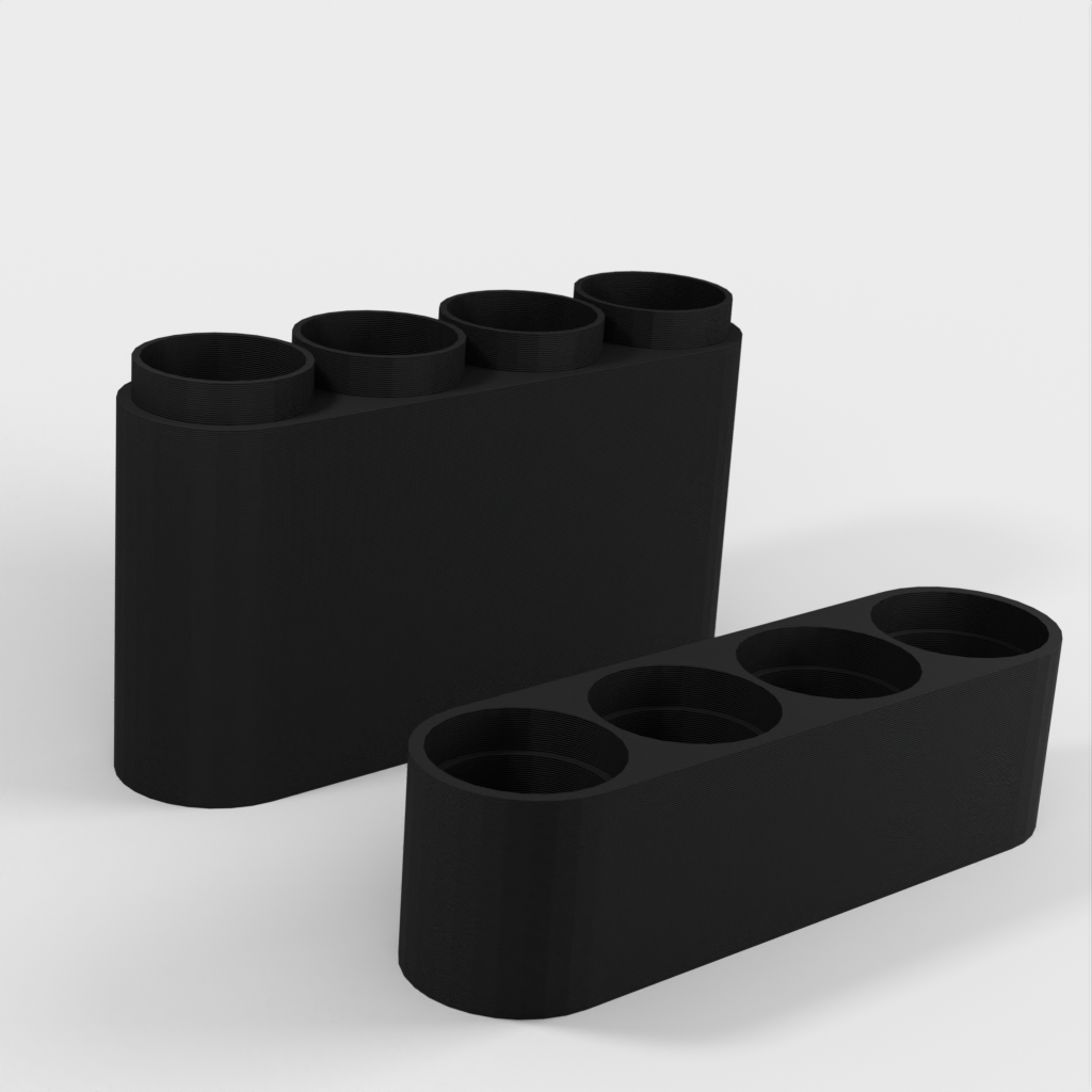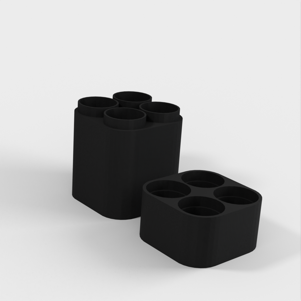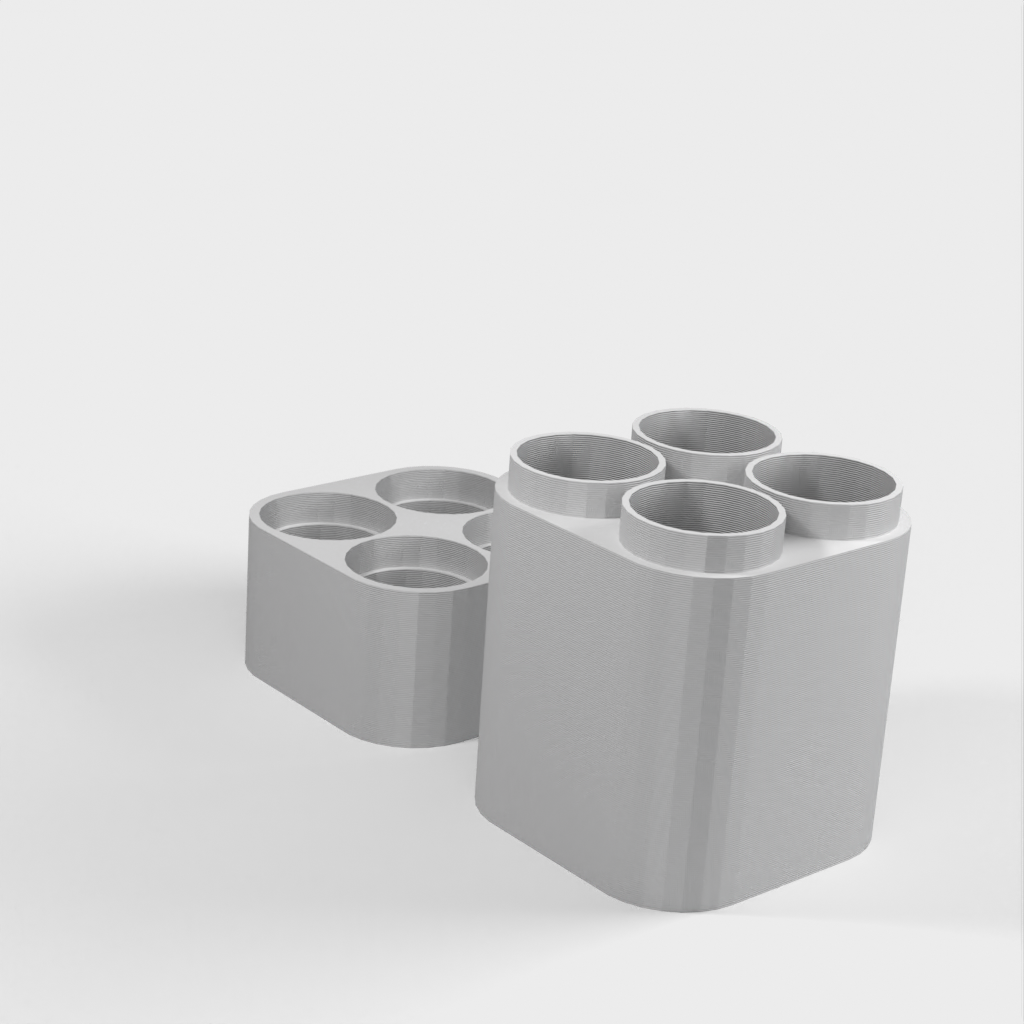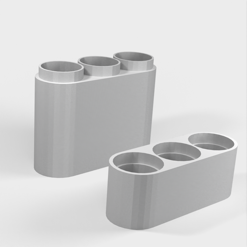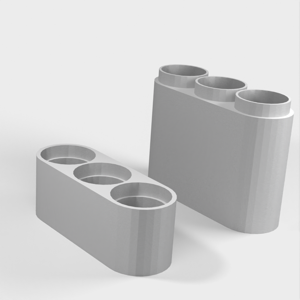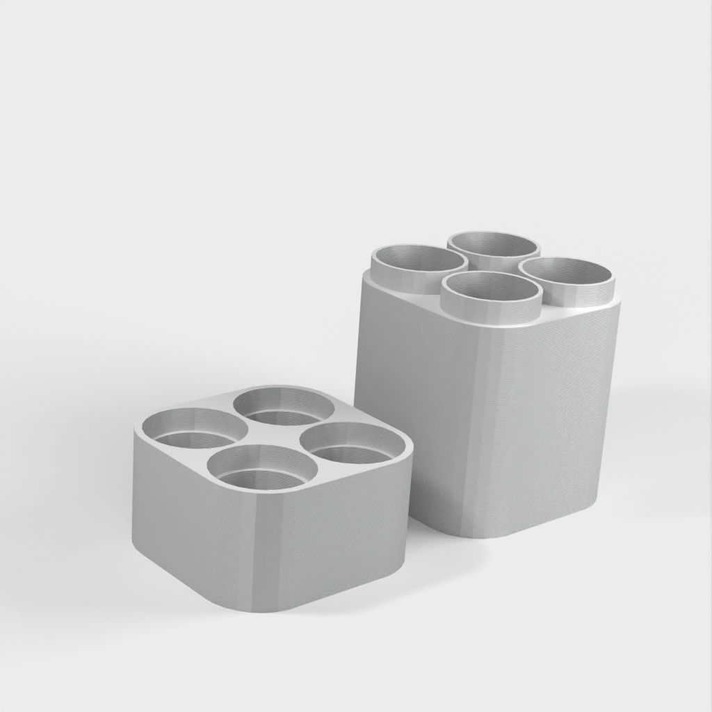 Il supporto da viaggio per batterie AA e AAA aiuta a organizzare le batterie in modo efficiente. Questo supporto può contenere 2, 4 o 3 pile, in una matrice lineare o 2x2. Il supporto è composto da un pezzo superiore e uno inferiore e utilizza una semplice regola empirica: Se la piccola rientranza è rivolta verso l'alto, la batteria è carica.