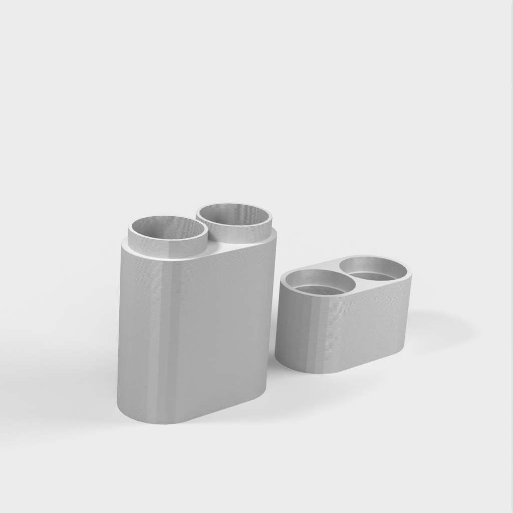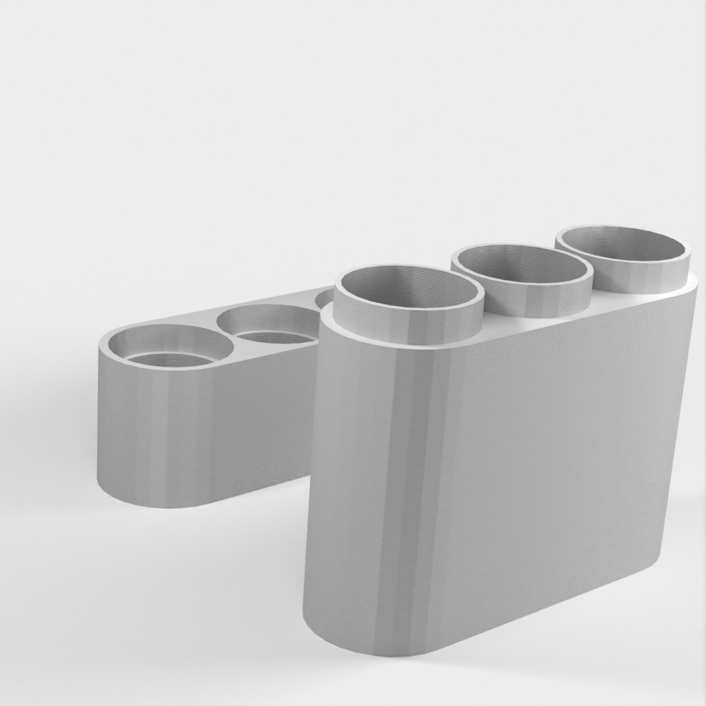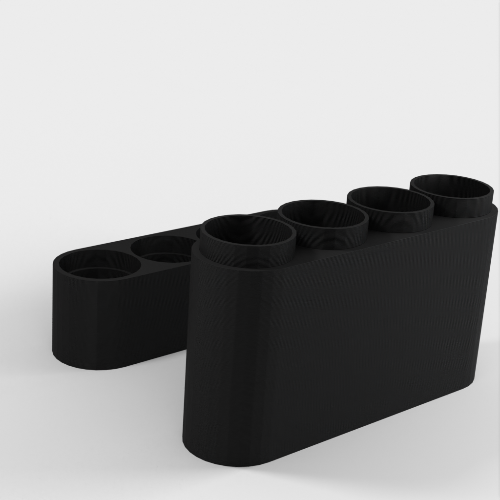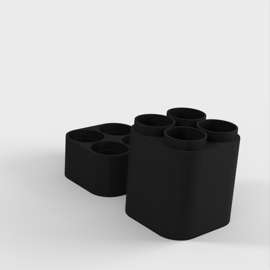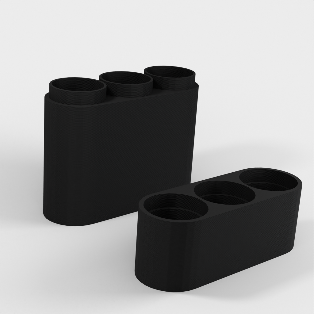 Il supporto da viaggio per batterie AA e AAA aiuta a organizzare le batterie in modo efficiente. Questo supporto può contenere 2, 4 o 3 pile, in una matrice lineare o 2x2. Il supporto è composto da un pezzo superiore e uno inferiore e utilizza una semplice regola empirica: Se la piccola rientranza è rivolta verso l'alto, la batteria è carica.