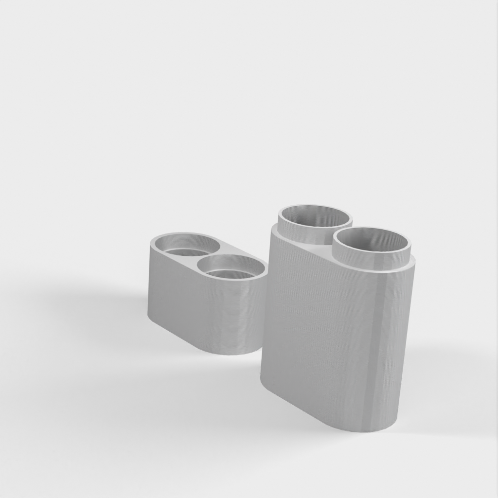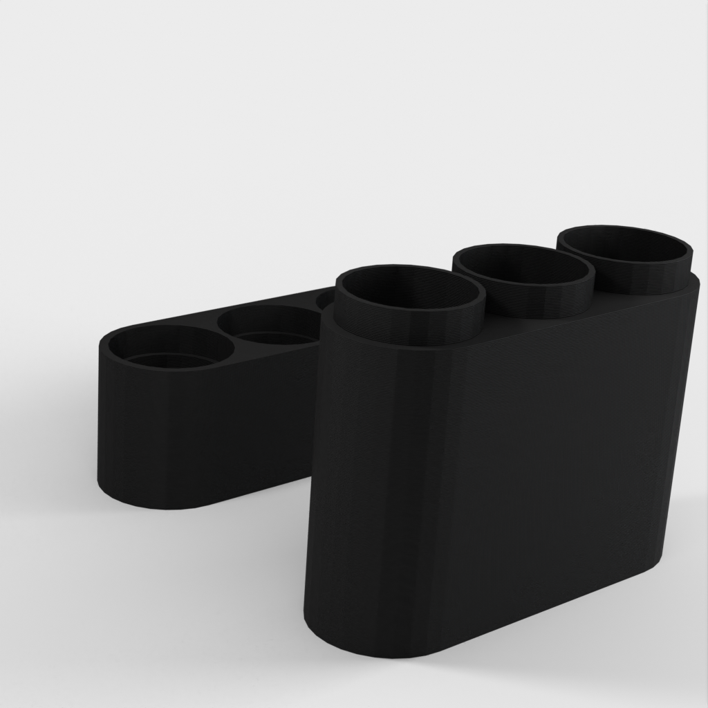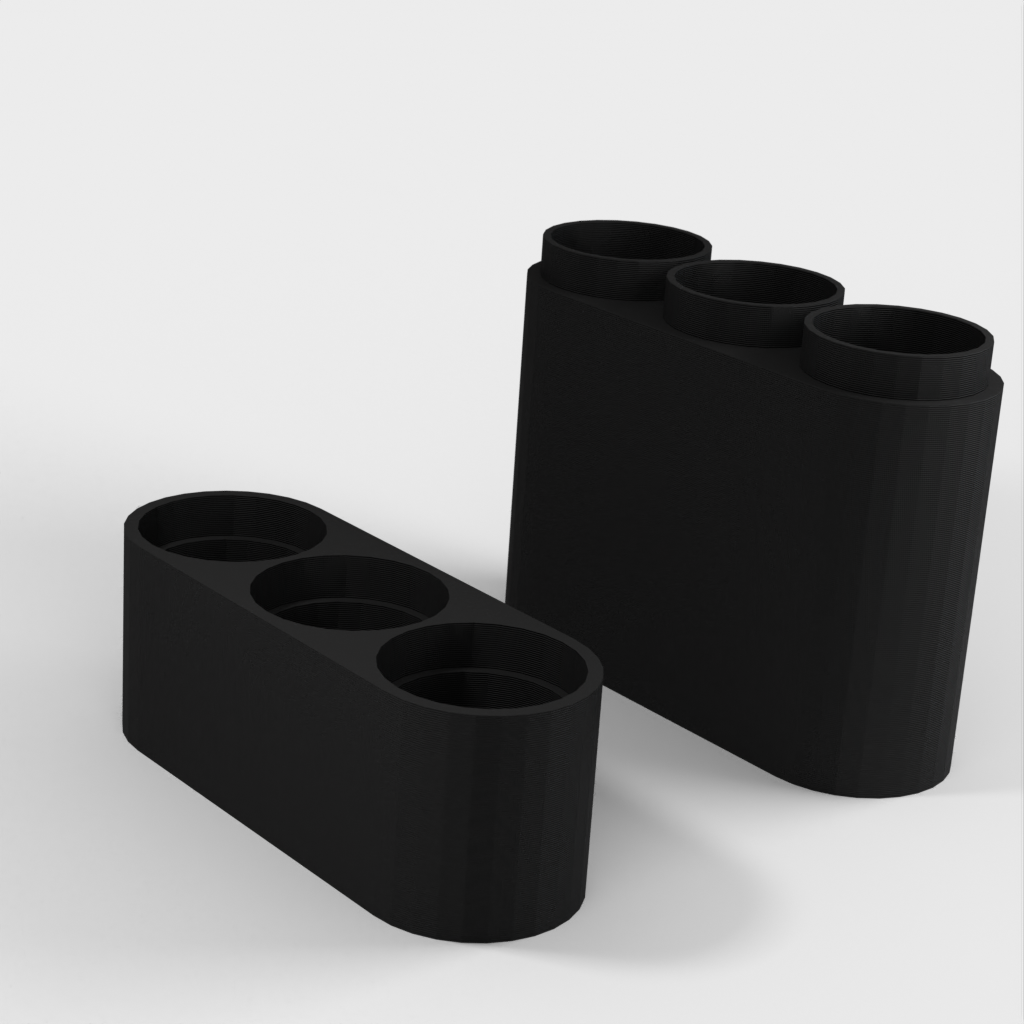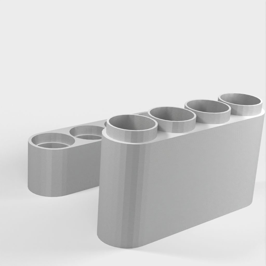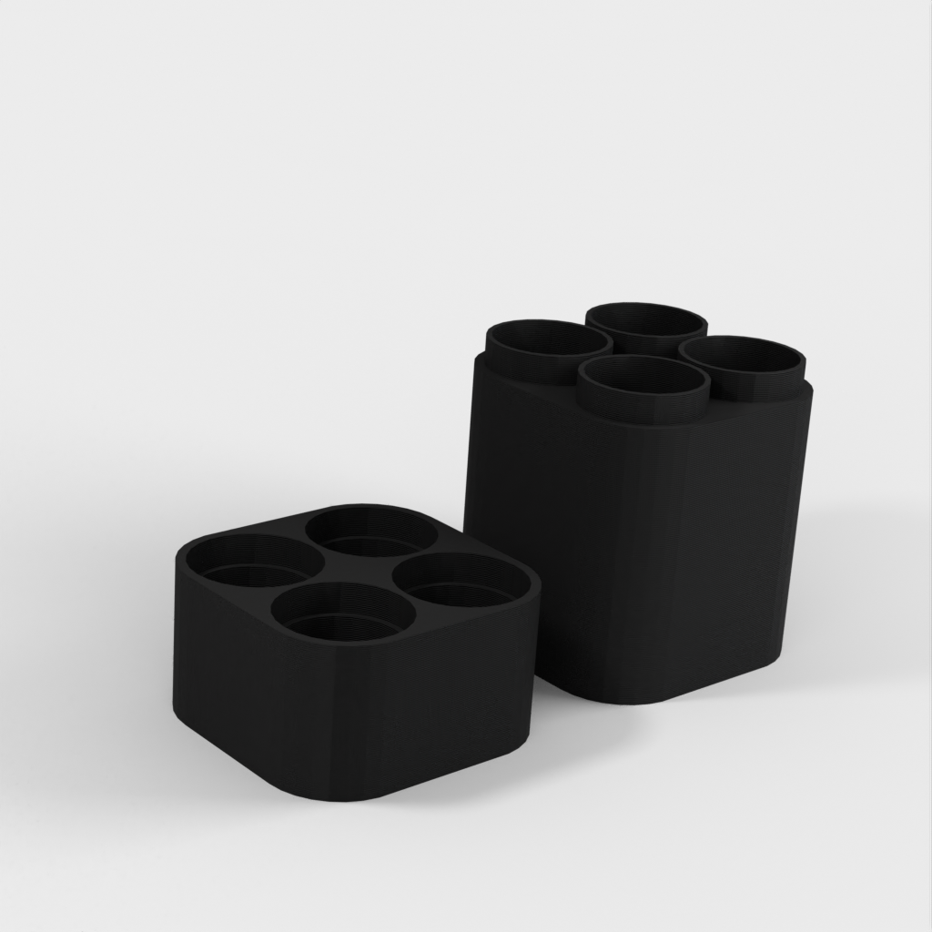 Il supporto da viaggio per batterie AA e AAA aiuta a organizzare le batterie in modo efficiente. Questo supporto può contenere 2, 4 o 3 pile, in una matrice lineare o 2x2. Il supporto è composto da un pezzo superiore e uno inferiore e utilizza una semplice regola empirica: Se la piccola rientranza è rivolta verso l'alto, la batteria è carica.