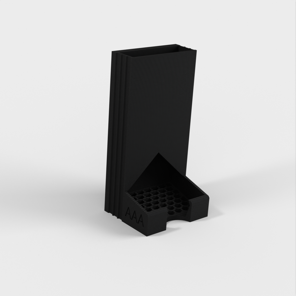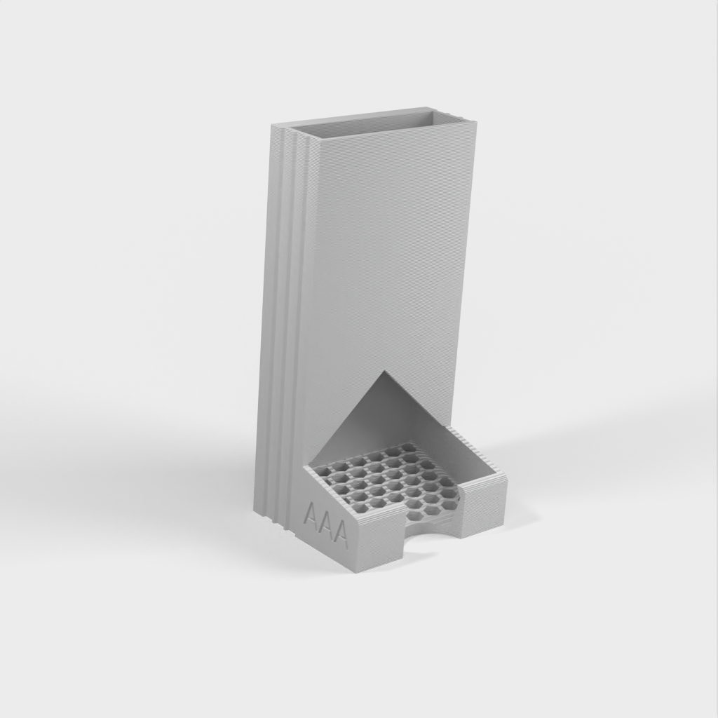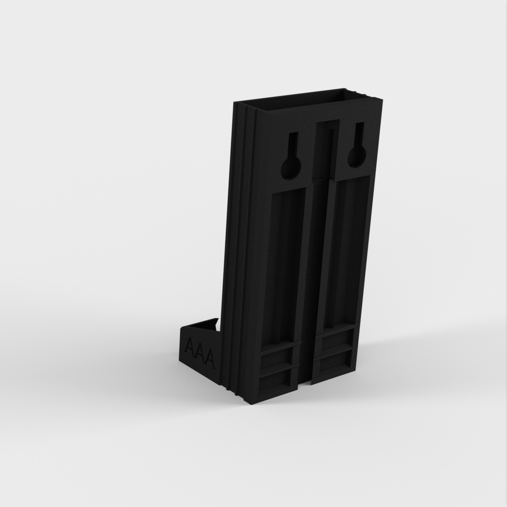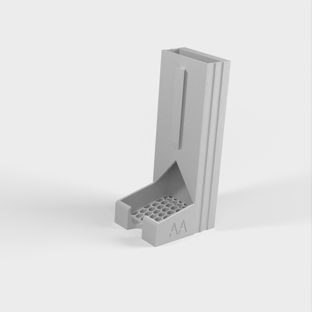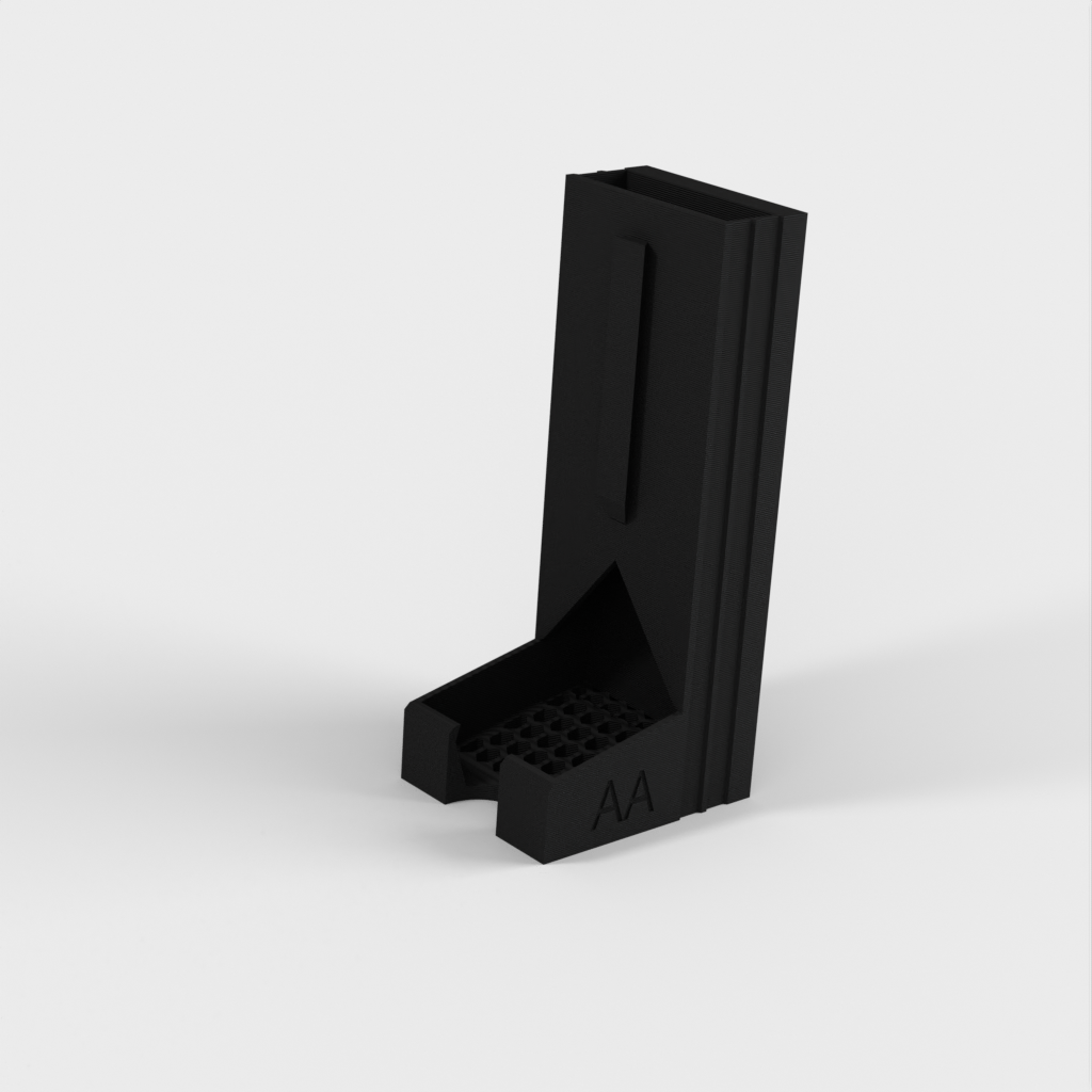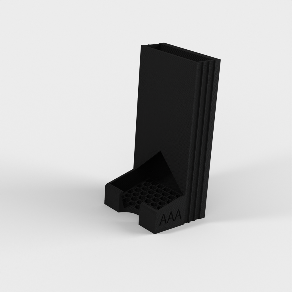Portabatterie per batterie AA e AAA. I portabatterie sono componibili ed è disponibile un supporto a parete. È un sistema pratico e spazioso per riporre le batterie e mantenere l'area organizzata e ordinata.