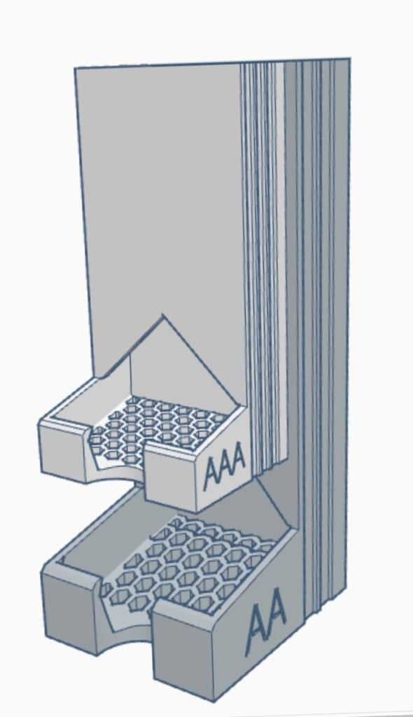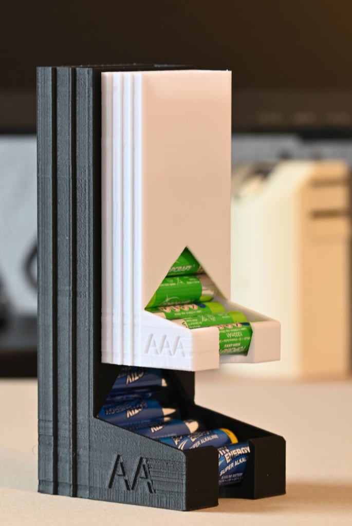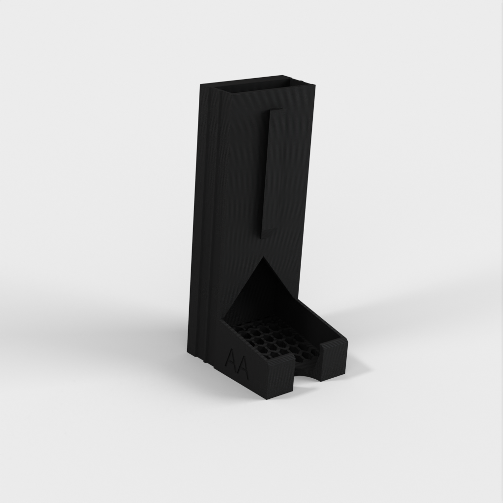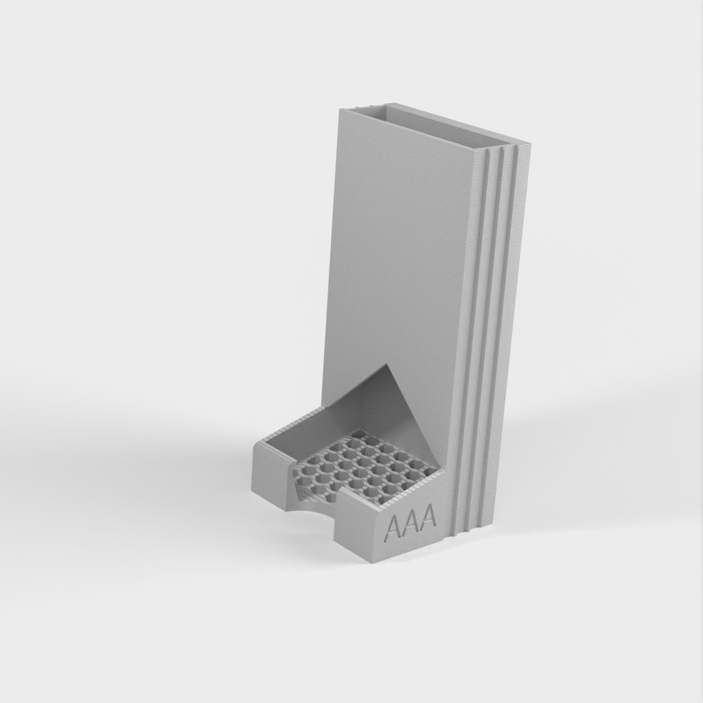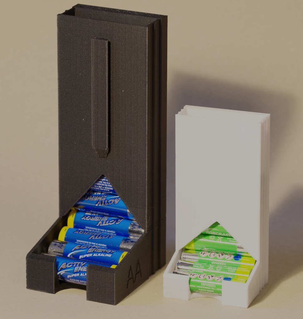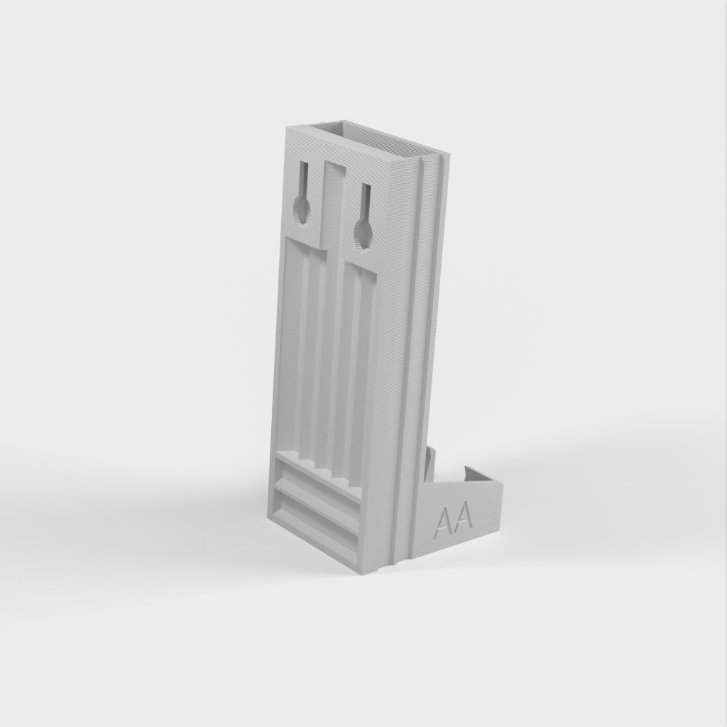 Portabatterie per batterie AA e AAA. I portabatterie sono componibili ed è disponibile un supporto a parete. È un sistema pratico e spazioso per riporre le batterie e mantenere l'area organizzata e ordinata.
