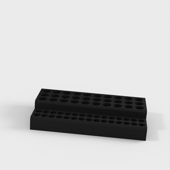 Questo è un portabatterie progettato per conservare le batterie in modo efficiente e organizzato. Quando si acquistano le batterie, spesso vengono fornite in scomodi contenitori di plastica che rendono difficile estrarle. Con questo portabatterie è possibile tenere insieme fino a 60 batterie in un unico posto. È ordinato, compatto e facile da riporre in un cassetto della scrivania.