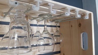 Questo portabicchieri da vino offre una soluzione pratica e salvaspazio per riporre i tuoi bicchieri da vino, una scelta interessante per chi cerca alternative efficienti. È progettato per essere montato discretamente sotto mensole, mobiletti bar o pensili della cucina, liberando così spazio prezioso negli armadietti e mantenendo i tuoi bicchieri organizzati e facilmente accessibili. Il sistema è flessibile e ti permette di personalizzare la lunghezza della barra (barra non inclusa) per soddisfare esattamente le tue esigenze. La larghezza tra i due supporti può essere regolata per adattarsi perfettamente al piede dei tuoi bicchieri da vino, assicurando che pendano in modo sicuro e stabile. Il montaggio è semplice e può essere eseguito con viti standard, il che rende questo supporto un'aggiunta funzionale ed elegante in qualsiasi casa.