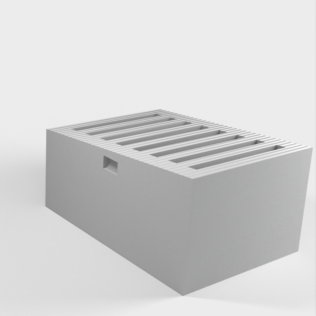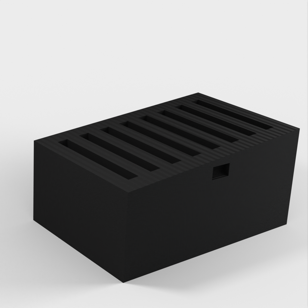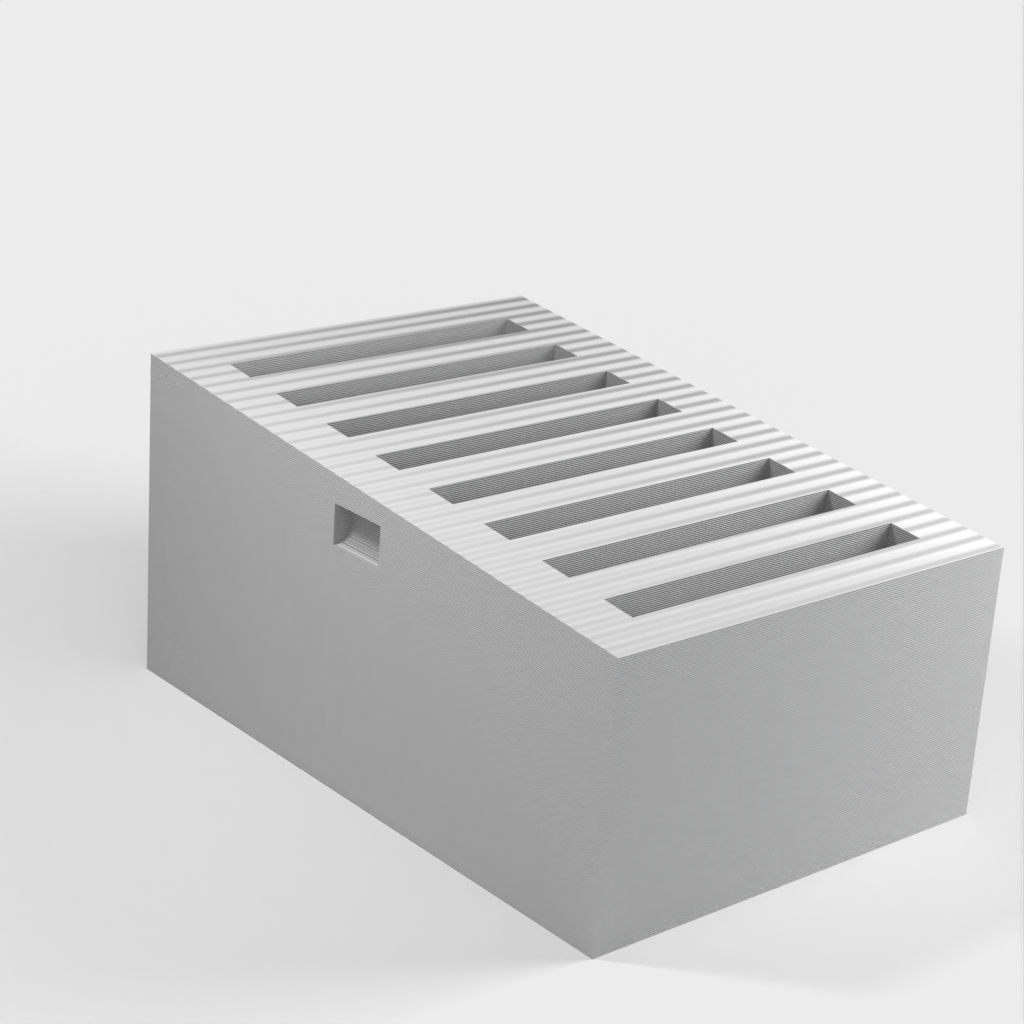 Il supporto per schede SD Mark 2 è una versione migliorata del semplice supporto per schede SD. Questo modello contiene ancora 8 schede, ma ora gli slot per le schede sono leggermente più grandi, rendendo più facile l'inserimento e la rimozione delle schede. Invece di utilizzare fessure strette per evitare che le schede cadano, in questa versione ho aggiunto un coperchio che si aggancia in modo sicuro e protetto.