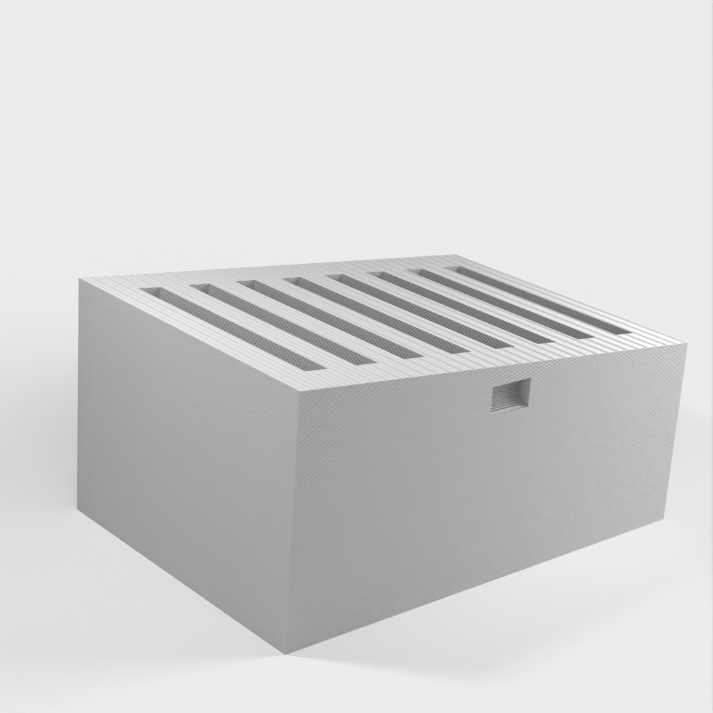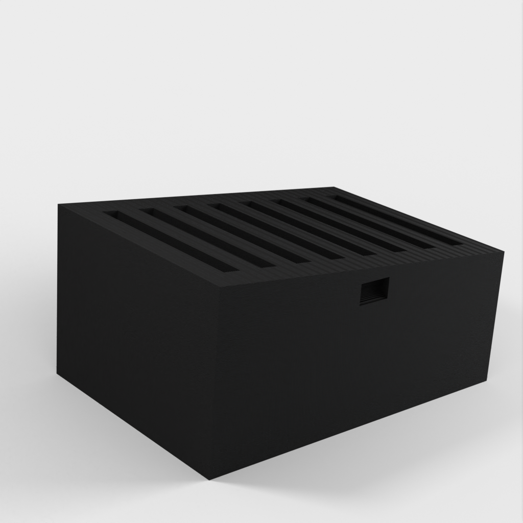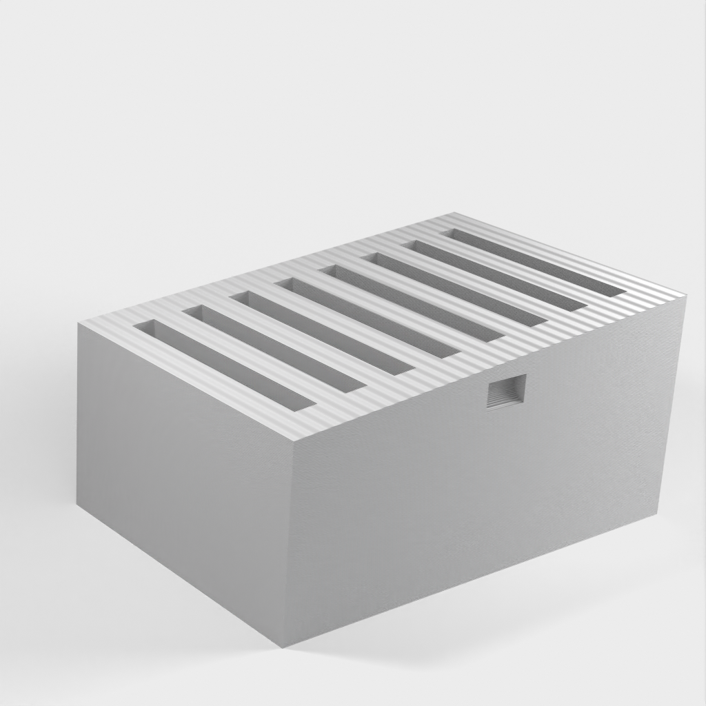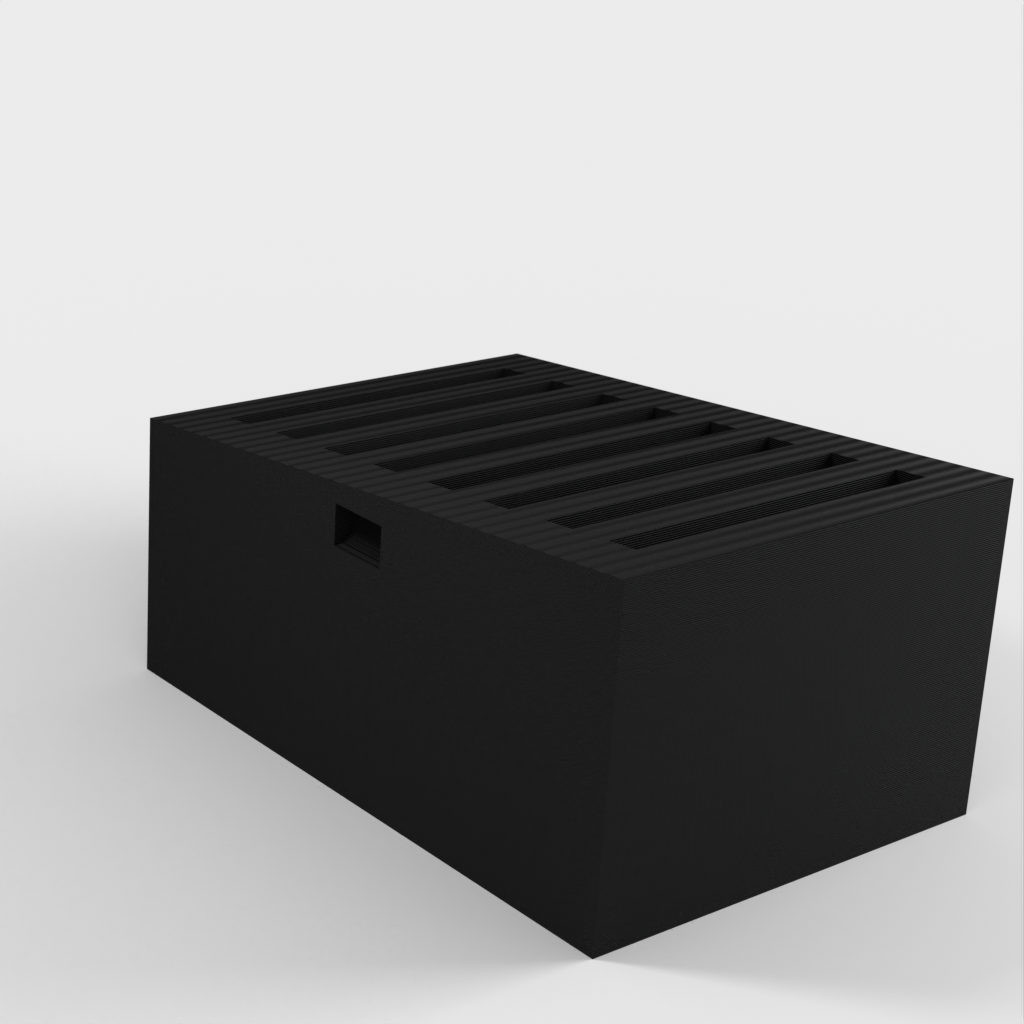 Il supporto per schede SD Mark 2 è una versione migliorata del semplice supporto per schede SD. Questo modello contiene ancora 8 schede, ma ora gli slot per le schede sono leggermente più grandi, rendendo più facile l'inserimento e la rimozione delle schede. Invece di utilizzare fessure strette per evitare che le schede cadano, in questa versione ho aggiunto un coperchio che si aggancia in modo sicuro e protetto.