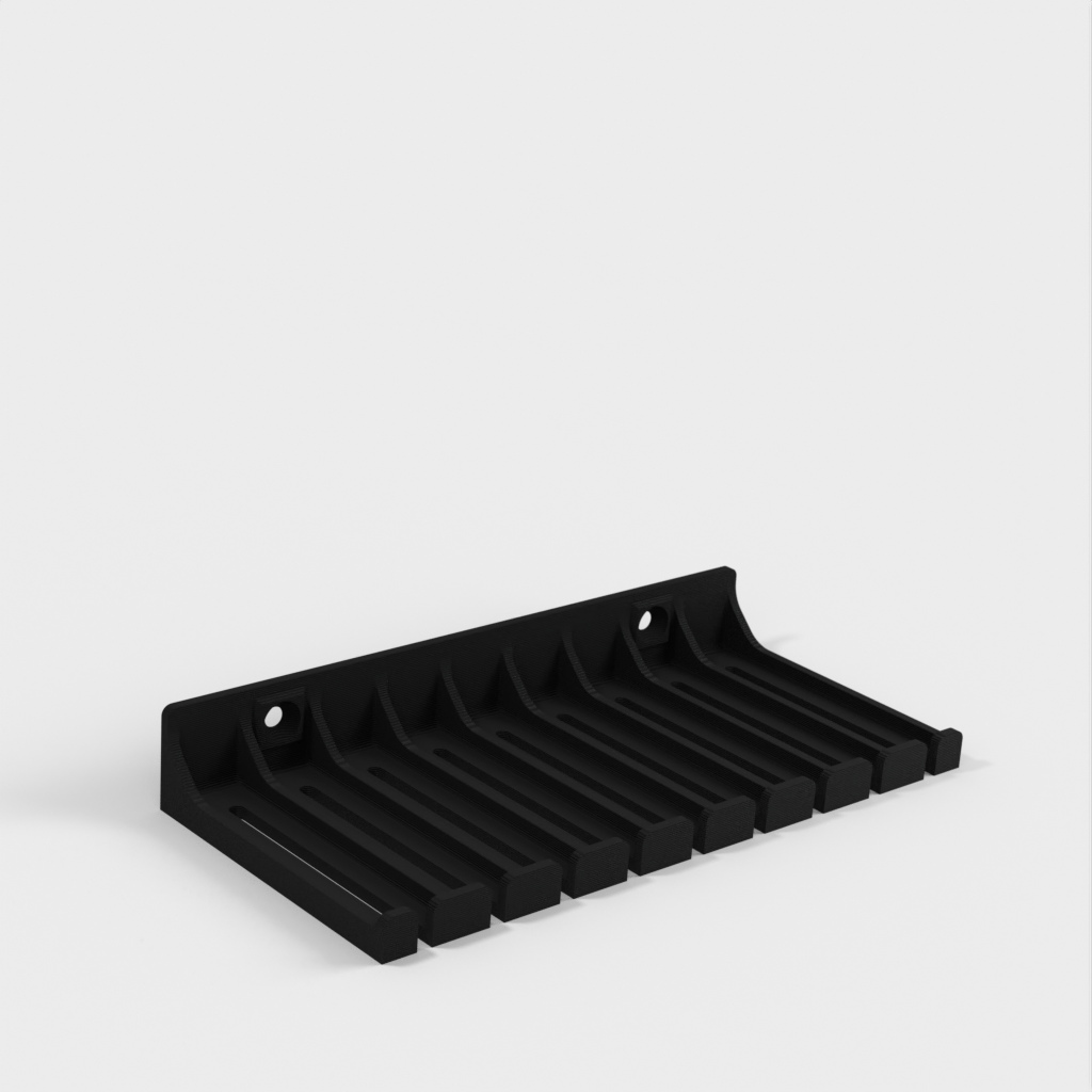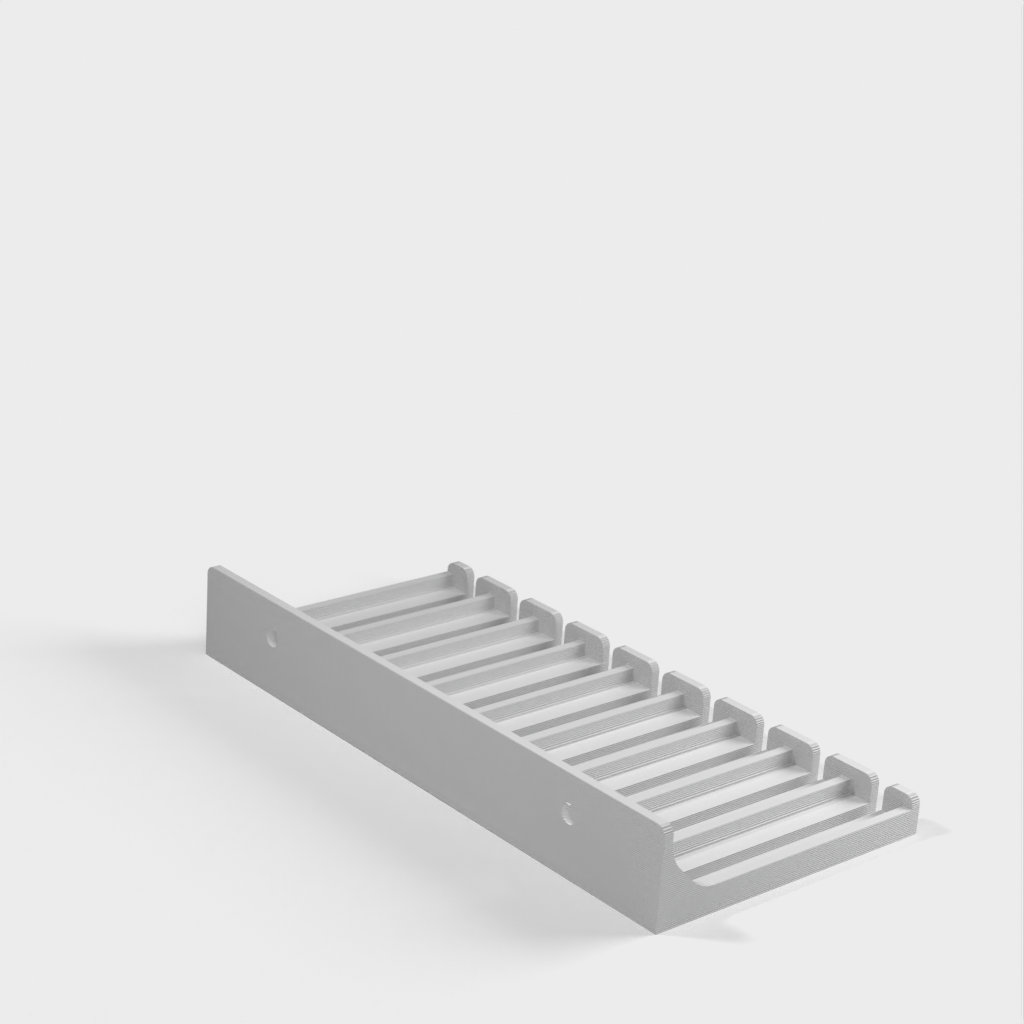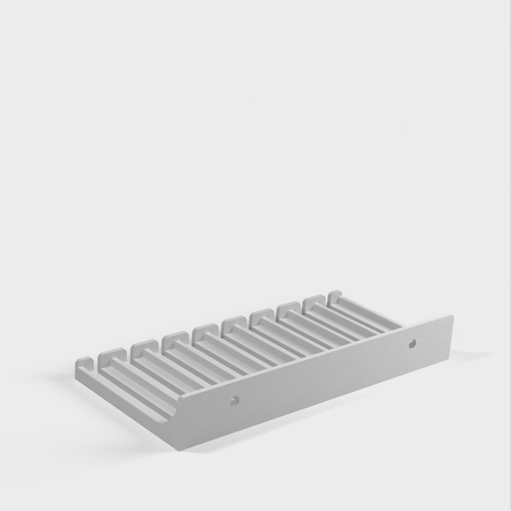 Questo è un portacavi per cavi a coccodrillo da 3 mm, perfetto per organizzare i cavi nel vostro laboratorio. Il design è stato appositamente ottimizzato per evitare spigoli vivi, il che contribuisce a prolungare la durata del prodotto. È fatto per appendere perfettamente i cavi più piccoli.