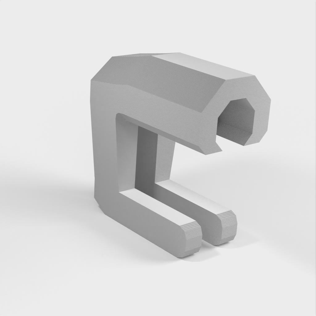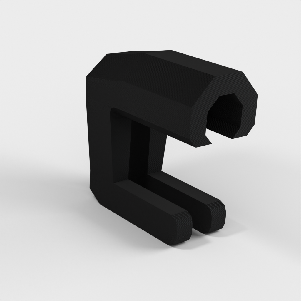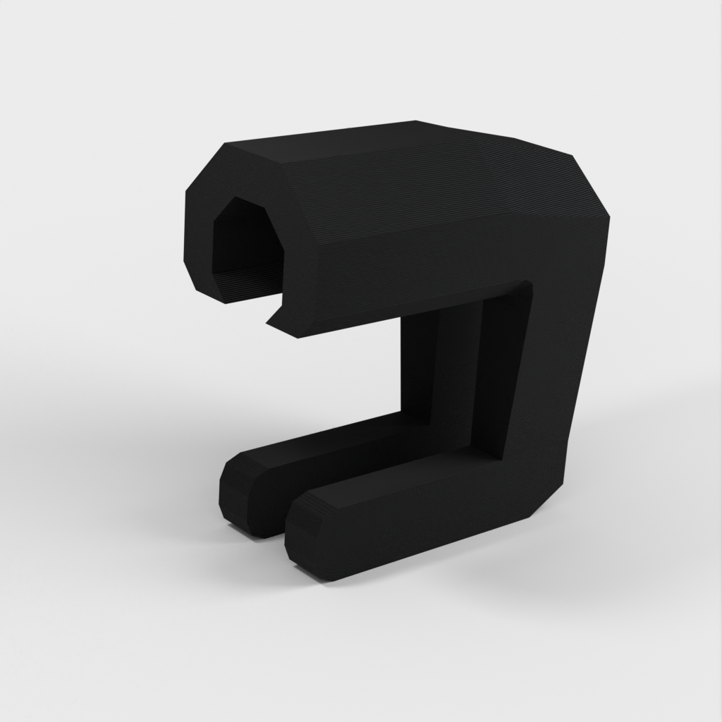 Un semplice portacavi, progettato per adattarsi al tavolo IKEA BEKANT. Questo supporto aiuta a gestire i cavi delle cuffie, del mouse e della tastiera, mantenendoli al sicuro e organizzati. Perfetto per qualsiasi ambiente domestico o d'ufficio in cui i cavi possono sporcarsi o cadere sul pavimento. Questo prodotto è destinato a tavoli con uno spessore di 1,6 cm.