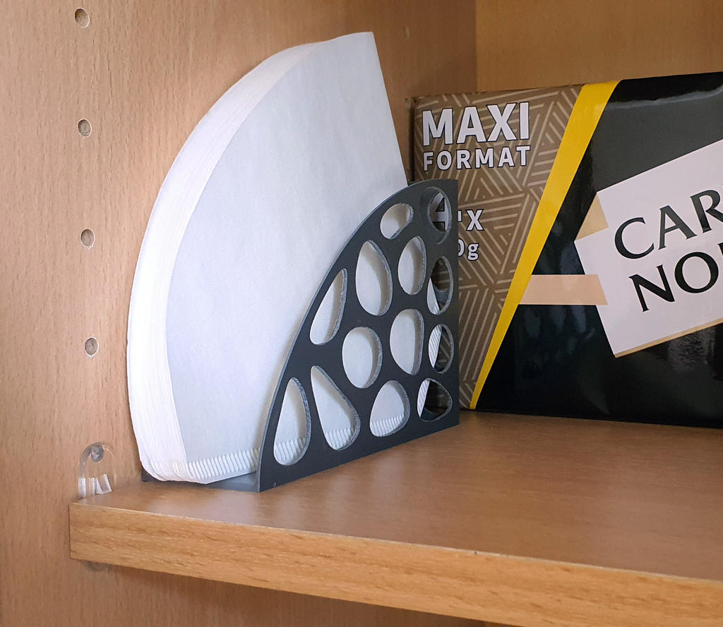 Questo è un semplice portafiltro da caffè realizzato con un diagramma di Voronoï. Il suo design lo rende facile da tenere e organizzare i tuoi filtri da caffè in cucina. Il prodotto è robusto ma leggero, il che lo rende facile da spostare secondo necessità.