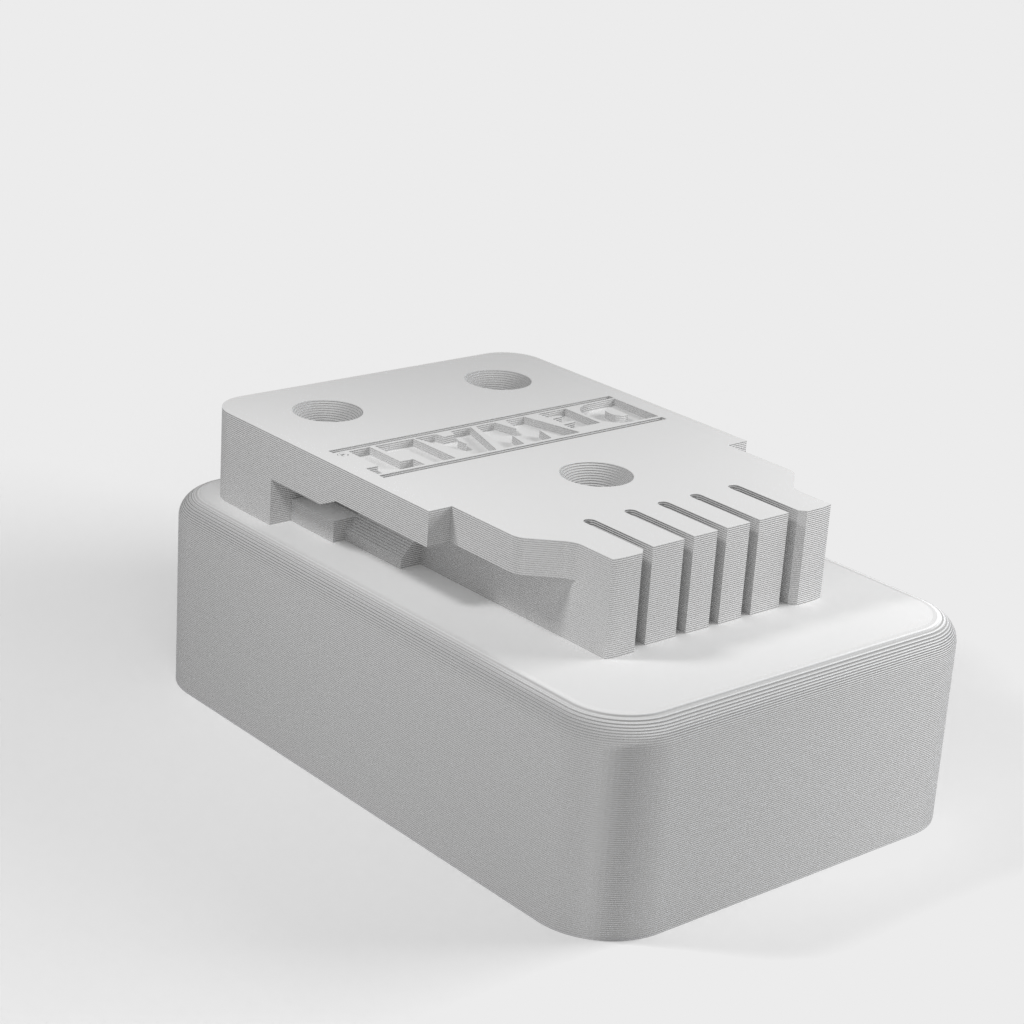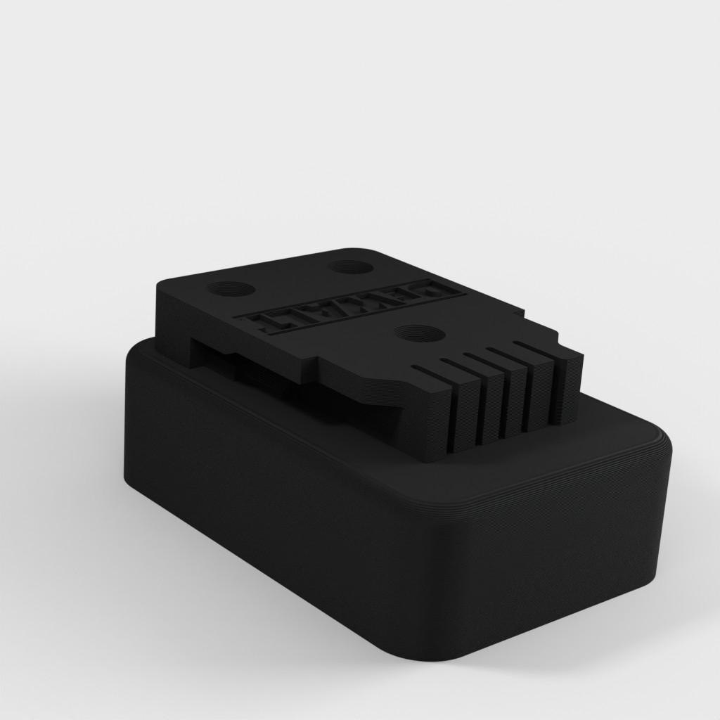 Questo è un semplice portautensili DeWalt per trapani/avvitatori a impulsi da appendere sotto uno scaffale o un piano di lavoro, con spazio sufficiente per accogliere il gancio normalmente montato su trapani/avvitatori a impulsi, ecc.