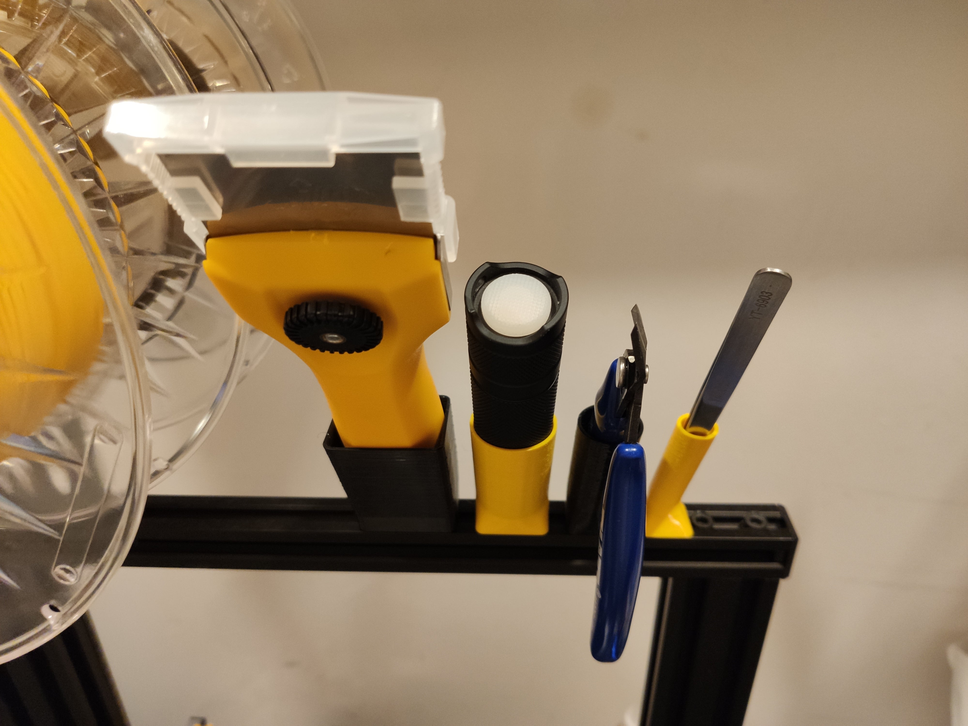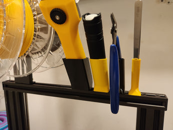 Questi portautensili sono progettati per integrarsi perfettamente con i profili di estrusione 2020, fornendo una soluzione pratica per organizzare il tuo spazio di lavoro. Offrono opzioni di archiviazione specifiche per una gamma di utensili manuali comunemente utilizzati.