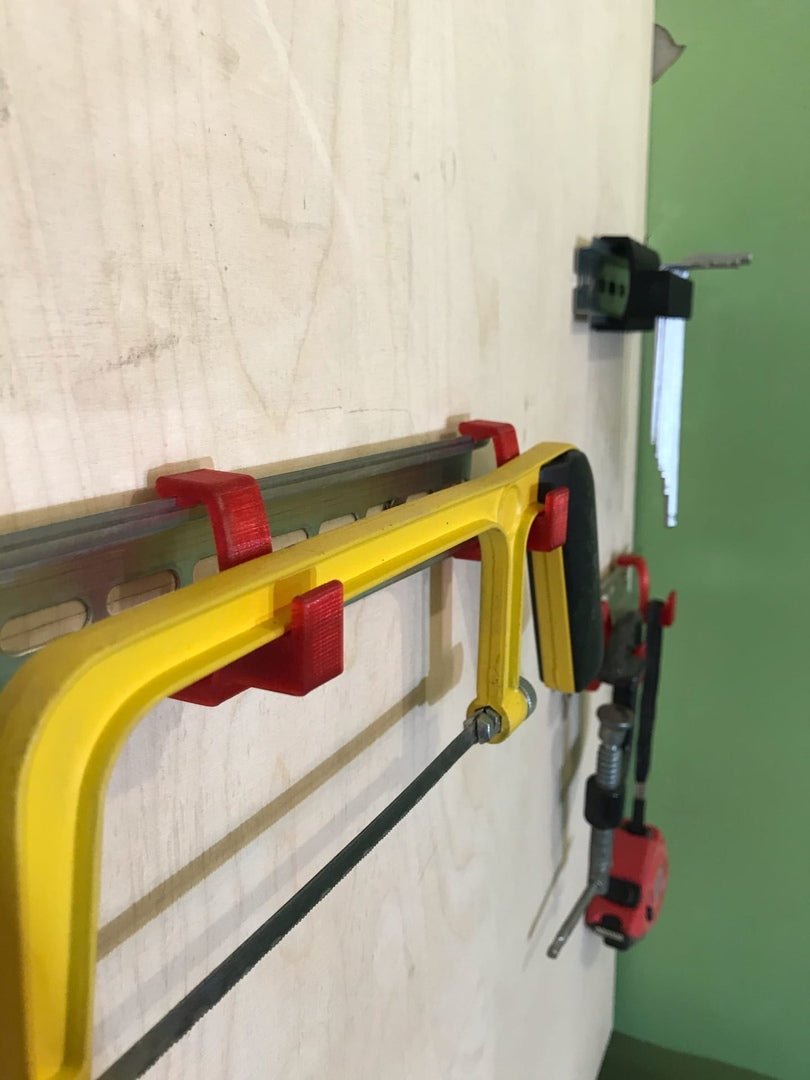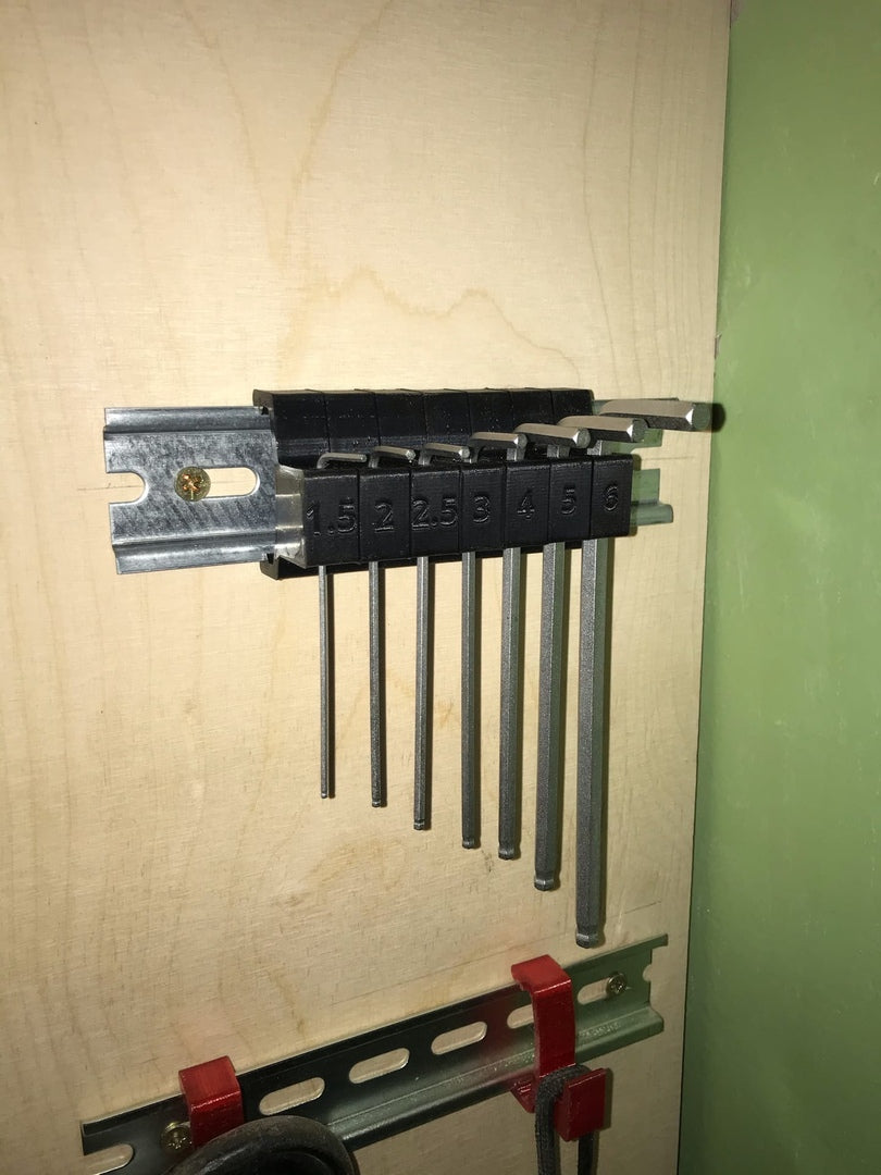 Ogni supporto assicura che i tuoi utensili rimangano al loro posto, ma siano comunque facilmente accessibili. Il sistema offre un approccio flessibile all'organizzazione degli utensili, poiché puoi facilmente adattare il montaggio sulla guida DIN alle tue esigenze specifiche. Questo è un metodo economico per creare un ambiente più efficiente e ordinato, dove puoi facilmente trovare l'utensile di cui hai bisogno, senza perdere tempo.
