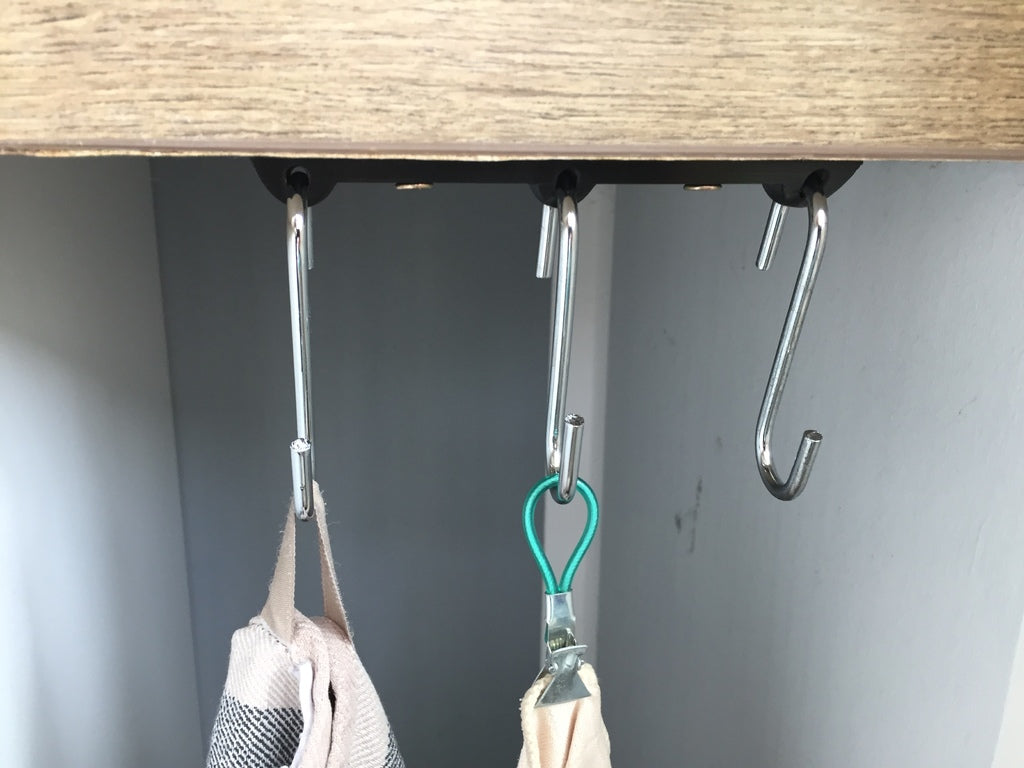 Scopri uno spazio cucina più organizzato e funzionale con questo intelligente supporto a gancio a S. Progettato per essere facilmente montato sotto il piano di lavoro della cucina o uno scaffale, questo supporto ti consente di riutilizzare i tuoi ganci a S esistenti per appendere asciugamani da cucina, strofinacci o altri piccoli utensili da cucina.