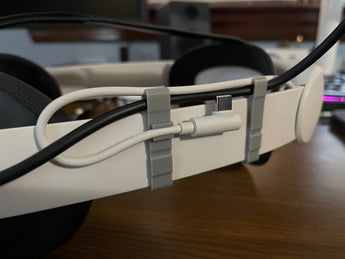- Clip per cavi dal design speciale per gestire in modo efficiente i cavi Link e di ricarica sulla cinghia Elite di Meta Quest 3.