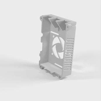 Una parte superiore modificata per un alloggiamento Raspberry Pi 3, progettata per ospitare una ventola da 40x40x10 mm e uscite laterali per migliorare il raffreddamento dell'alloggiamento. Questa modifica al design riduce in modo significativo la temperatura della CPU, aumentando la durata di vita del Raspberry Pi, in particolare in ambienti 24/7 come le configurazioni NAS. Si noti che questa versione non è compatibile con Raspberry Pi 4 in quanto presenta una diversa disposizione delle porte. La posizione della ventola e del riscaldatore significa anche che questo top può essere utilizzato con piastre riscaldanti.