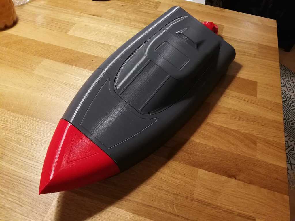 Il motoscafo Jet RC Bashtech è costruito con particolare attenzione alla robustezza e offre la libertà di scegliere autonomamente i componenti interni per ottenere le prestazioni desiderate. Richiede un albero da 4 mm, due cuscinetti a sfera e un servocomando standard per una funzionalità ottimale. Per il montaggio si utilizzano viti M4, M3 e M5, dove i fori sono progettati per filettature autoperforanti per una vestibilità sicura. L'imbarcazione può essere ulteriormente personalizzata con un nuovo ugello e un'elica per ottimizzare il consumo energetico e la velocità complessiva. Una configurazione consigliata include un ESC da 70 amp, un motore outrunner brushless da 650 KV e una batteria LiPo da 3000 mAh 6S, che può fornire circa 15 minuti di autonomia con buona velocità, in genere senza necessità di raffreddamento ad acqua.