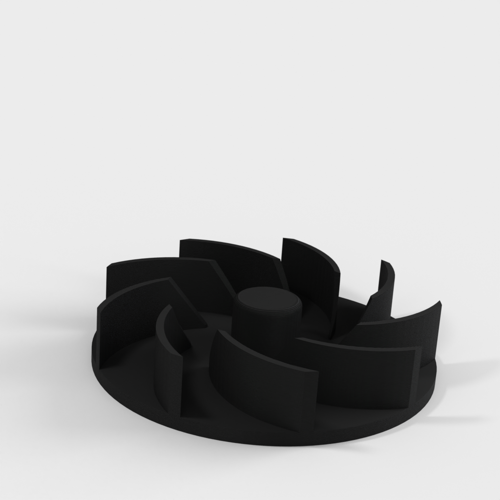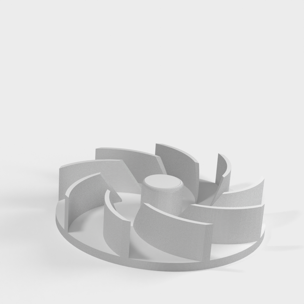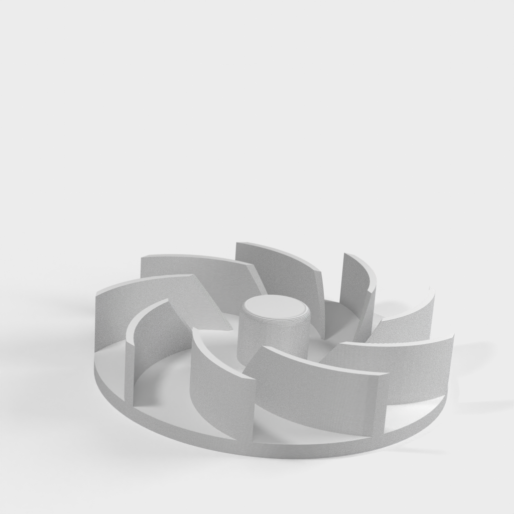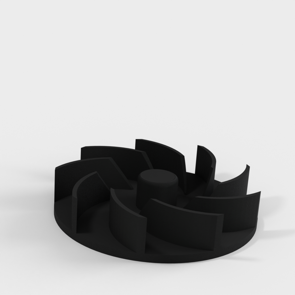 Rotore di ricambio per soffiatore Ryobi RBL1802. Il design in due parti semplifica la sostituzione di un rotore rotto e assicura che l'utensile funzioni di nuovo in modo ottimale. Per il montaggio sull'albero motore si consiglia di utilizzare un po' di nastro in teflon e una rondella in fibra per garantire la corretta distanza dal motore e garantire una tenuta perfetta.