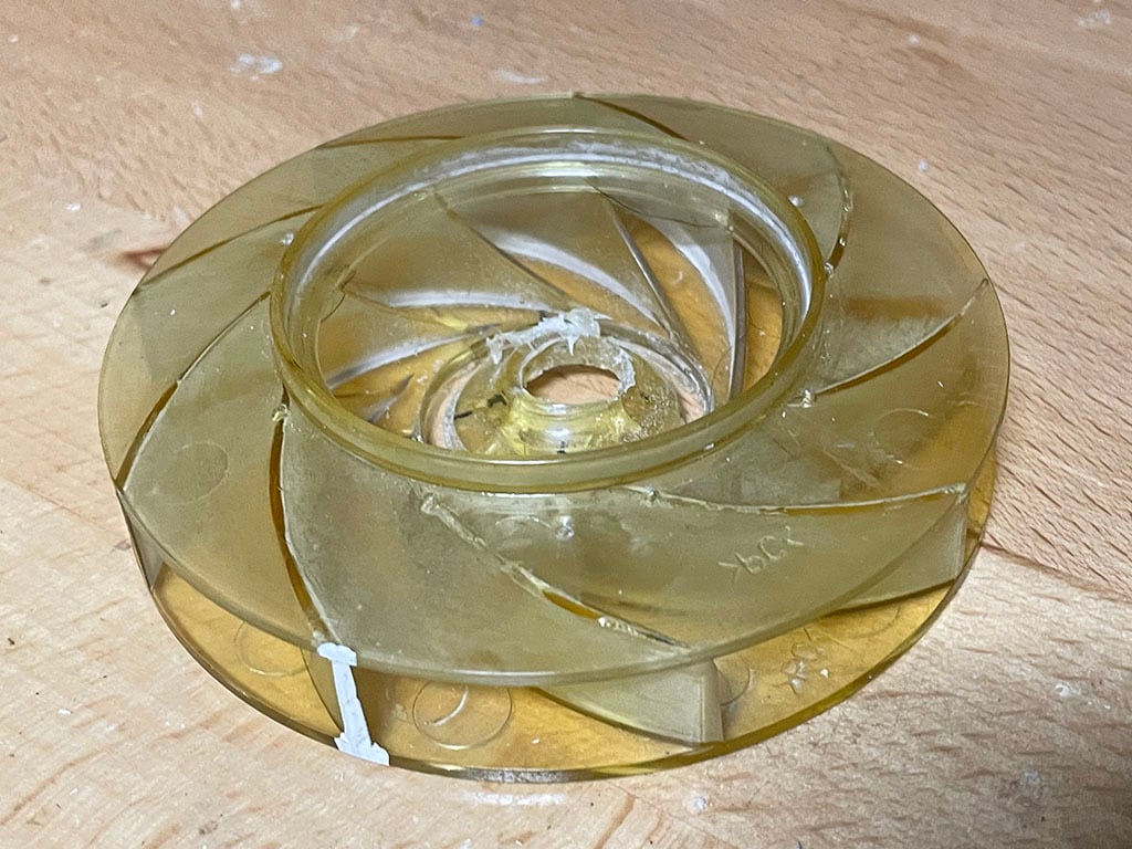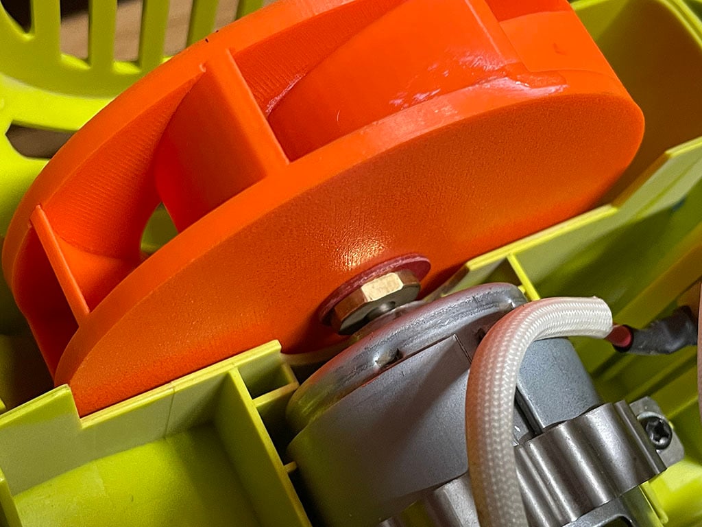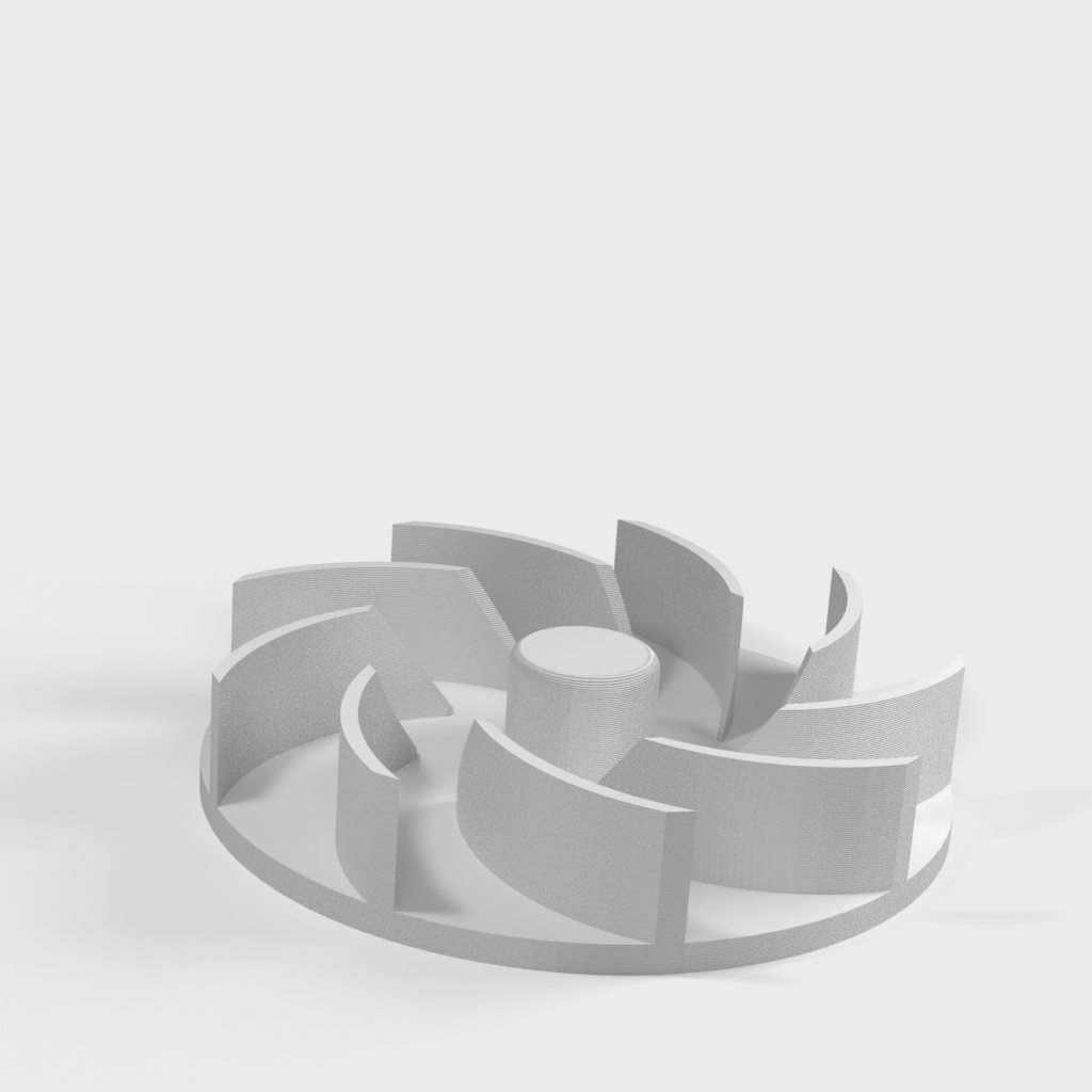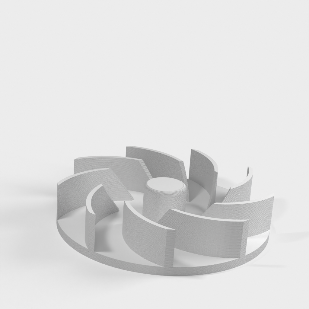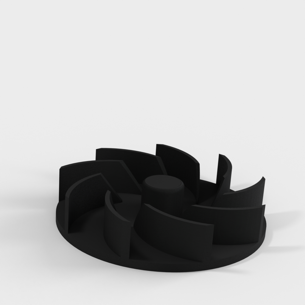 Rotore di ricambio per soffiatore Ryobi RBL1802. Il design in due parti semplifica la sostituzione di un rotore rotto e assicura che l'utensile funzioni di nuovo in modo ottimale. Per il montaggio sull'albero motore si consiglia di utilizzare un po' di nastro in teflon e una rondella in fibra per garantire la corretta distanza dal motore e garantire una tenuta perfetta.