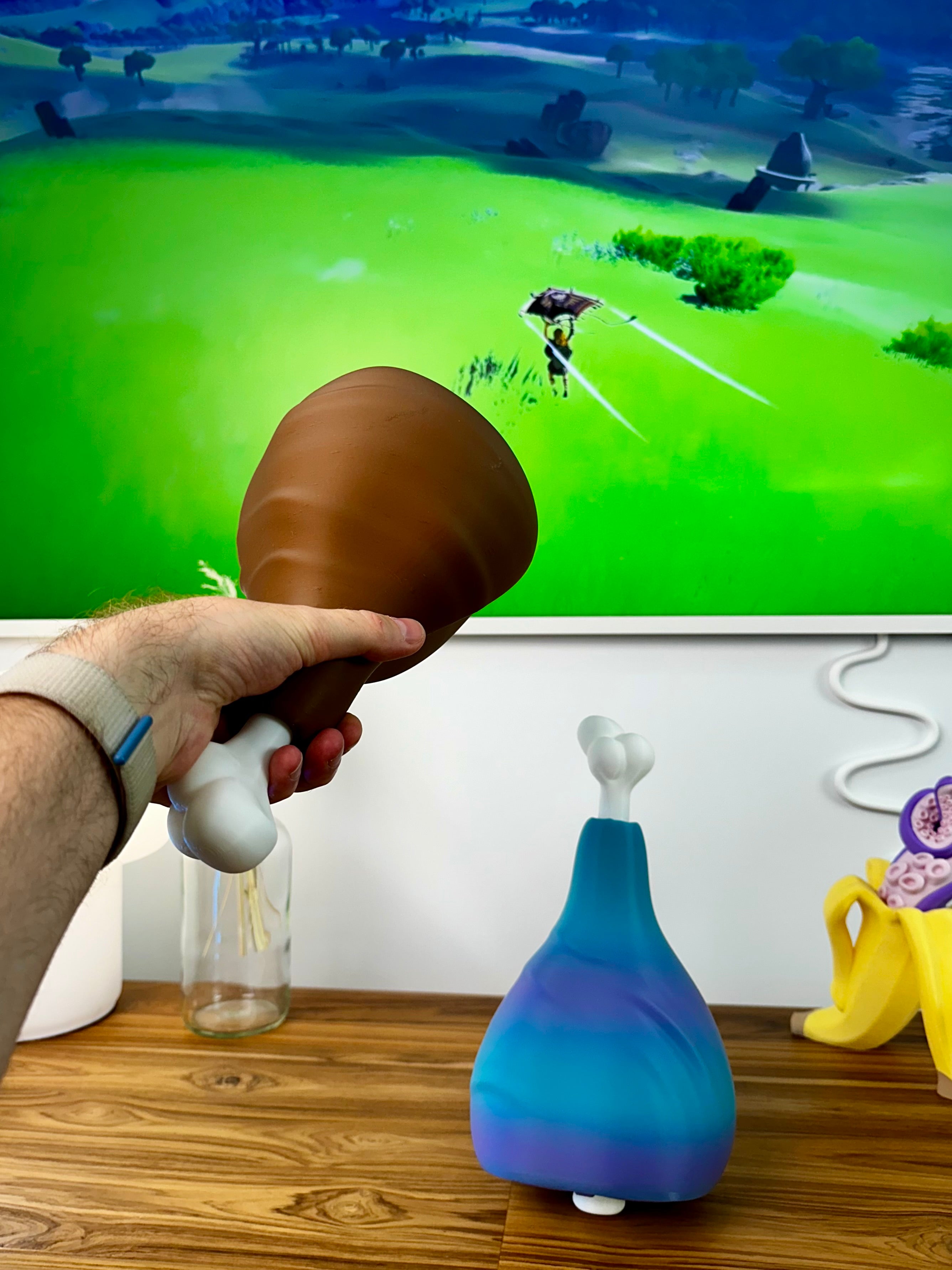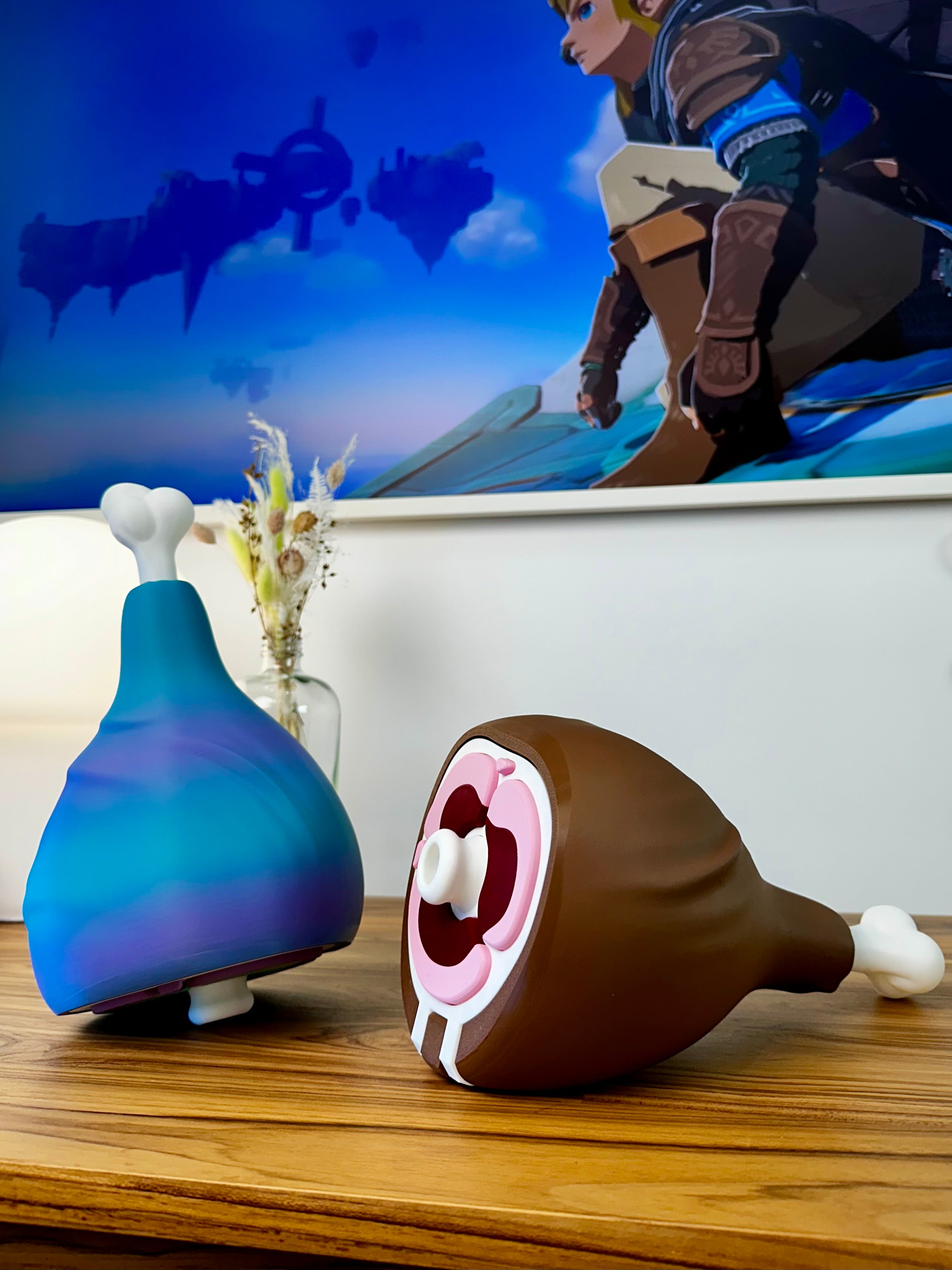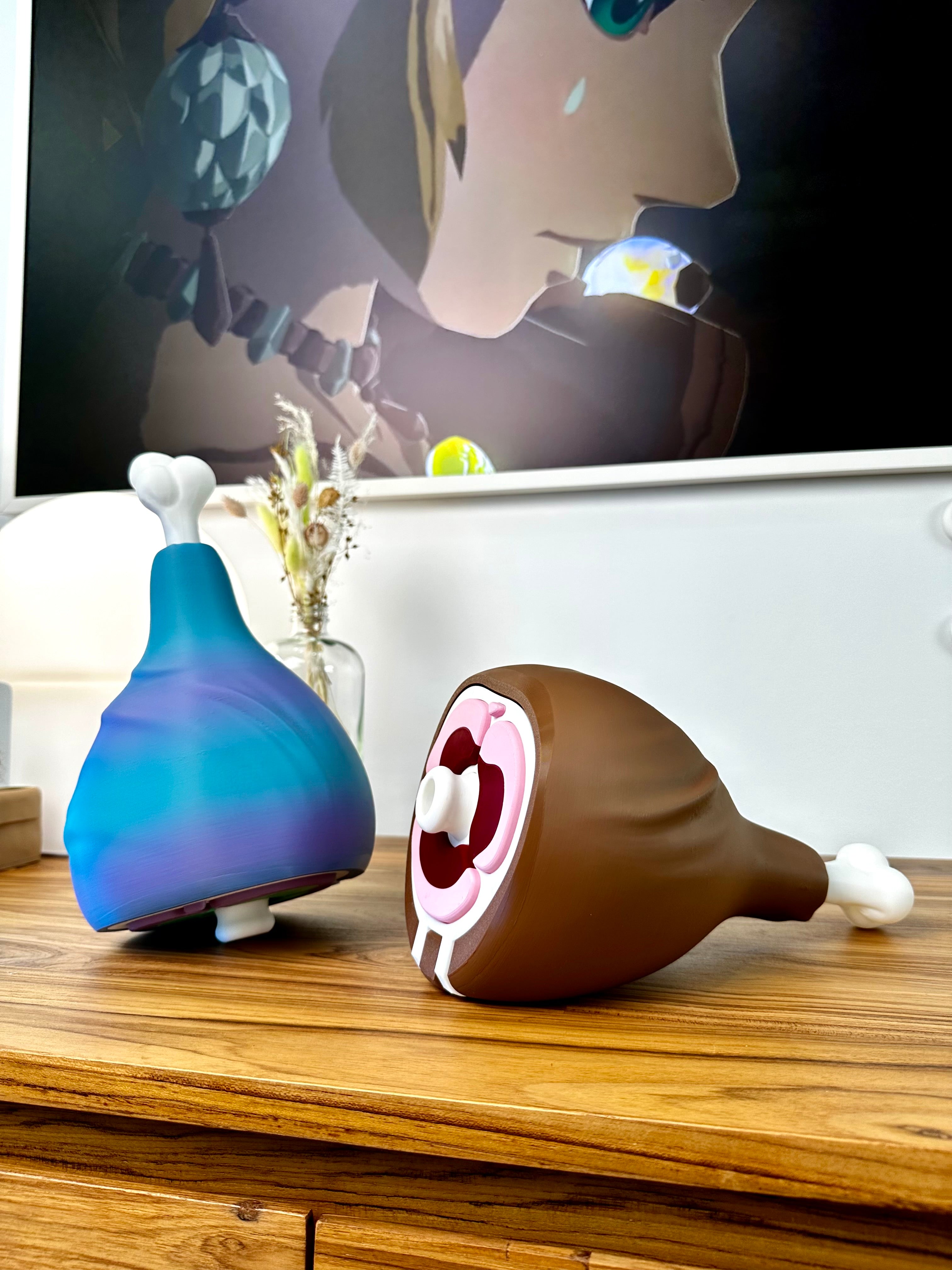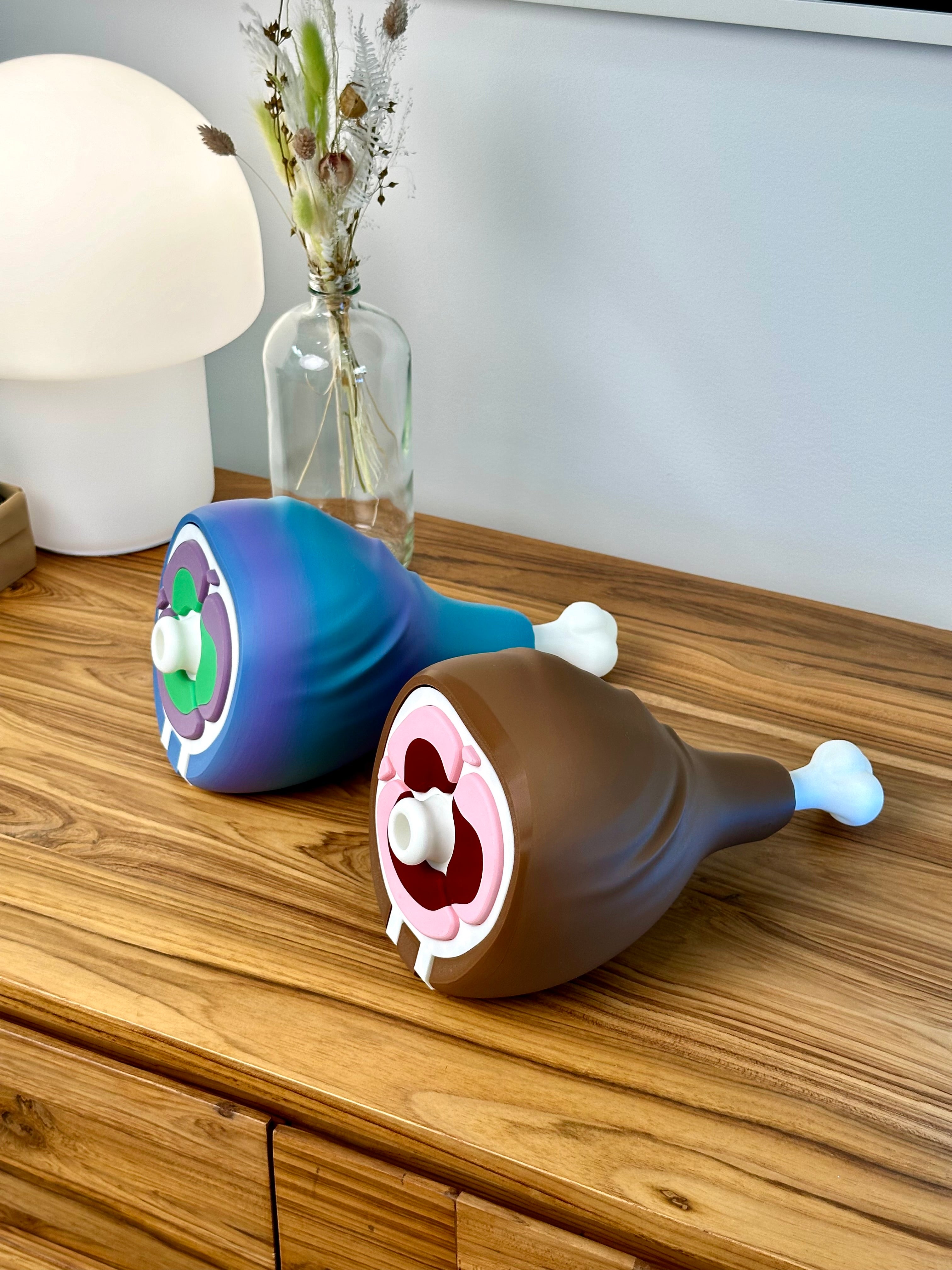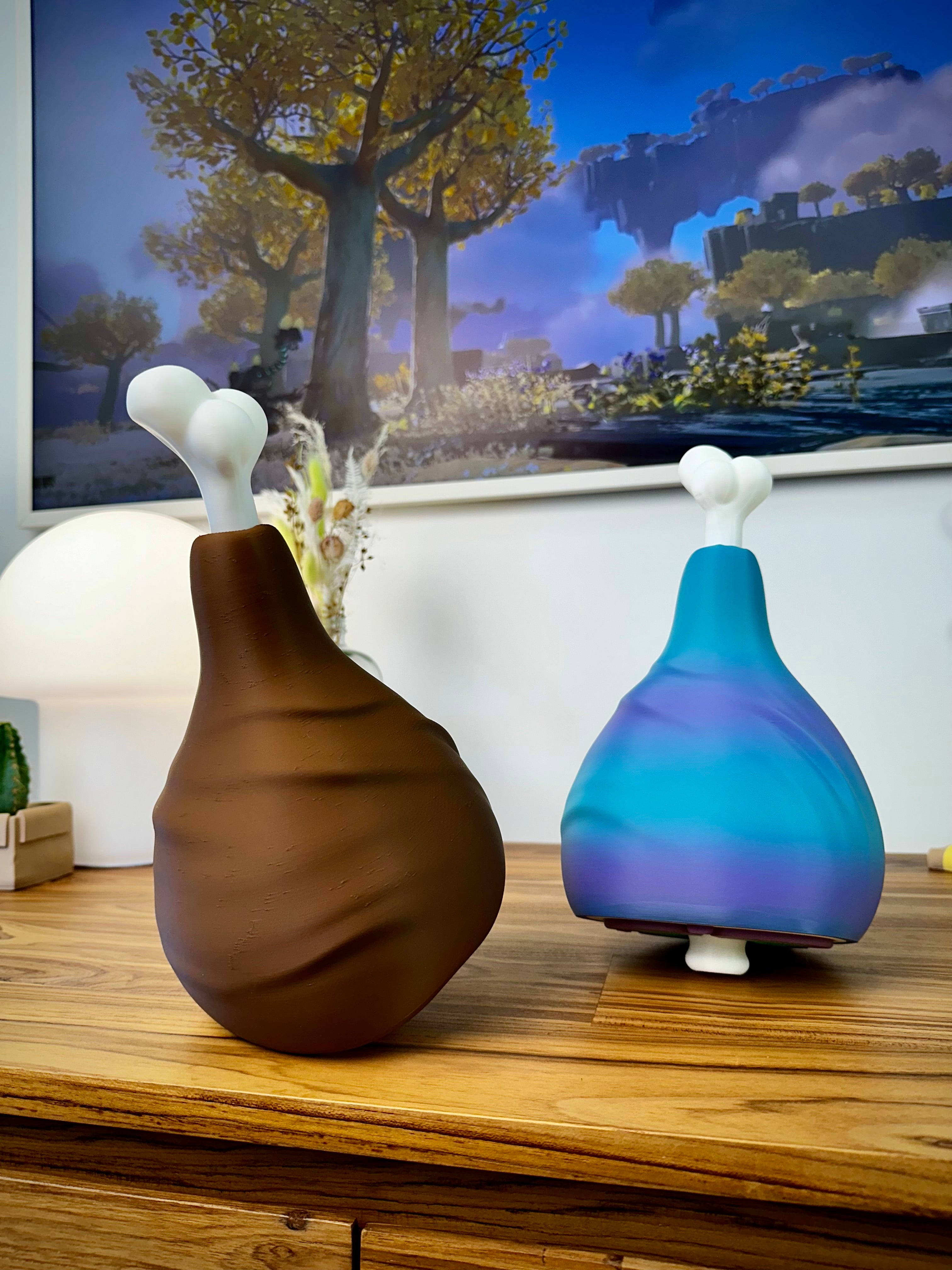 - Funktionel opbevaringsløsning i et unikt design af en stegt trommestik.