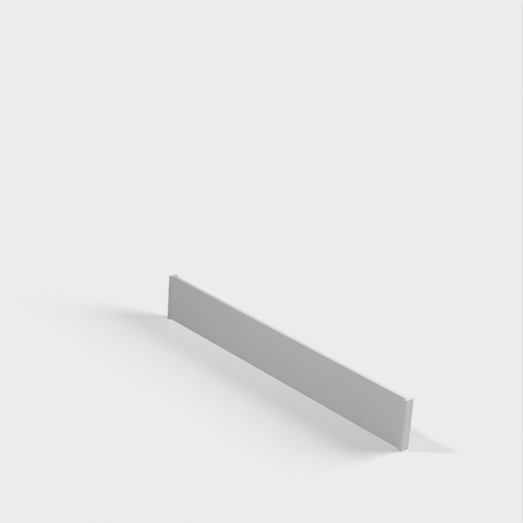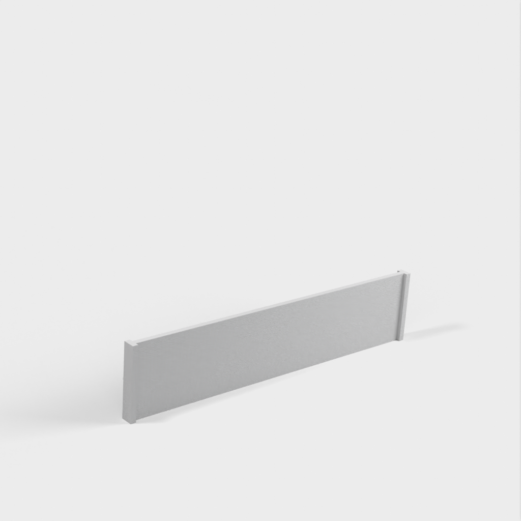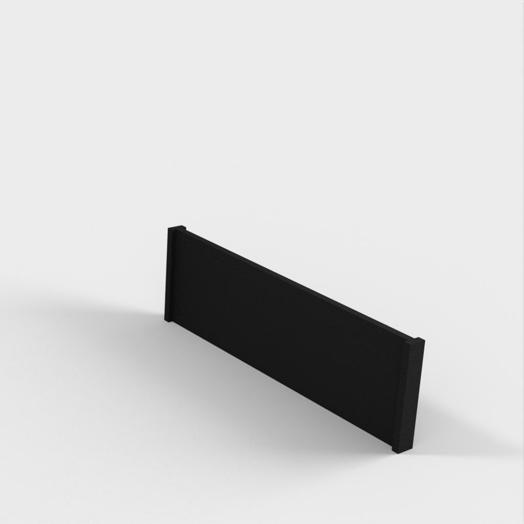 Semplice sistema di organizzazione per cassetti. Questo sistema utilizza connessioni a L negli angoli, connessioni a T sui lati esterni e connessioni incrociate per i nodi interni. Stampate i divisori necessari e collegateli tagliando i connettori dall'alto. Se si ha bisogno di divisori più alti, è sufficiente scalare sia i divisori che le connessioni nello stesso rapporto in direzione Z.
